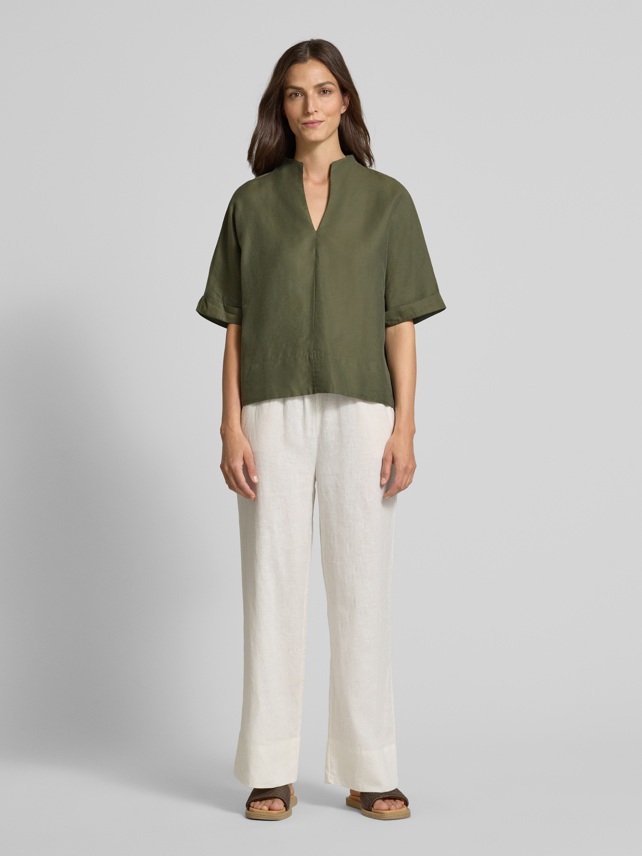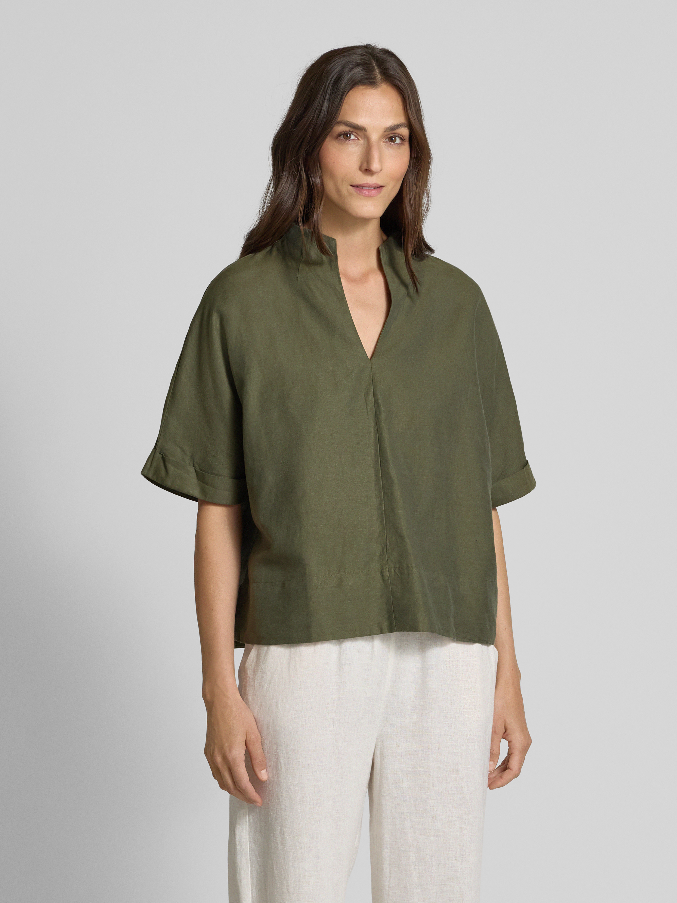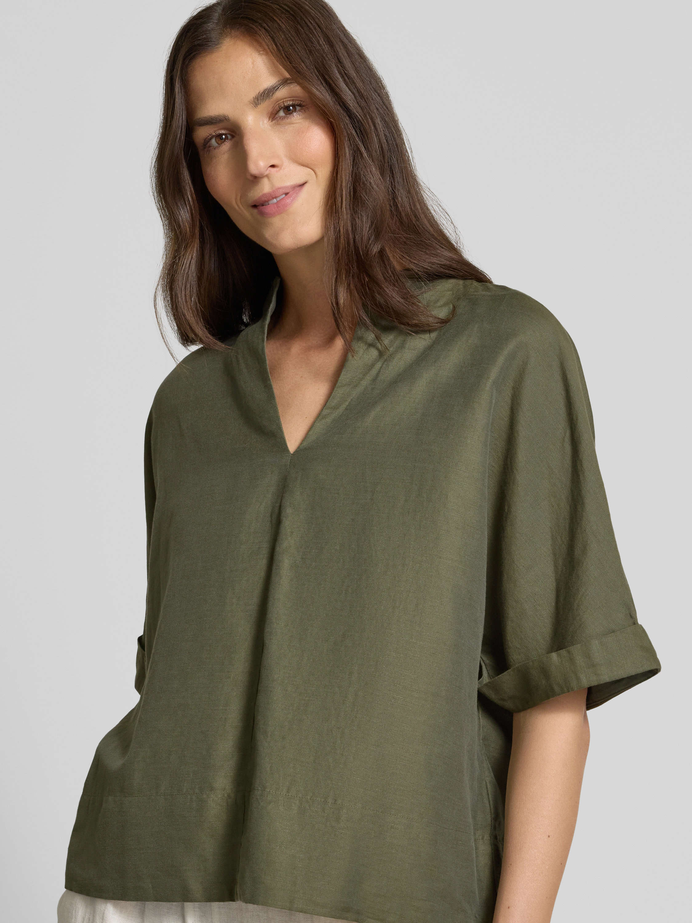 ETERNALoose Fit Blusenshirt aus Baumwoll-Leinen-Mix in oliv