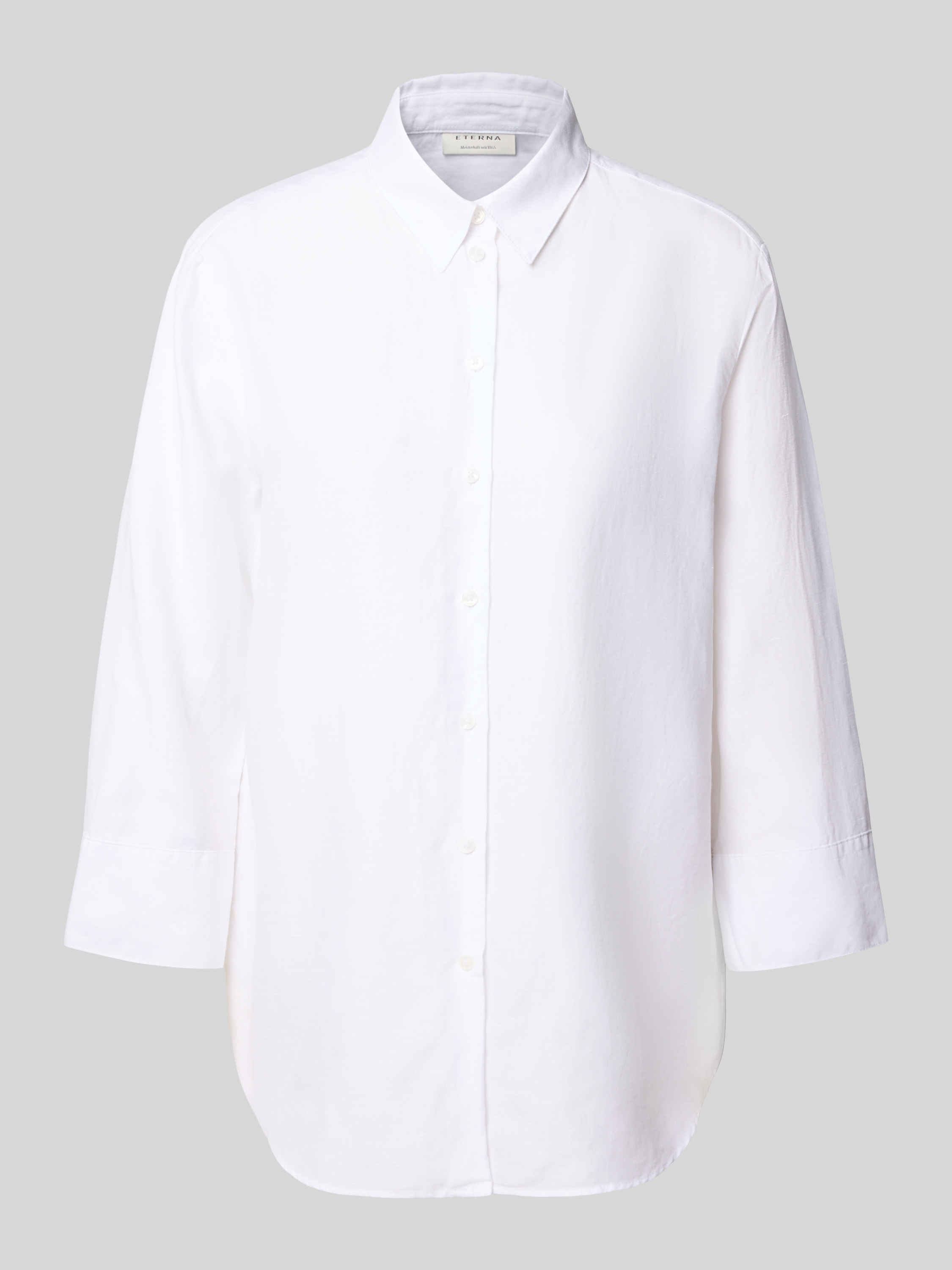 Die Loose Fit Hemdbluse von ETERNA kombiniert den angenehmen Tragekomfort eines Baumwoll-Leinen-Mix mit einer legeren Passform. Der Hemdblusenkragen und die 3/4-Ärmel verleihen dem Design eine klassische Note, während die luftige Schnittführung für Bewegungsfreiheit sorgt. Ideal für entspannte Alltagslooks.