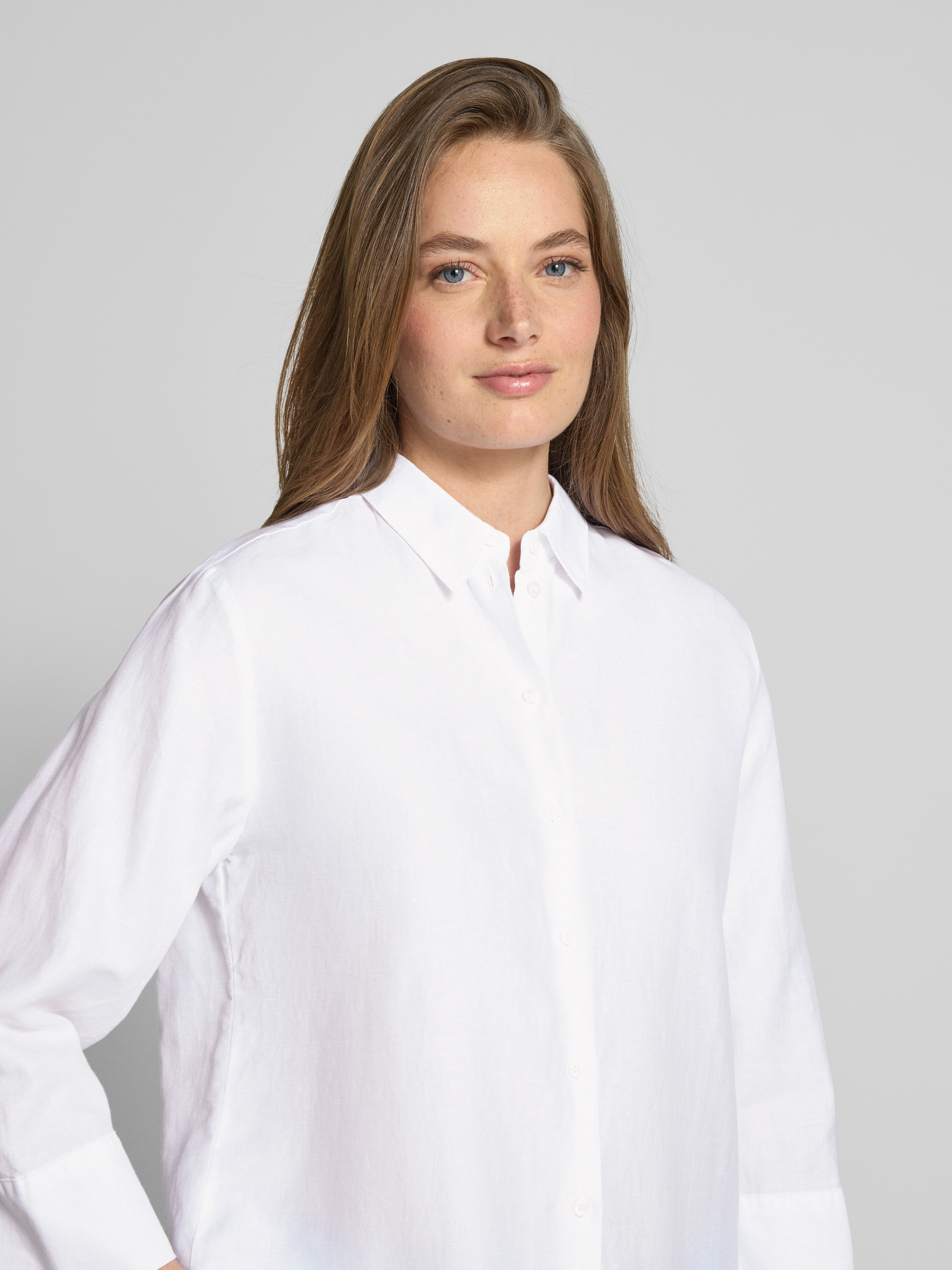 ETERNALoose Fit Hemdbluse aus Baumwoll-Leinen-Mix in weiss
