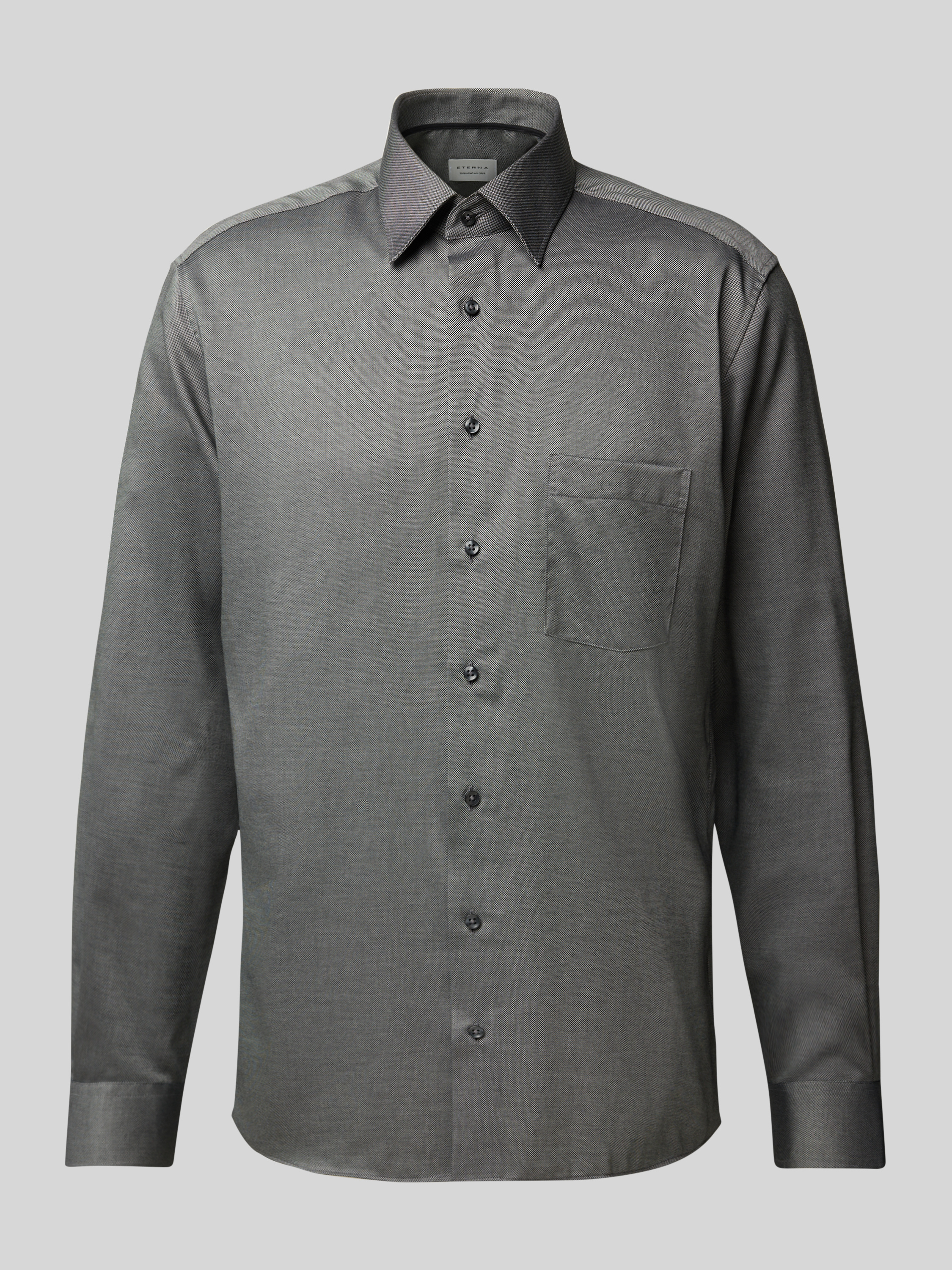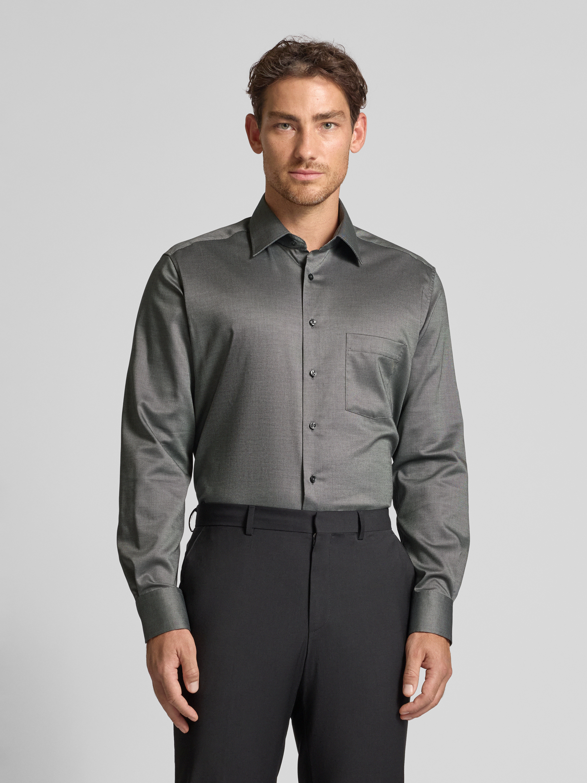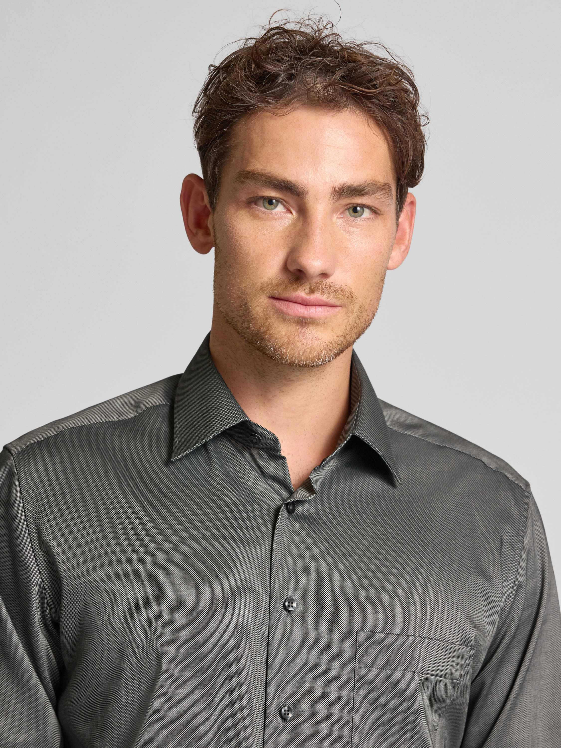Das Herren Business-Hemd von ETERNA aus reiner Baumwolle fühlt sich angenehm leicht an und ermöglicht dank Modern Fit einen bequemen Sitz mit zeitgemäßer Silhouette. Durch den klassischen Kentkragen und die dezente Brusttasche entsteht ein vielseitiger Look, der sich mühelos kombinieren lässt. So eignet sich das Modern Fit Business-Hemd mit Kentkragen sowohl für lange Bürotage als auch für besondere Anlässe, ohne einzuengen.