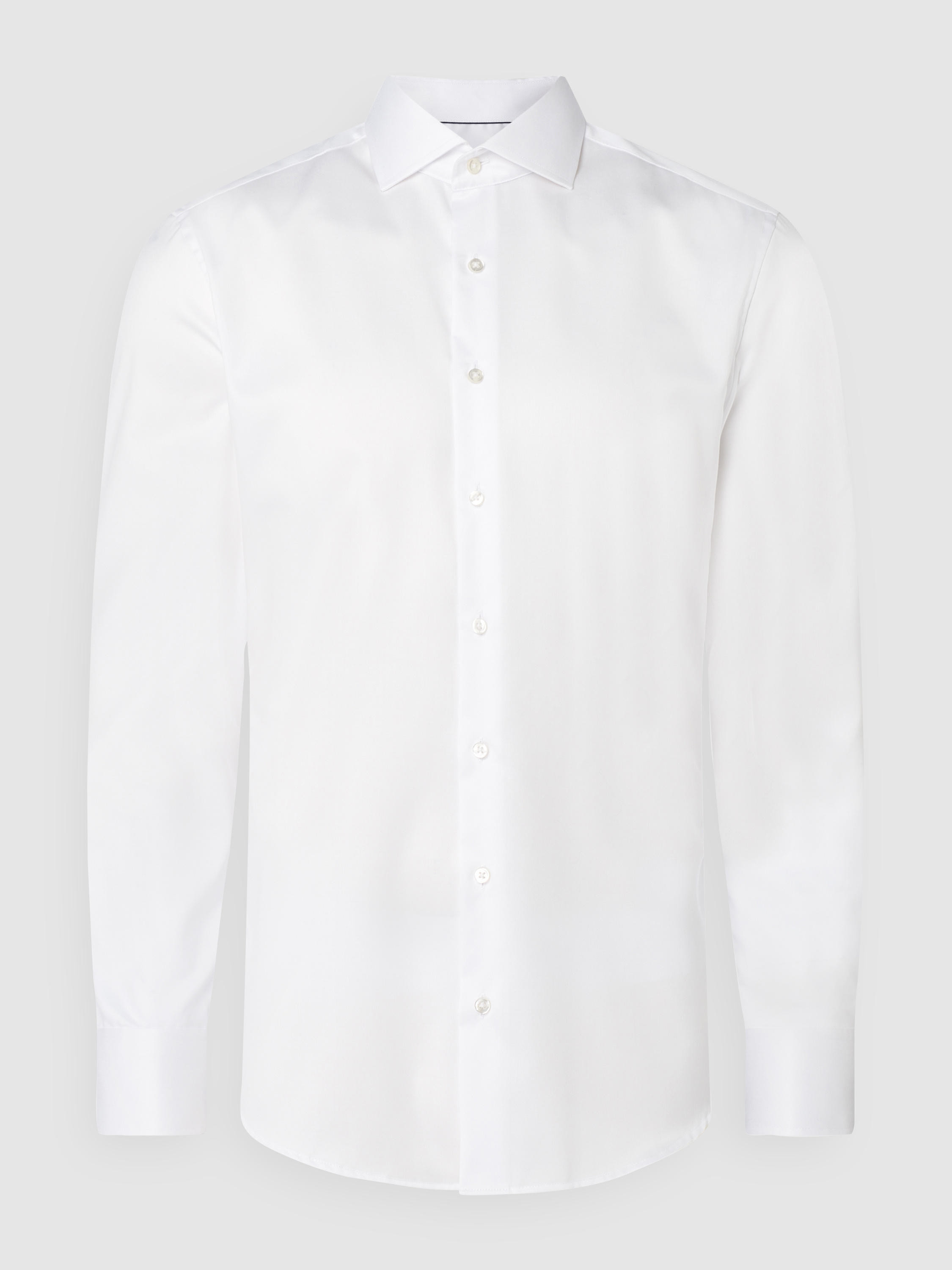 Das Slim Fit Businesshemd von ETERNA vereint eine feine Webstruktur aus edelstem Two Ply mit einem eleganten Haifischkragen. Dank seiner hochwertigen Verarbeitung und dem unifarbenen Design eignet es sich ideal für einen professionellen Auftritt im Büro. Die Easycare-Eigenschaft sorgt zusätzlich für unkomplizierte Pflege.
