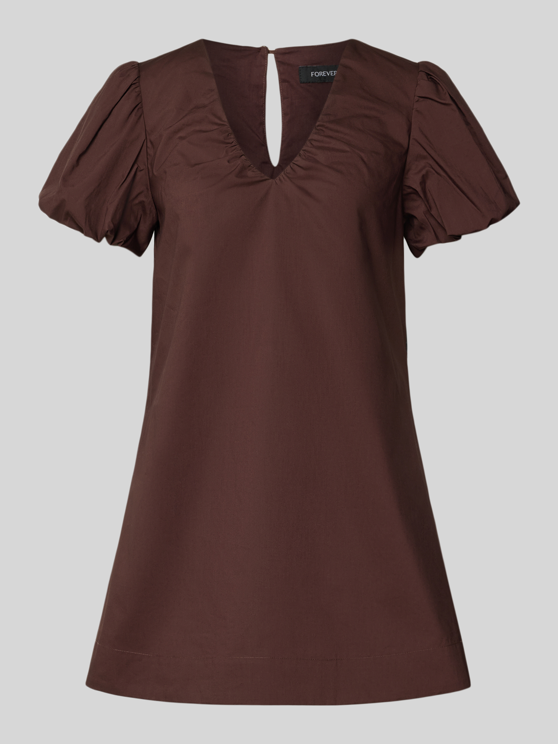 Das Damen Cocktailkleid von Forever New präsentiert sich aus reiner Baumwolle und bringt mit ausgestelltem Schnitt und Puffärmeln eine frische Note in den Look. Durch den V-Ausschnitt entsteht eine schmeichelnde Silhouette, während die Minilänge spielerische Leichtigkeit vermittelt. So eignet sich das Kleid für festliche Anlässe.