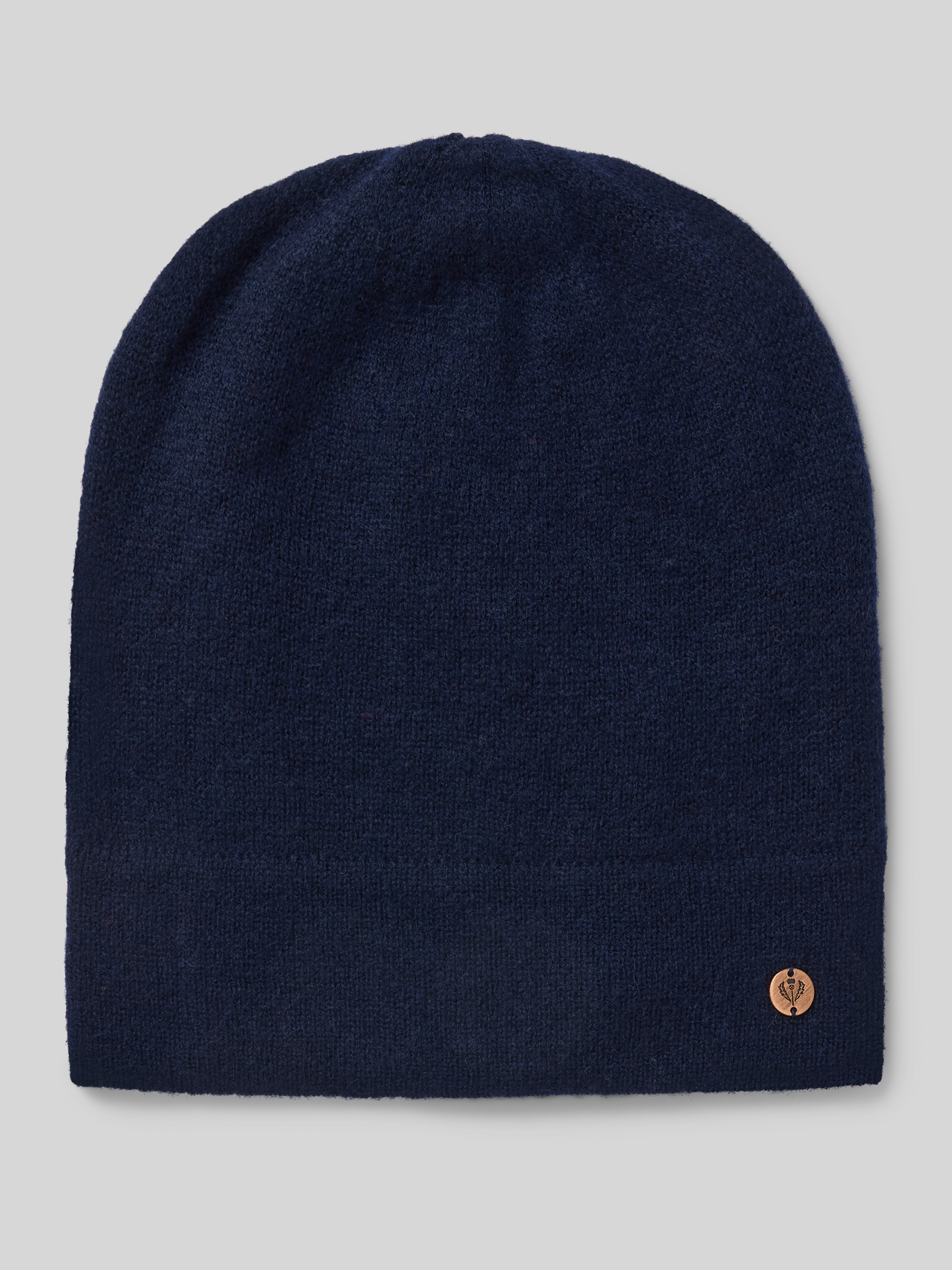 FraasKaschmirmütze mit Label-Applikation in dunkelblau