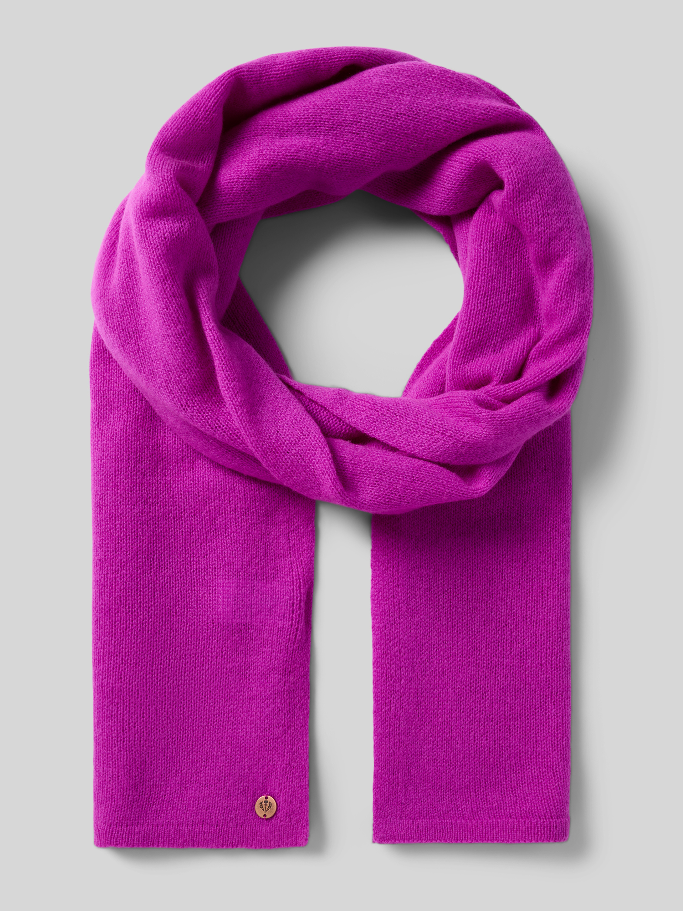 Der Damen Schal von Fraas besteht aus reinem Kaschmir und fühlt sich angenehm weich auf der Haut an. Durch die rechteckige Form und die dezenten, gerippten Abschlüsse passt er sich unkompliziert verschiedenen Outfits an. Ein kleines Label-Detail sorgt für eine zurückhaltende Akzentuierung.