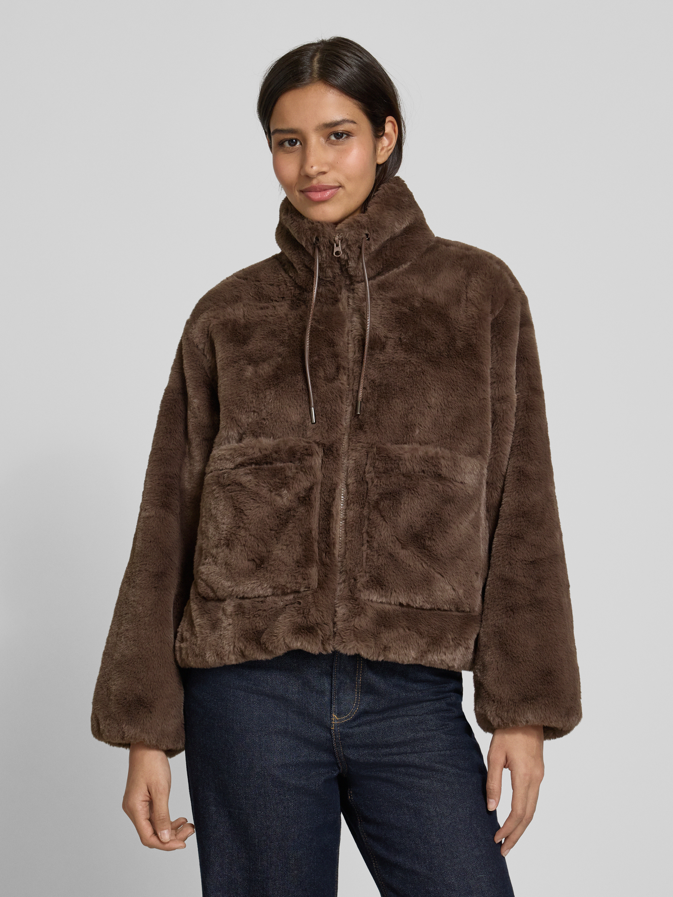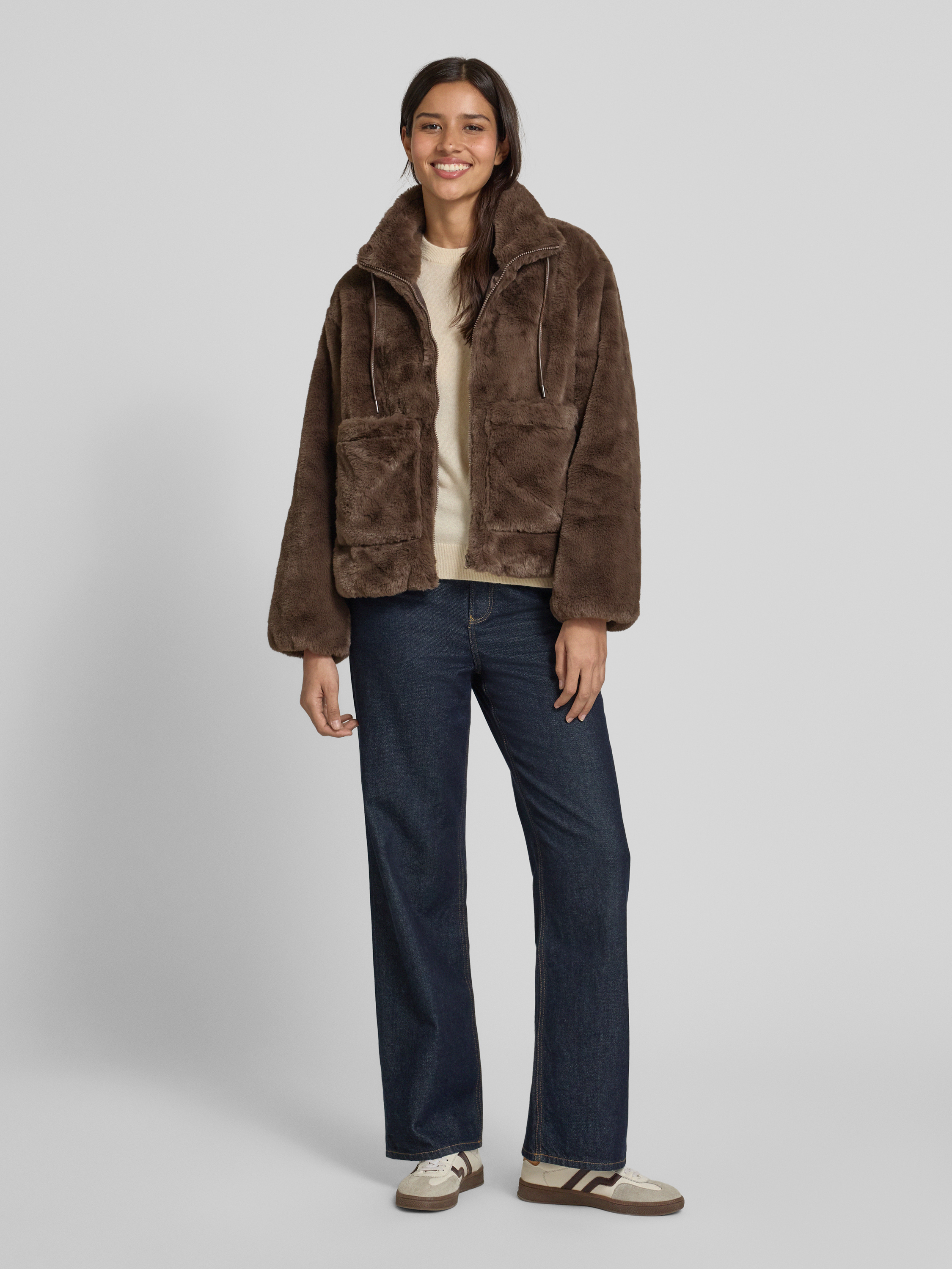 Die Damen Jacke von FREE/QUENT Modell FONY präsentiert sich mit geradem Schnitt und angenehmem Kunstfellbesatz. Ein Stehkragen mit Tunnelzug sorgt für zusätzlichen Komfort, während aufgesetzte Taschen praktische Akzente setzen. Durch die schlichte Form lässt sich das Modell vielseitig kombinieren.