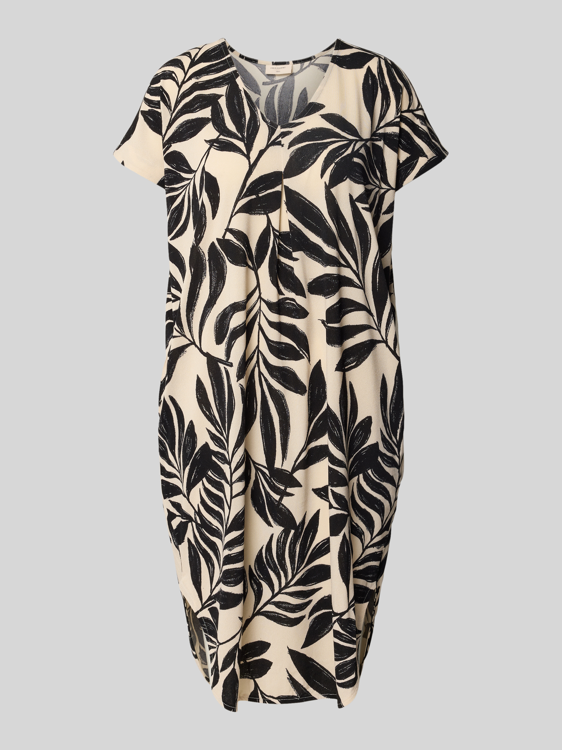 Das knielange Kleid mit V-Ausschnitt Modell 'Floi' von FREE/QUENT kombiniert einen taillierten Schnitt mit einem Material-Mix samt Stretch-Anteil, wodurch angenehme Bewegungsfreiheit entsteht. Die kurze Ärmellänge passt zu unterschiedlichen Anlässen. Durch den femininen Ausschnitt wirkt das Design dezent und vielseitig.
