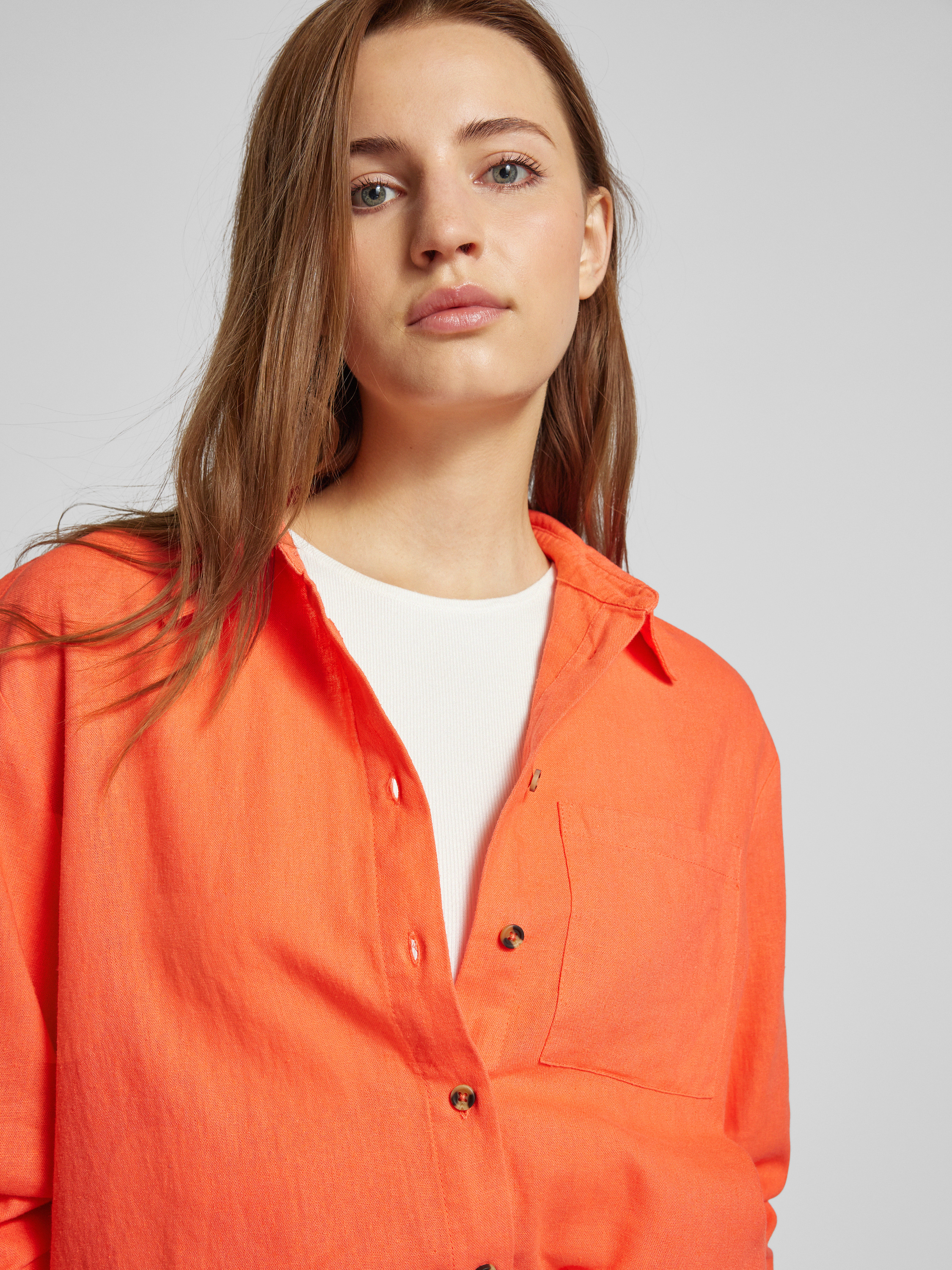 FREE/QUENTLeinenbluse in Denim-Optik Modell 'Lava' in koralle
