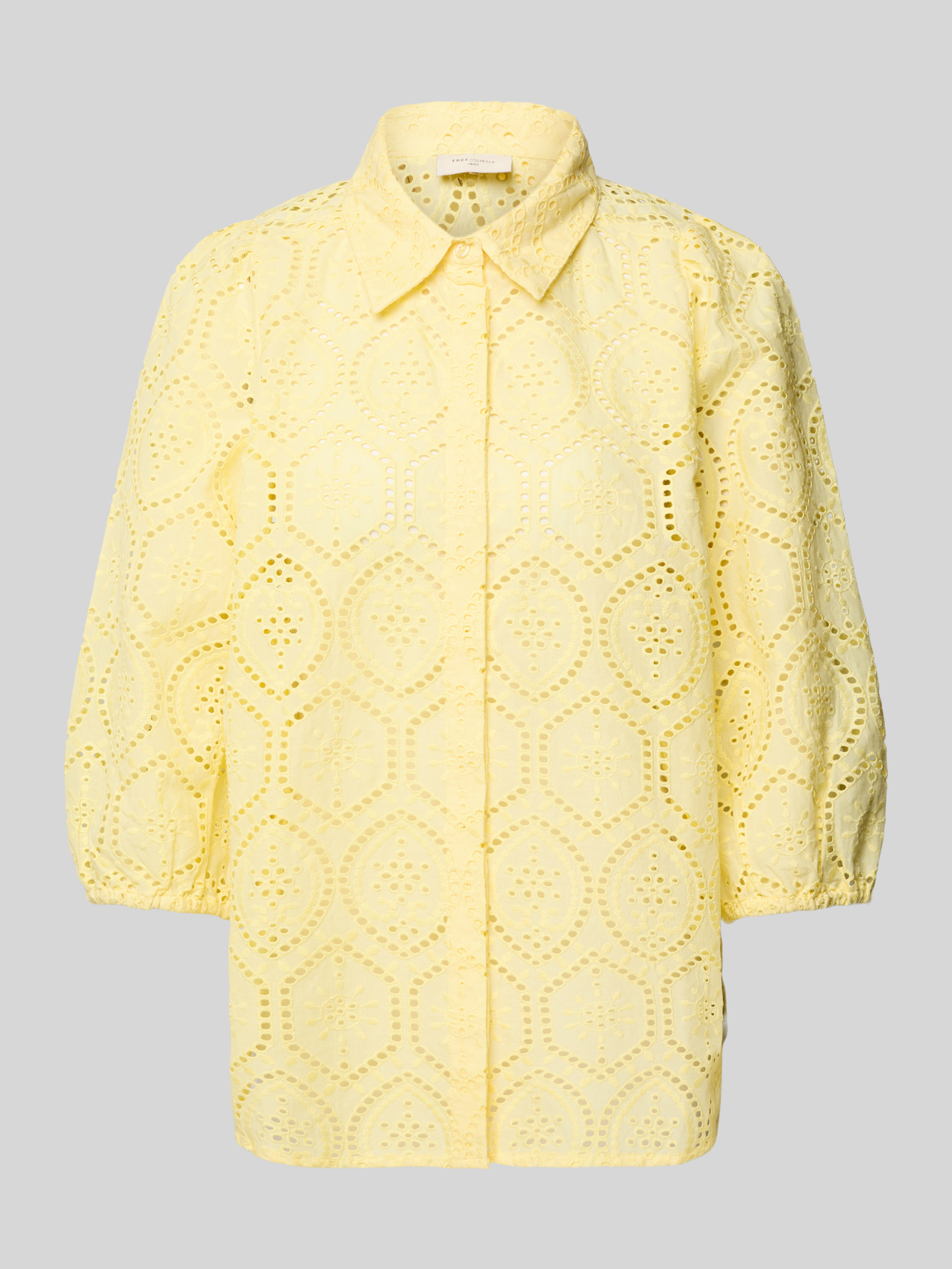 FREE/QUENTRegular Fit Bluse mit Lochstickerei Modell 'Agy' in hellgelb