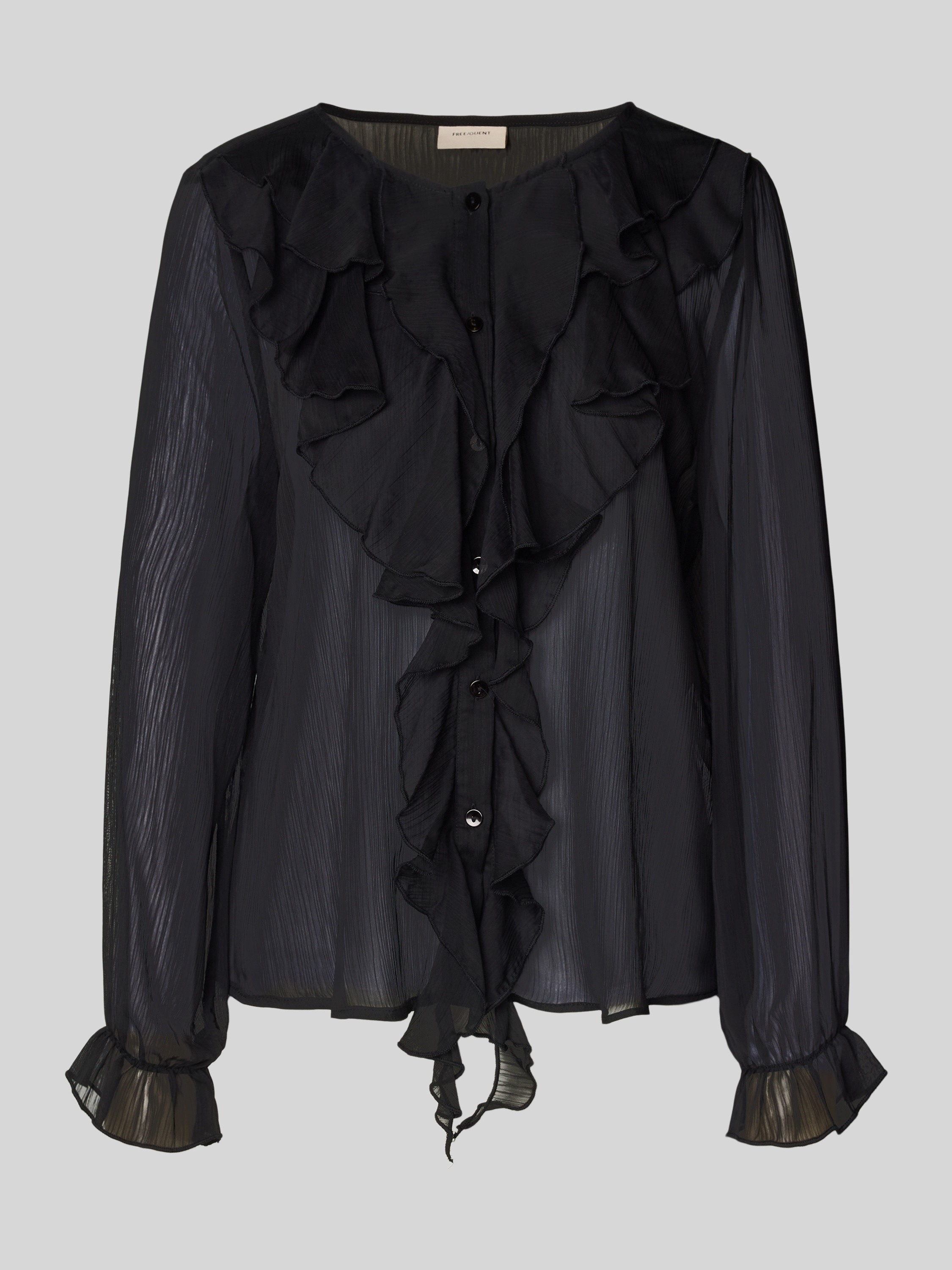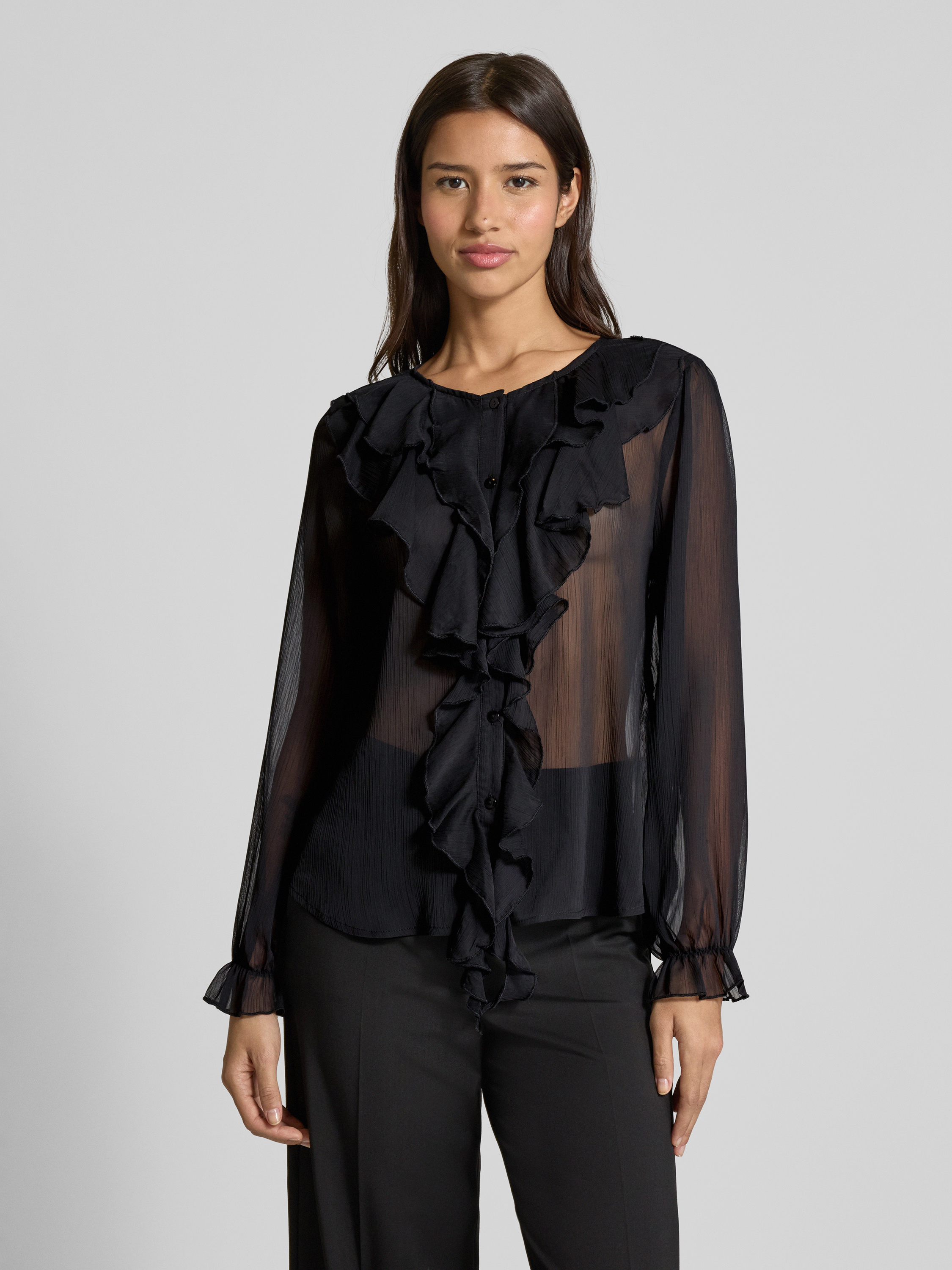 Die Bluse Ditte von FREE/QUENT zeigt mit ihrem semitransparenten Stoff und dem Regular Fit einen entspannten Charakter, der vielseitig einsetzbar ist. Durch den Rundhalsausschnitt und zarte Rüschen entsteht ein femininer Akzent, der sich dezent in den Alltag integrieren lässt. Leichtes Material sorgt für angenehmen Tragekomfort.