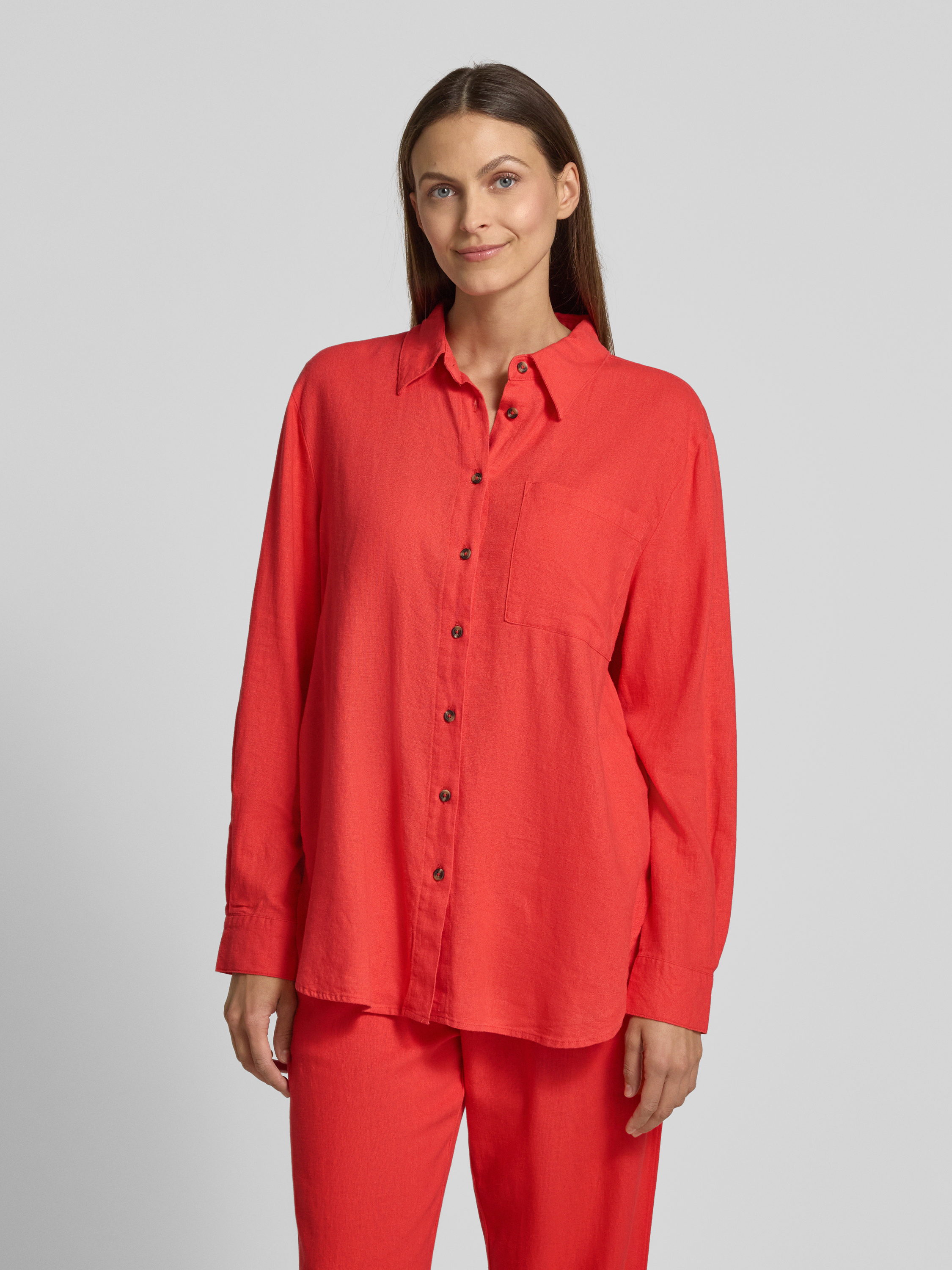 FREE/QUENTRelaxed Fit Leinenbluse mit Brusttasche Modell 'Lava' in hellrot