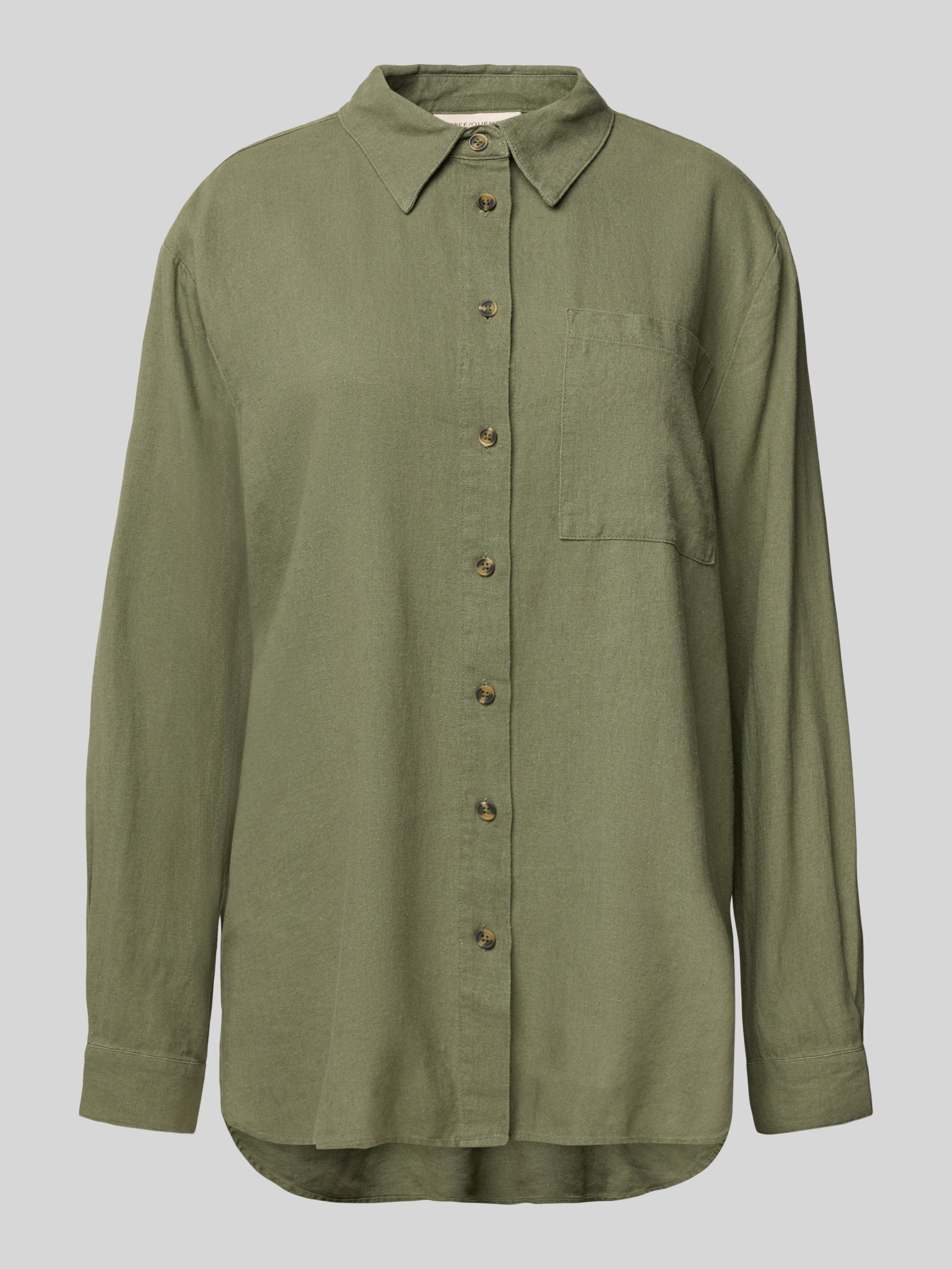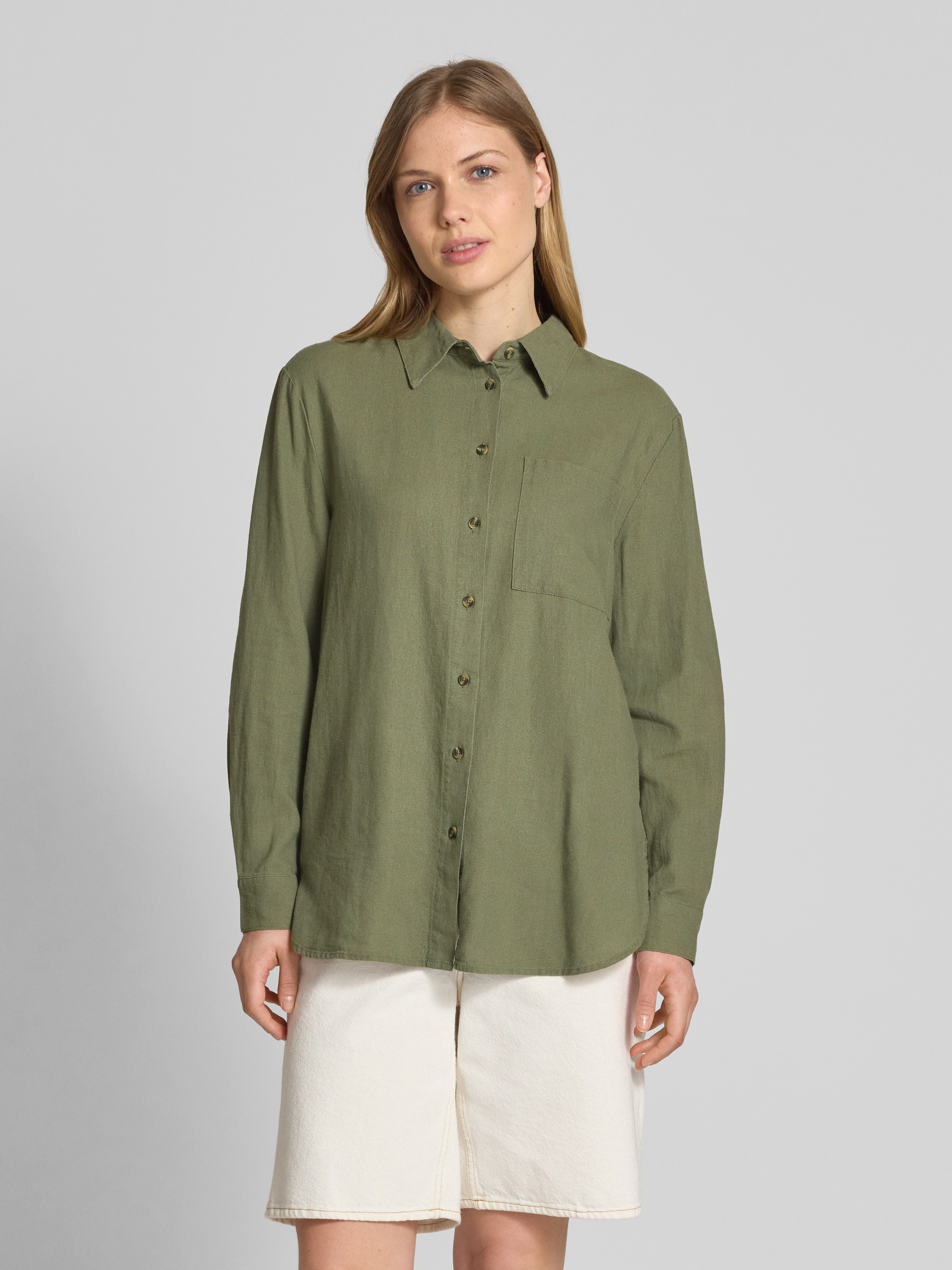 • FREE/QUENT Relaxed Fit Leinenbluse mit Brusttasche Modell 'Lava' Oliv