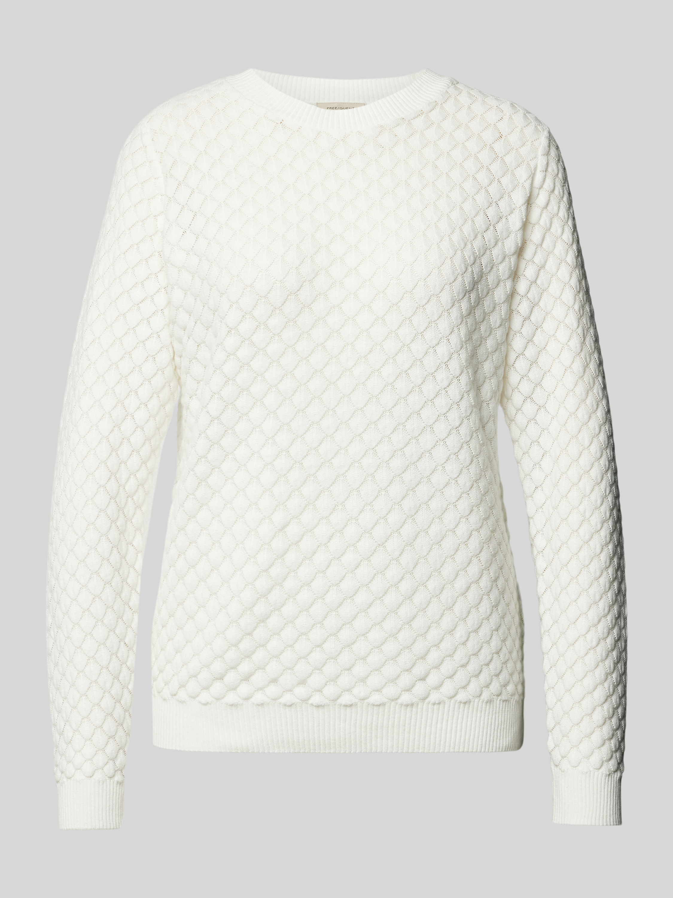 Der Strickpullover von FREE/QUENT, Modell 'Dodo', aus reiner Baumwolle, vereint einen klassischen Rundhalsausschnitt mit kunstvoller Lochstickerei. Die Regular Fit-Passform sorgt für angenehmen Tragekomfort, während gerippte Abschlüsse subtile Akzente setzen. Ein vielseitiges Kleidungsstück, das sich ideal für unterschiedliche Anlässe eignet.