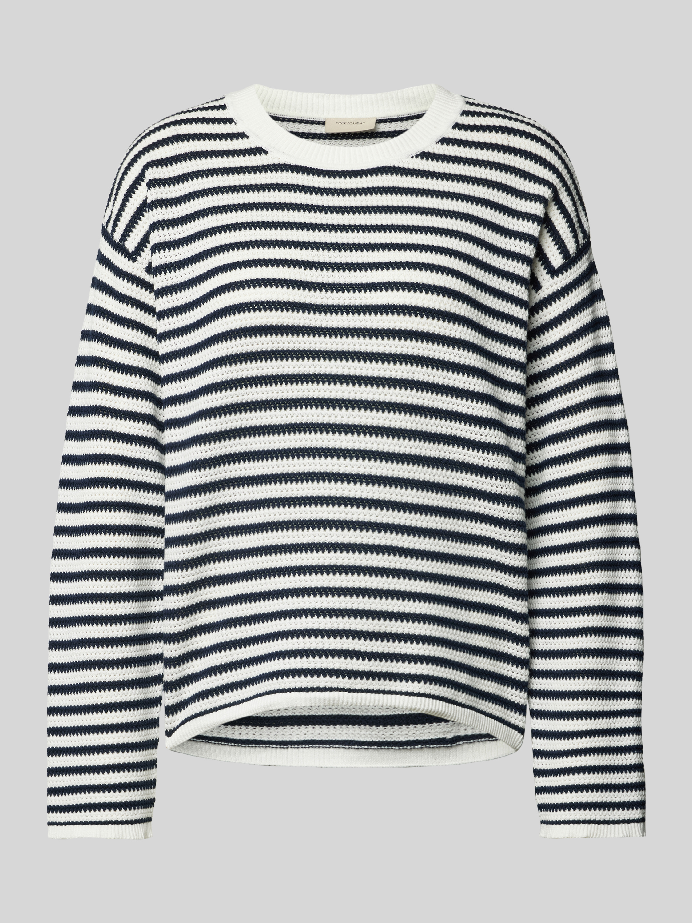 Der Strickpullover 'Domo' von FREE/QUENT aus reiner Baumwolle überzeugt durch seinen klassischen Regular Fit, der sowohl Komfort als auch Stil bietet. Der Rundhalsausschnitt ergänzt die gerippten Abschlüsse harmonisch, was dem Pullover eine dezente Struktur verleiht. Ideal für jeden Anlass, an dem Bequemlichkeit und Eleganz gleichermaßen gefragt sind.