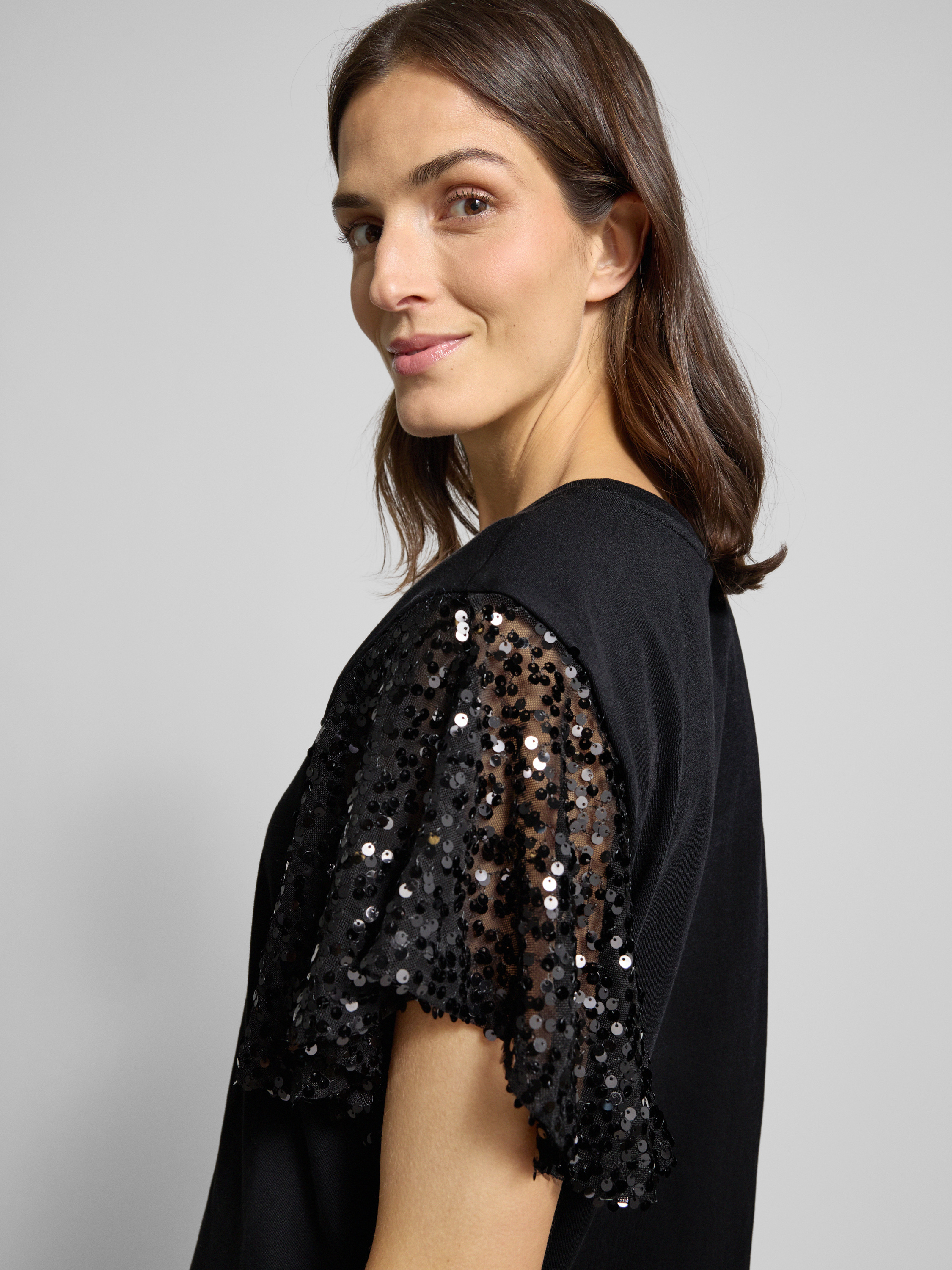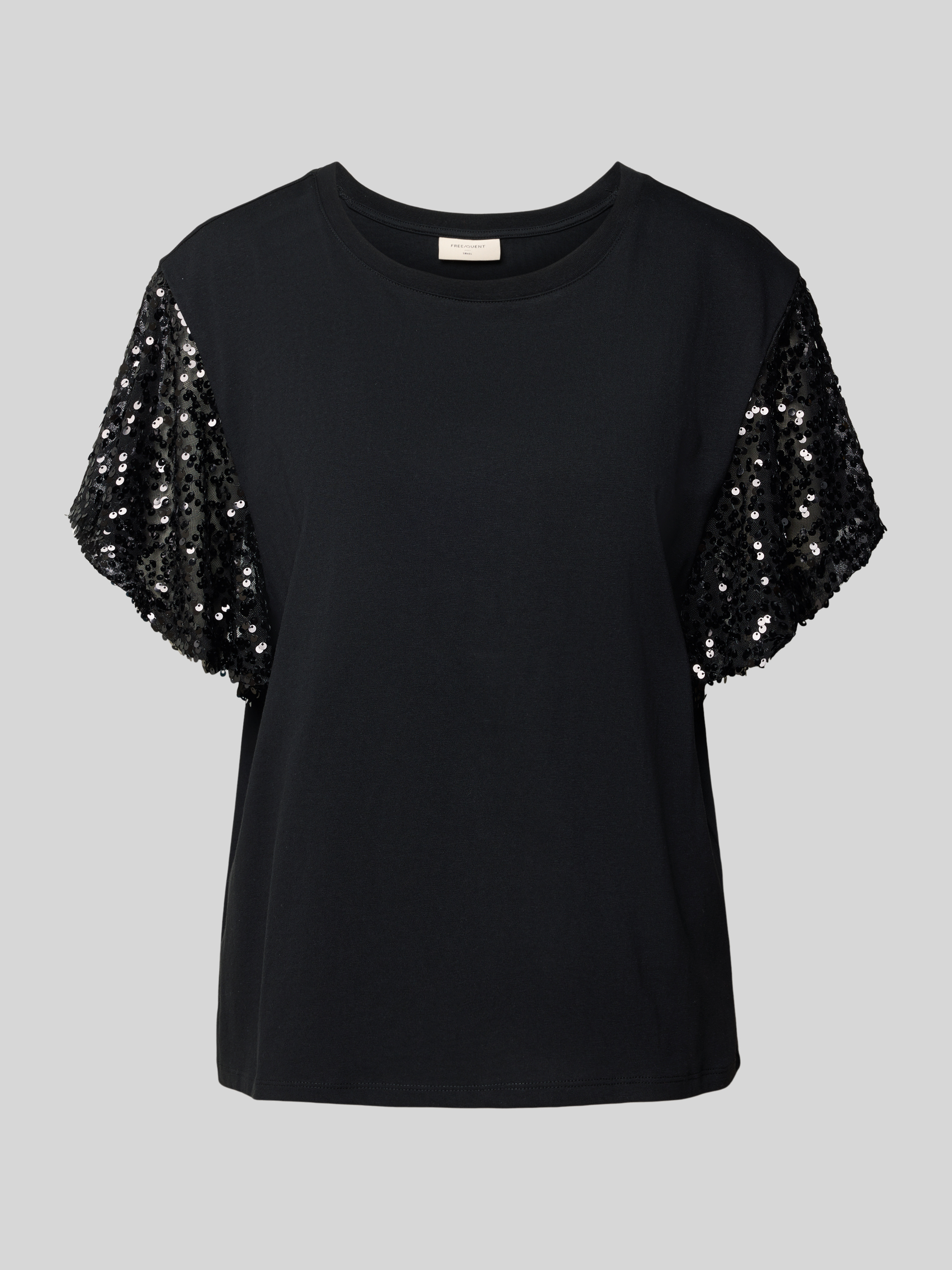 Das Damen T-Shirt von FREE/QUENT Modell 'WINGS' aus reiner Baumwolle liegt angenehm auf der Haut und sorgt durch den lockeren Schnitt für Bewegungsfreiheit im Alltag. Ein gerippter Rundhalsausschnitt verleiht dem Shirt eine dezente Struktur, während der Paillettenbesatz einen unaufdringlichen Akzent setzt. Durch das leichte Material eignet sich das Oberteil besonders an warmen Tagen, ohne einzuengen.
