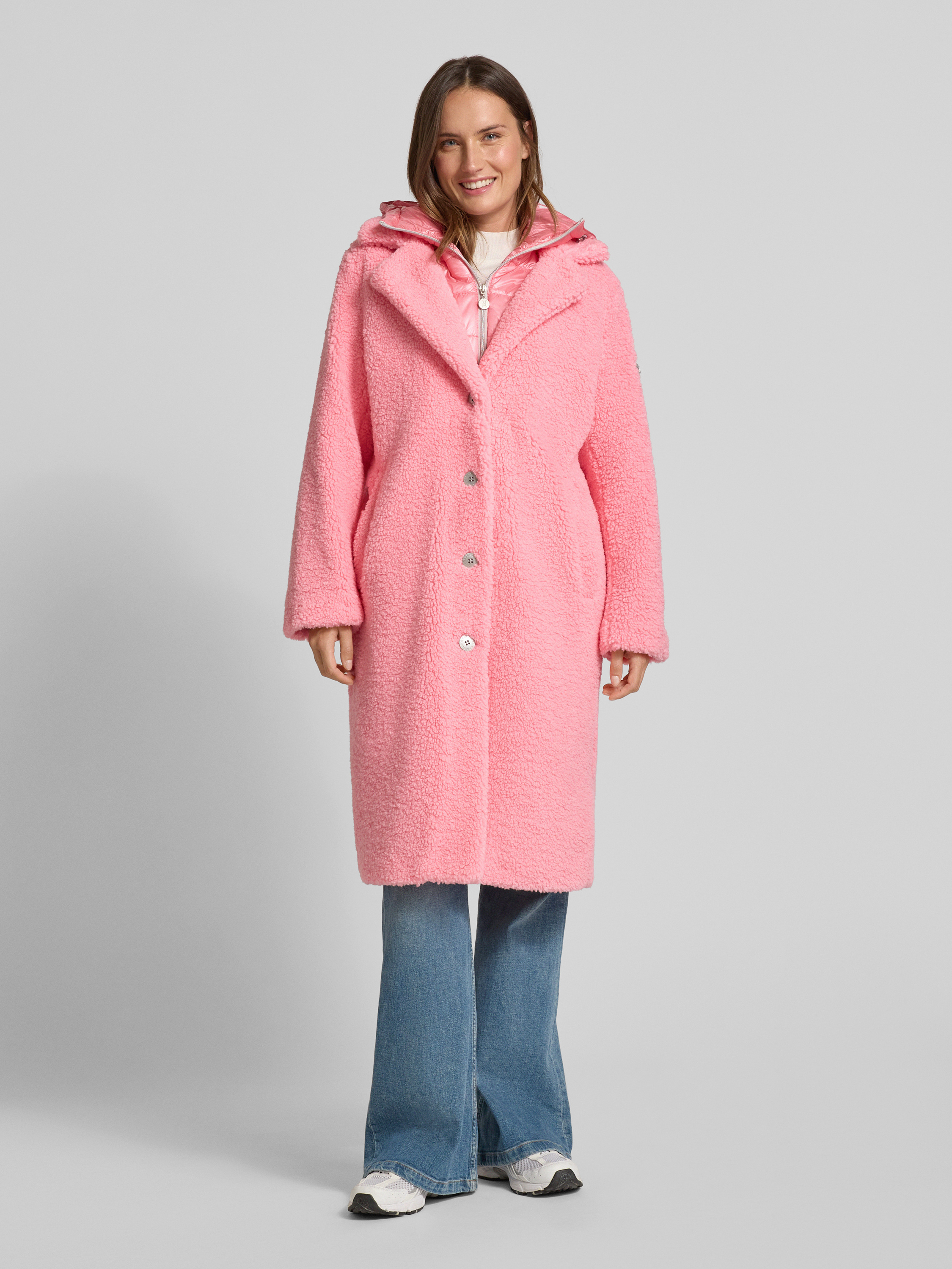Der Damenmantel von Frieda & Freddies im Modell GINE2 zeigt sich mit geradem Schnitt und überzeugt durch einen markanten Steppeinsatz. Die Kombination aus Kapuze und kuscheligem Teddyfell sorgt an kühlen Tagen für angenehme Wärme. Durchdachte Details wie Reverskragen und Knopfleiste runden das Gesamtbild harmonisch ab.