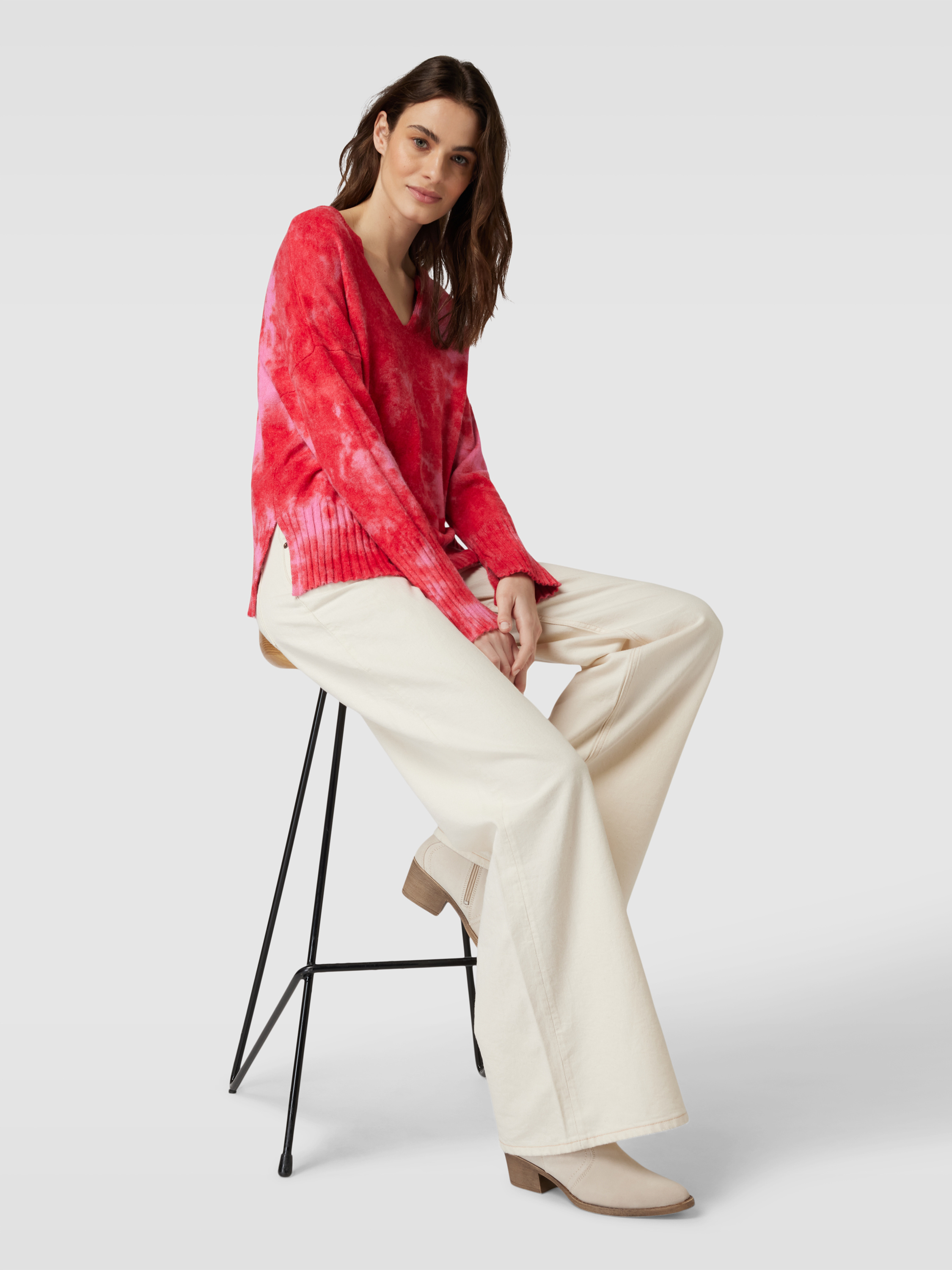 Der Oversized Strickpullover von Frieda & Freddies kombiniert ein auffälliges Allover-Print-Design mit einem bequemen Viskose-Mix, der sich weich auf der Haut anfühlt. Der großzügige Schnitt bietet Bewegungsfreiheit, während der V-Ausschnitt und die gerippten Abschlüsse stilvolle Akzente setzen. Ideal für entspannte Tage, an denen Komfort und Stil Hand in Hand gehen.