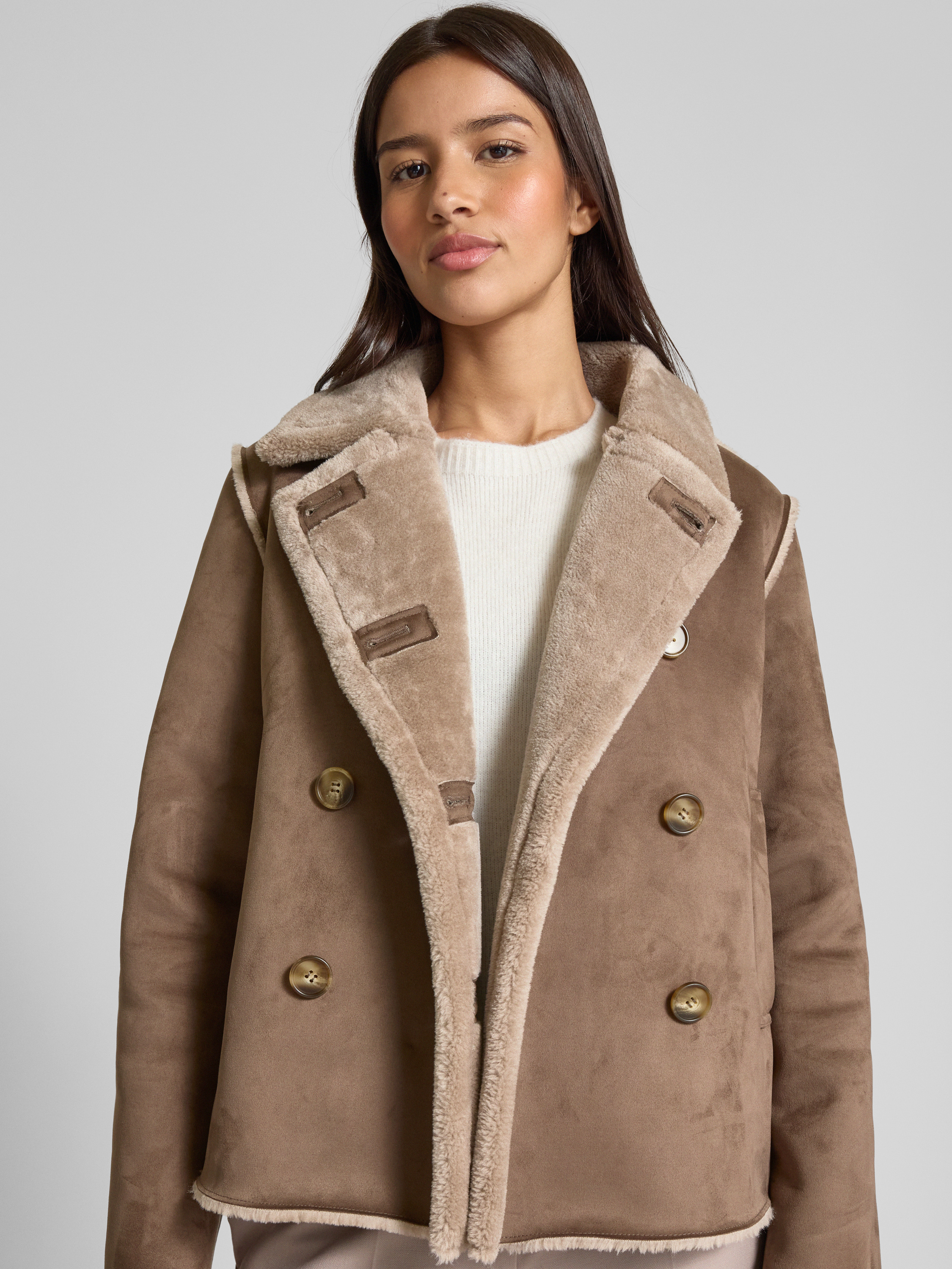 Die Damen Jacke von Fuchs Schmitt zeichnet sich durch ihren geraden Schnitt und den klassischen Umlegekragen aus, wodurch sie vielseitig kombinierbar bleibt. Durch den feinen Material-Mix mit Stretch-Anteil sitzt die Jacke angenehm und passt sich bequem unterschiedlichen Bewegungen an. Praktische Eingrifftaschen runden das Modell ab und machen es alltagstauglich.