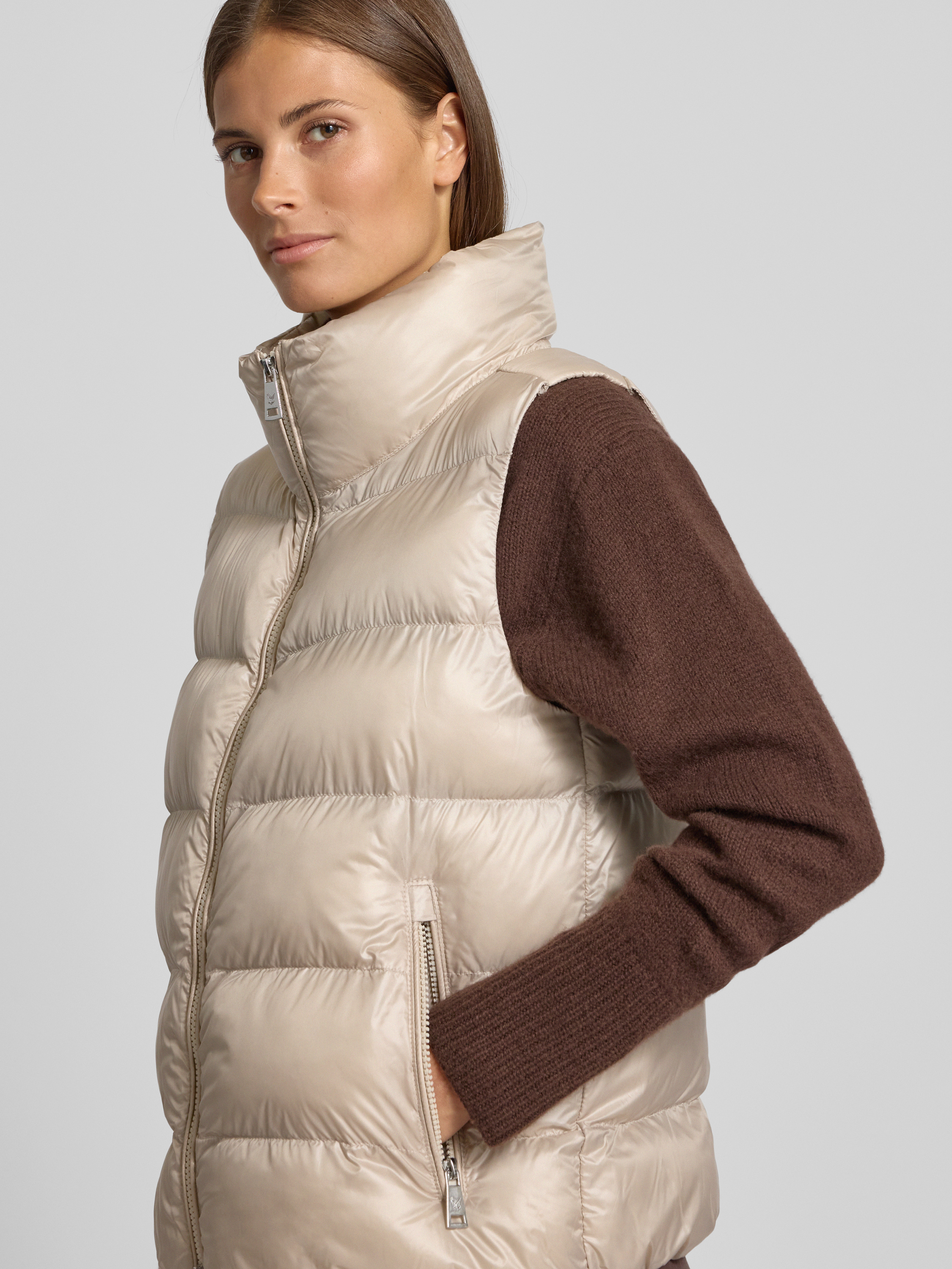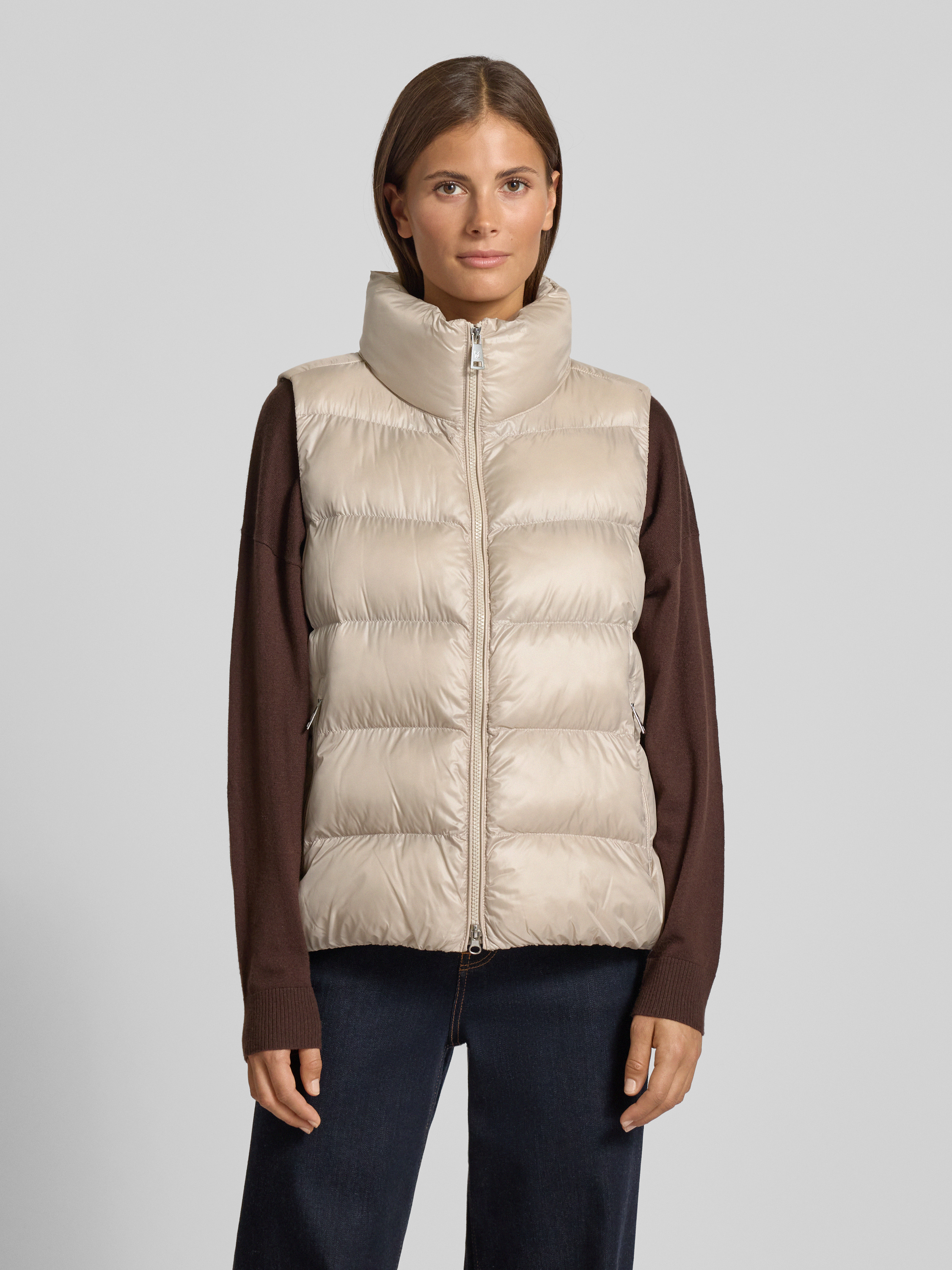Steppweste mit Stehkragen in ecru