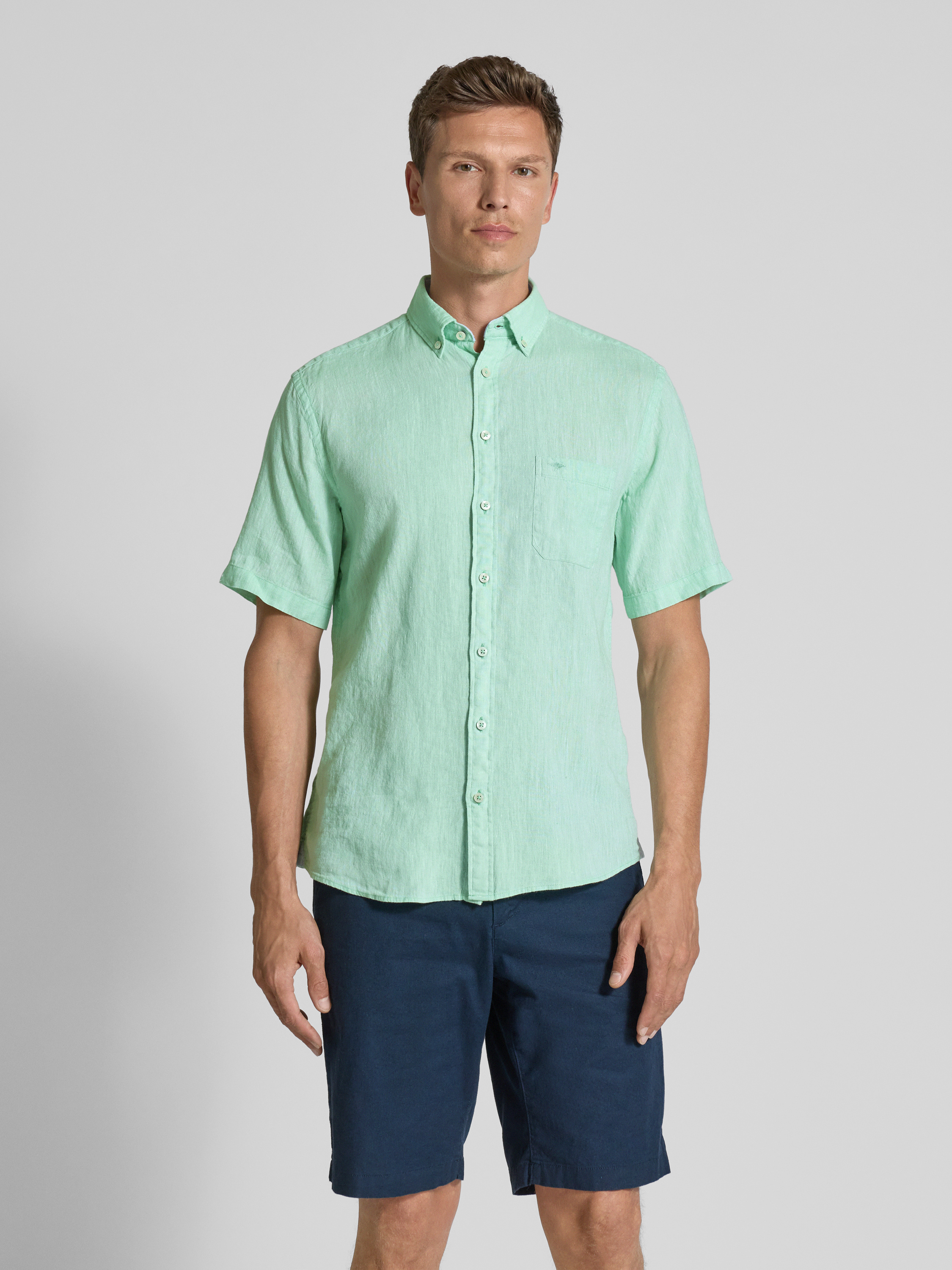 Fynch-HattonRegular Fit Freizeithemd aus Leinen-Baumwoll-Mix in hellgruen