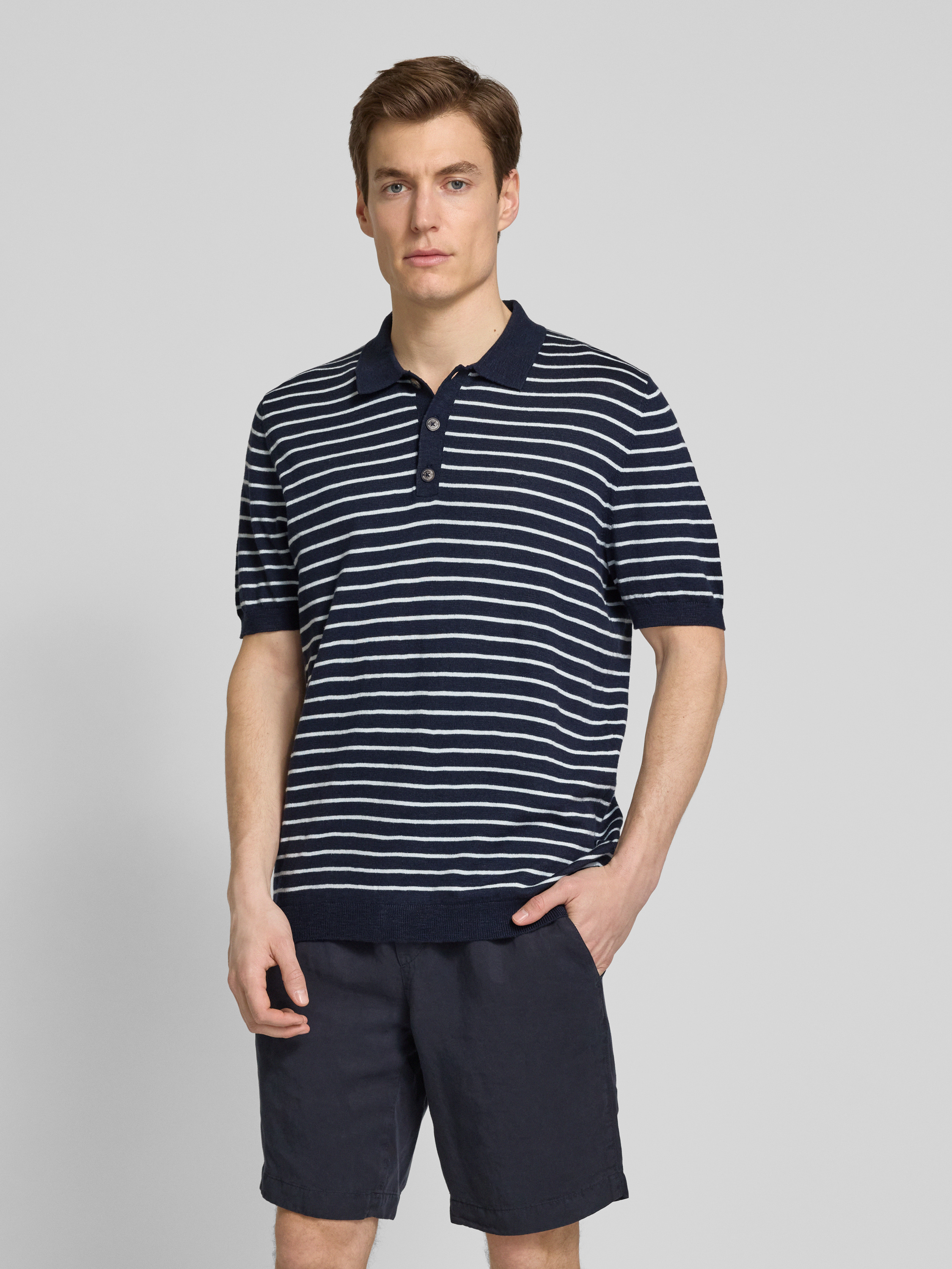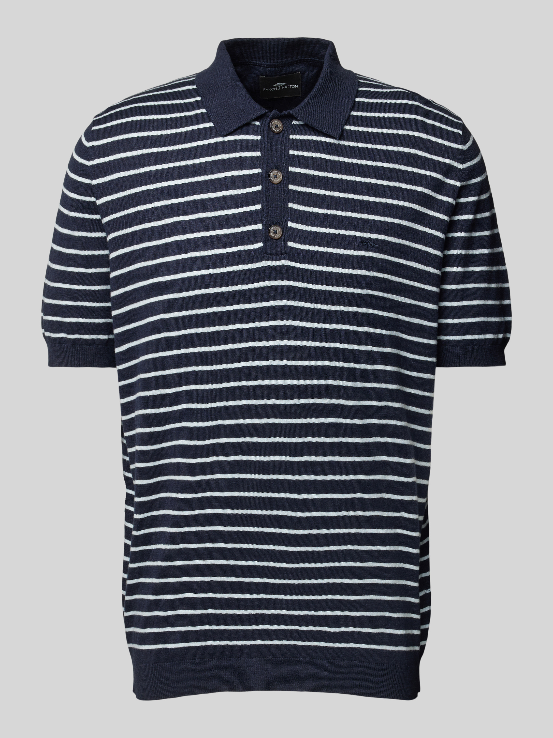 Fynch-HattonRegular Fit Poloshirt aus Baumwoll-Leinen-Mix in marine