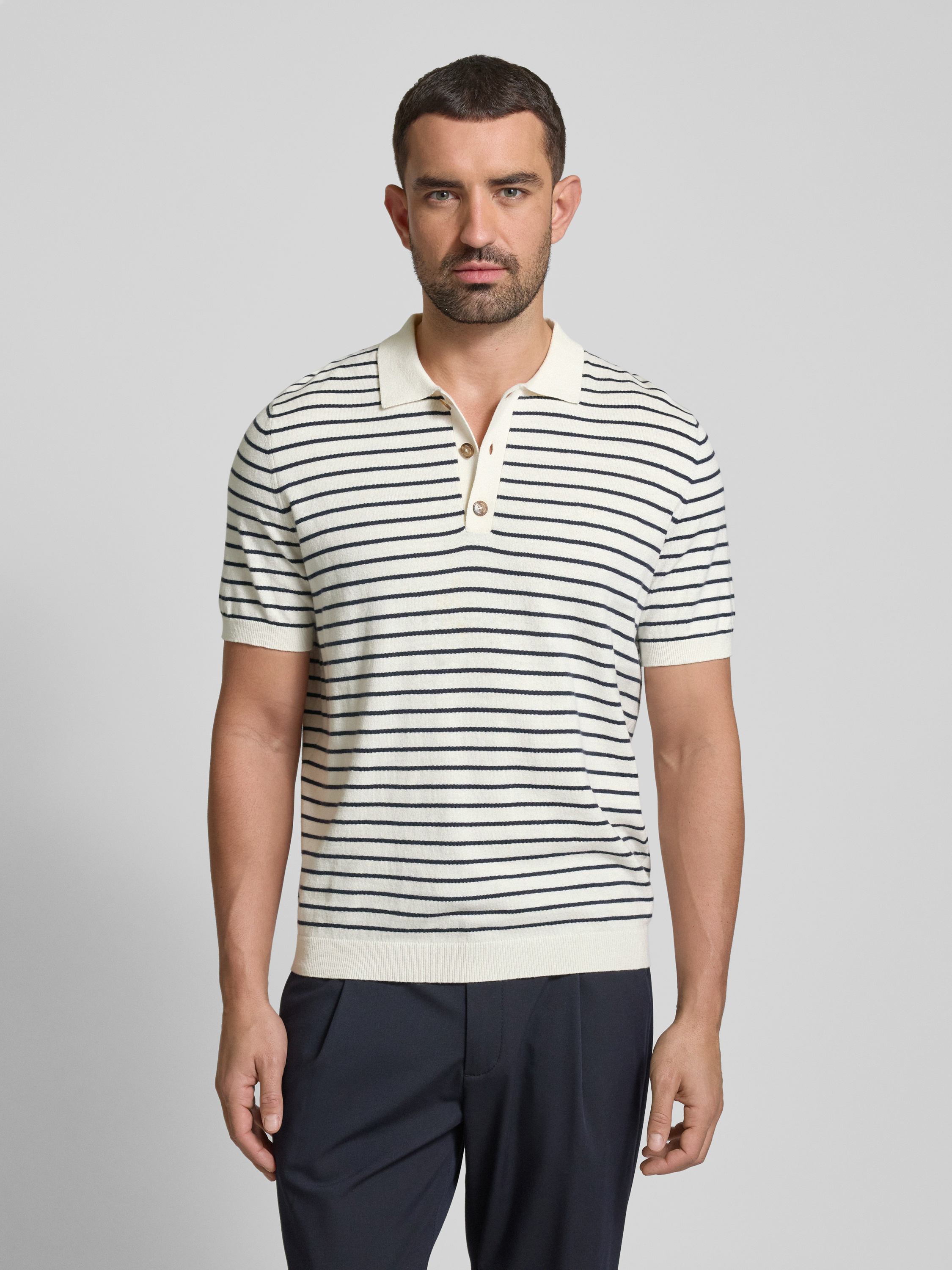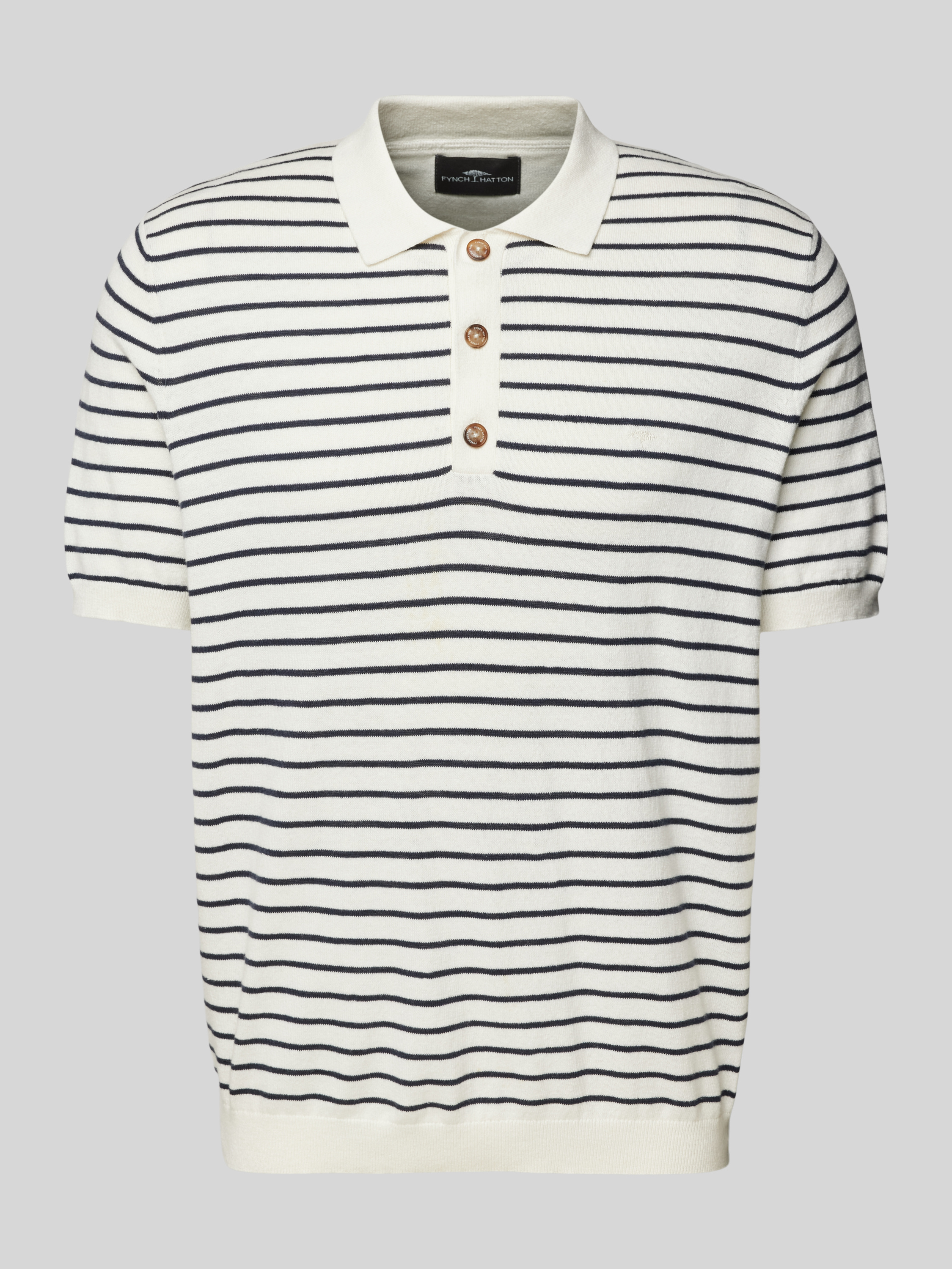 Fynch-HattonRegular Fit Poloshirt aus Baumwoll-Leinen-Mix in offwhite
