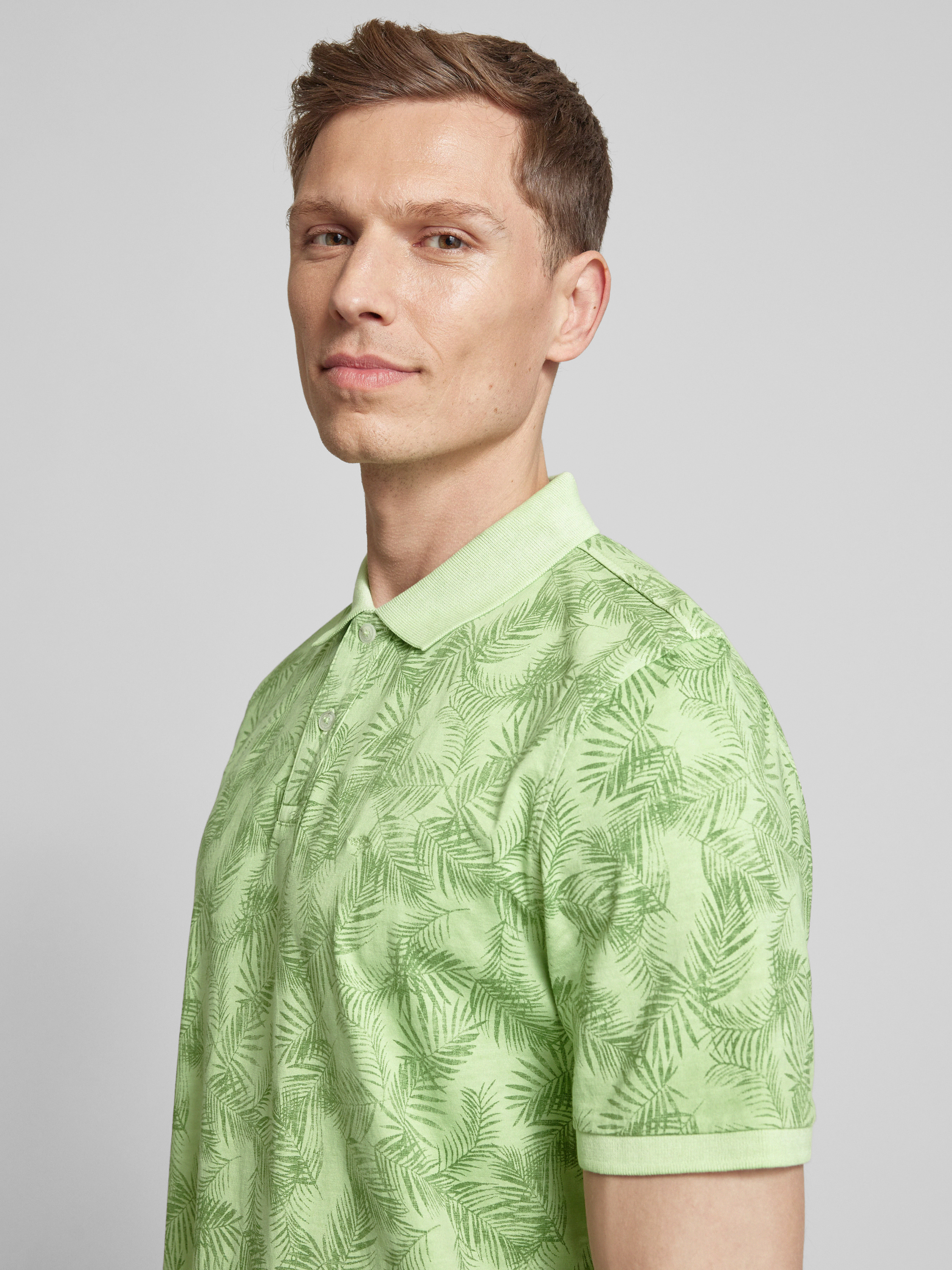 Regular Fit Poloshirt mit Allover-Print in hellgruen melange