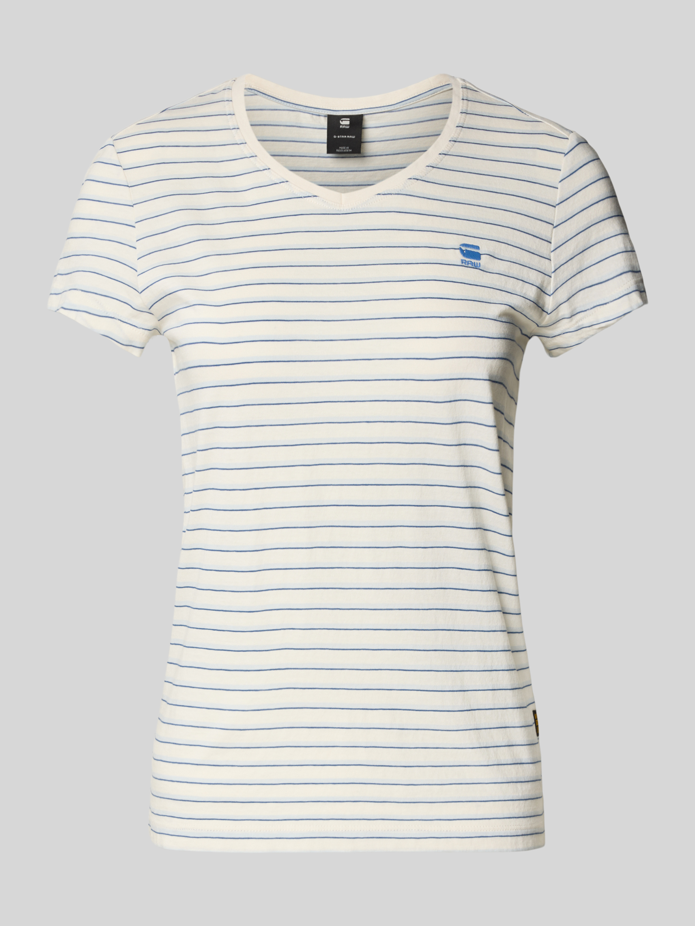 Das Slim Fit T-Shirt von G-Star Raw, Modell 'Stripe eyben', aus reiner Baumwolle, kombiniert ein klassisches Streifenmuster mit einem schmeichelhaften V-Ausschnitt. Dank der körpernahen Passform fühlt es sich angenehm an und ermöglicht vielseitige Kombinationsmöglichkeiten. Ein dezentes Label-Stitching rundet das Design ab.