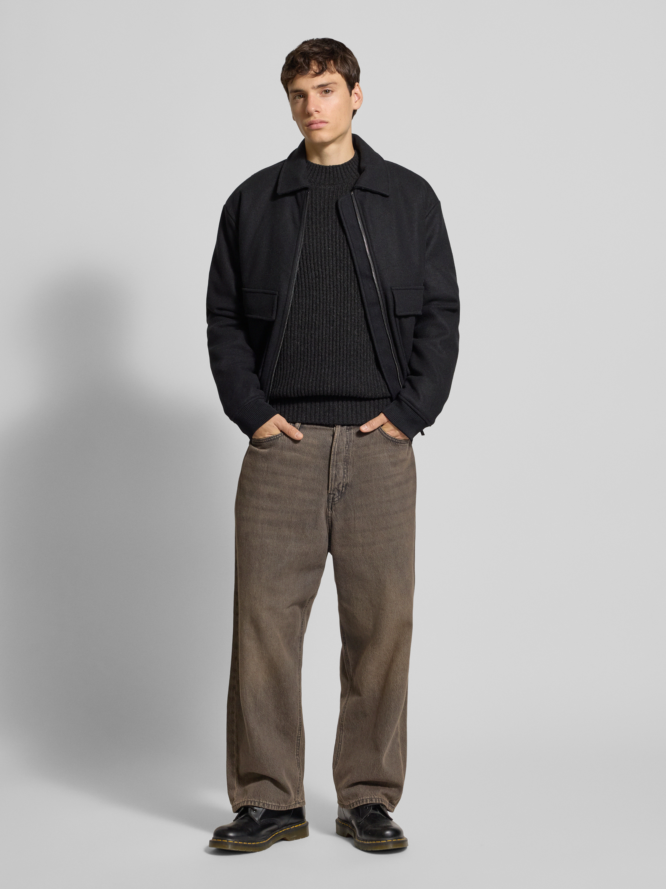 G-Star RawStrickpullover mit gerippten Abschlüssen in anthrazit