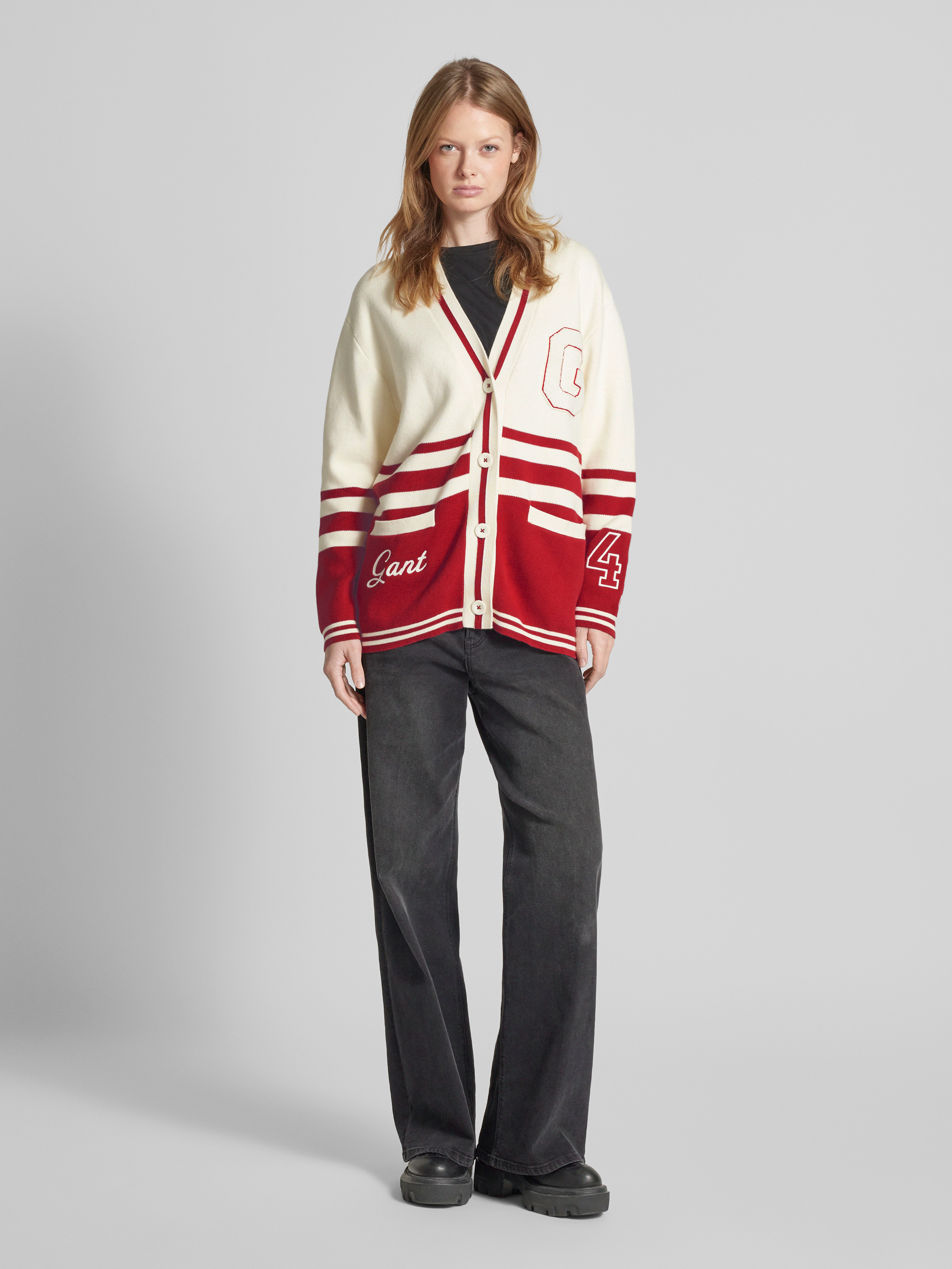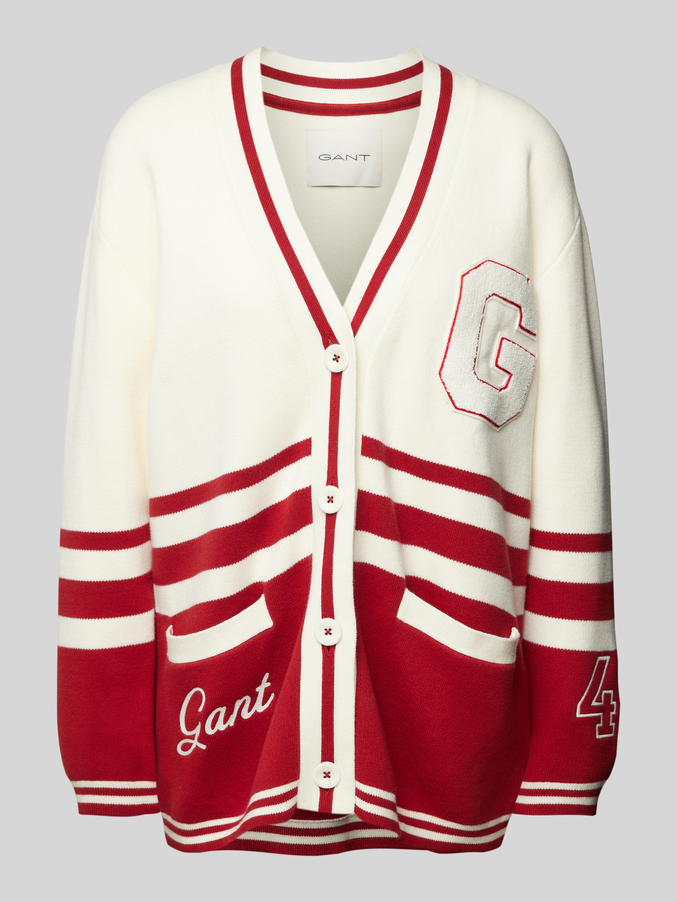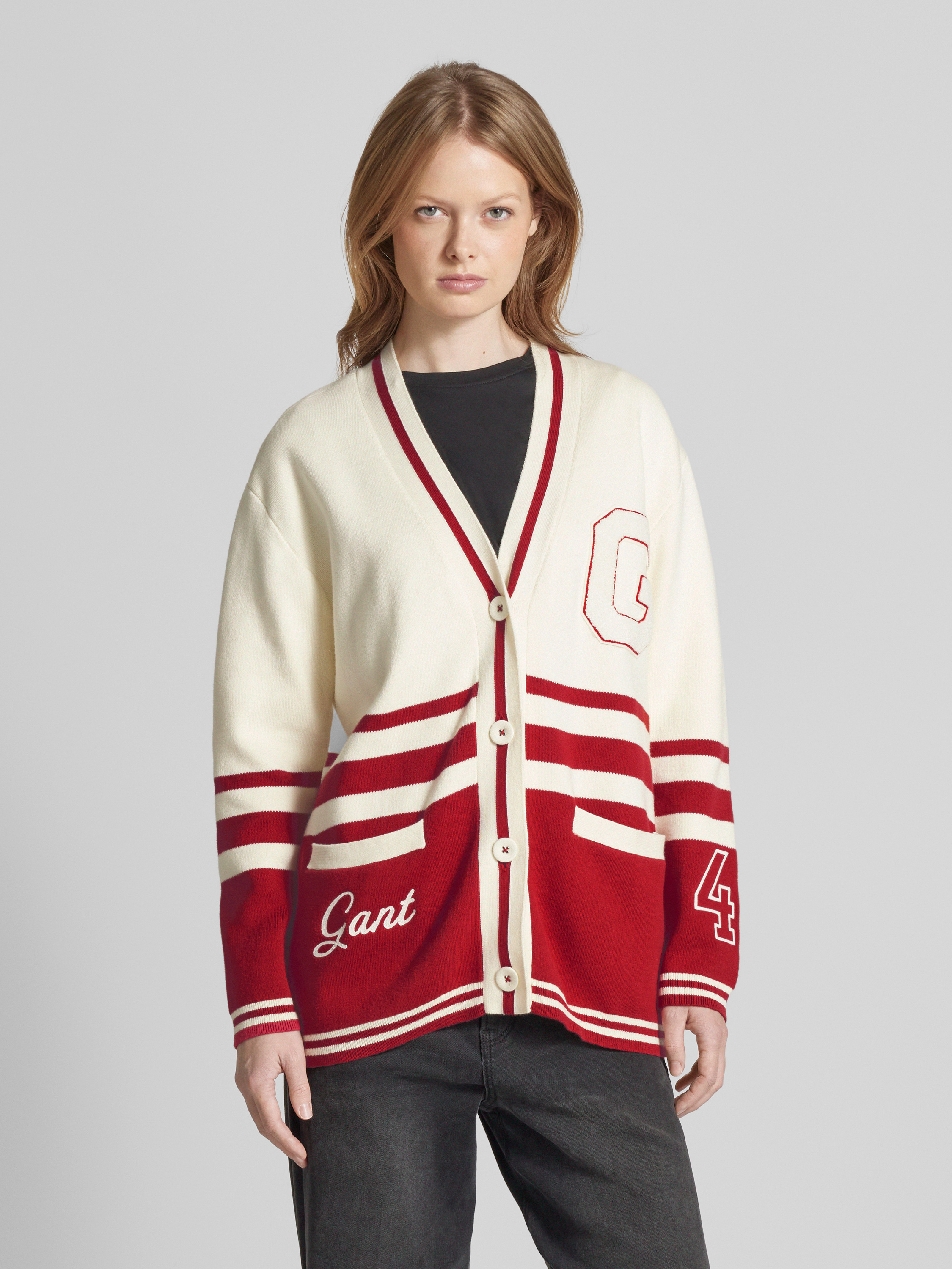 Der Damen Cardigan von GANT präsentiert sich in einem lockeren Schnitt, der sich angenehm um den Körper legt. Mit seinem V-Ausschnitt und den seitlichen Eingrifftaschen bietet er eine Kombination aus Komfort und Stil. Das subtile Label-Stitching verleiht dem Kleidungsstück eine dezente Raffinesse.
