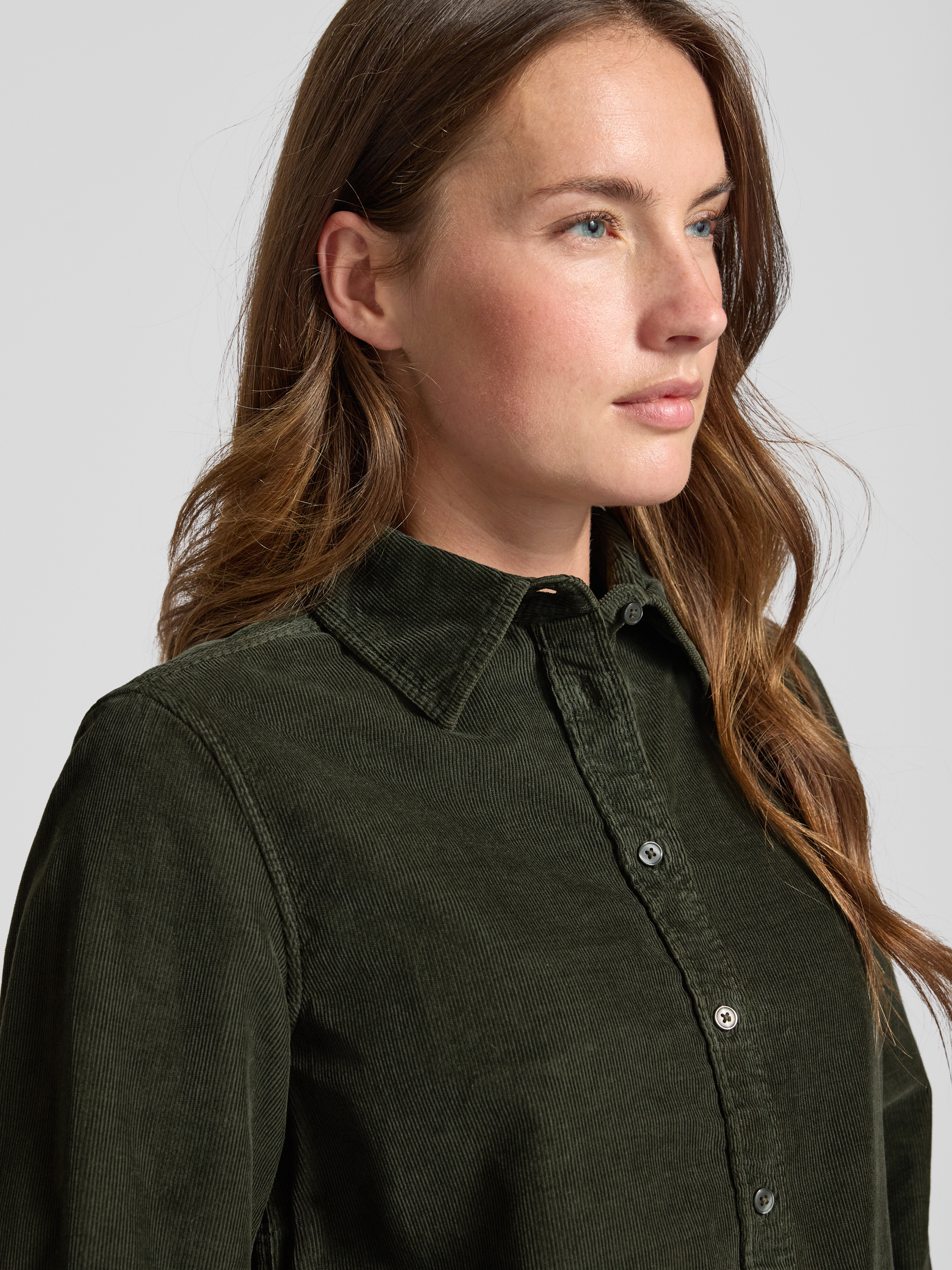 Die Cordbluse von Gant aus reiner Baumwolle zeichnet sich durch ihren lockeren Schnitt aus, der angenehm Bewegungsfreiheit lässt. Ein klassischer Hemdblusenkragen ergänzt das zeitlose Design und sorgt für einen entspannten Look. Die durchgehende Knopfleiste ermöglicht vielseitige Styling-Varianten im Alltag.