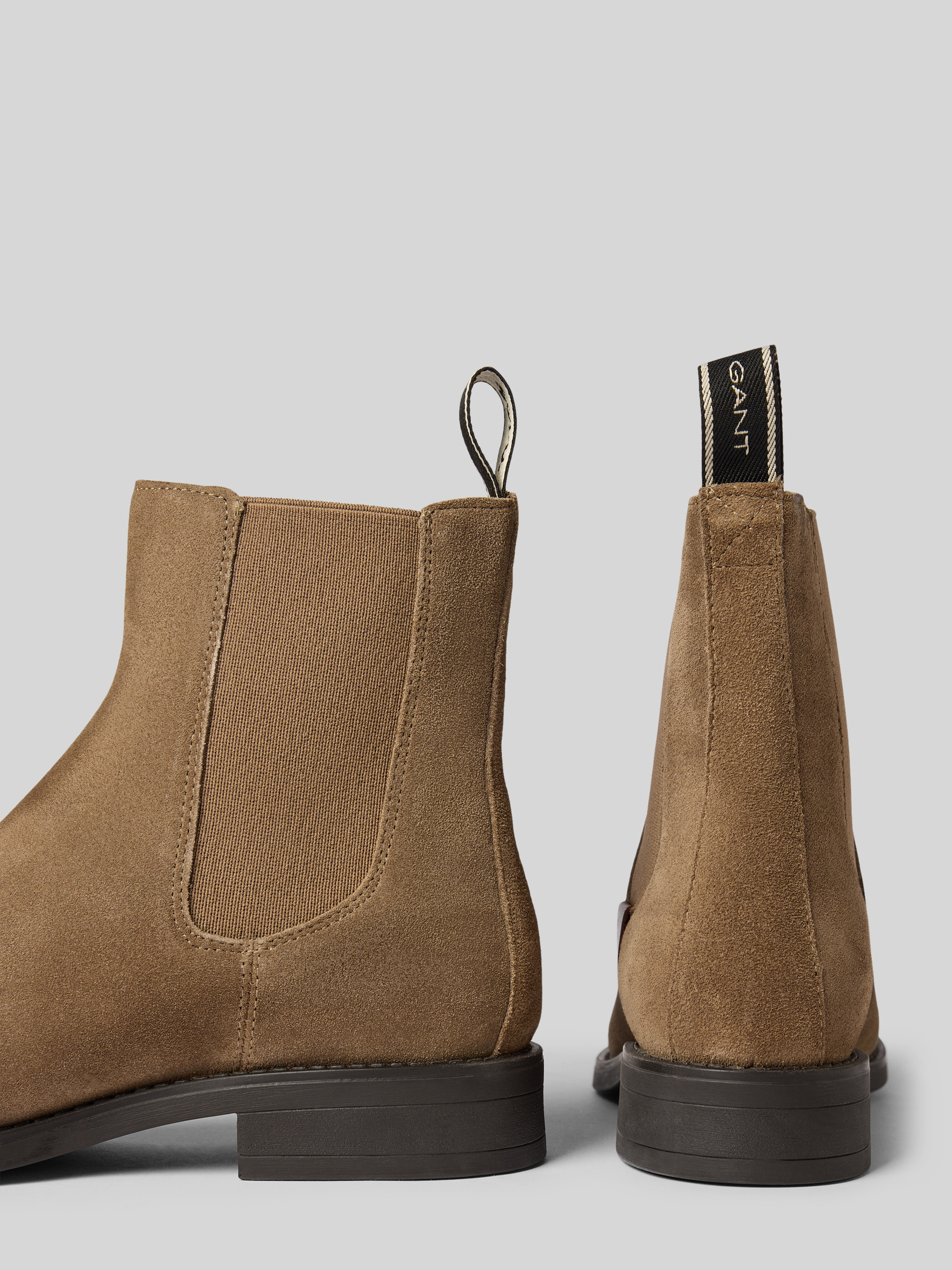 Die Damen Lederstiefelette von Gant, Modell 'Fayy', besteht aus hochwertigem Leder und zeichnet sich durch ihre abgerundete Form aus. Dezente Label-Details und eine strukturierte Sohle sorgen für einen modernen Akzent, während elastische Einsätze den Einstieg angenehm erleichtern. Dieses Modell eignet sich ideal für vielseitige Outfits.