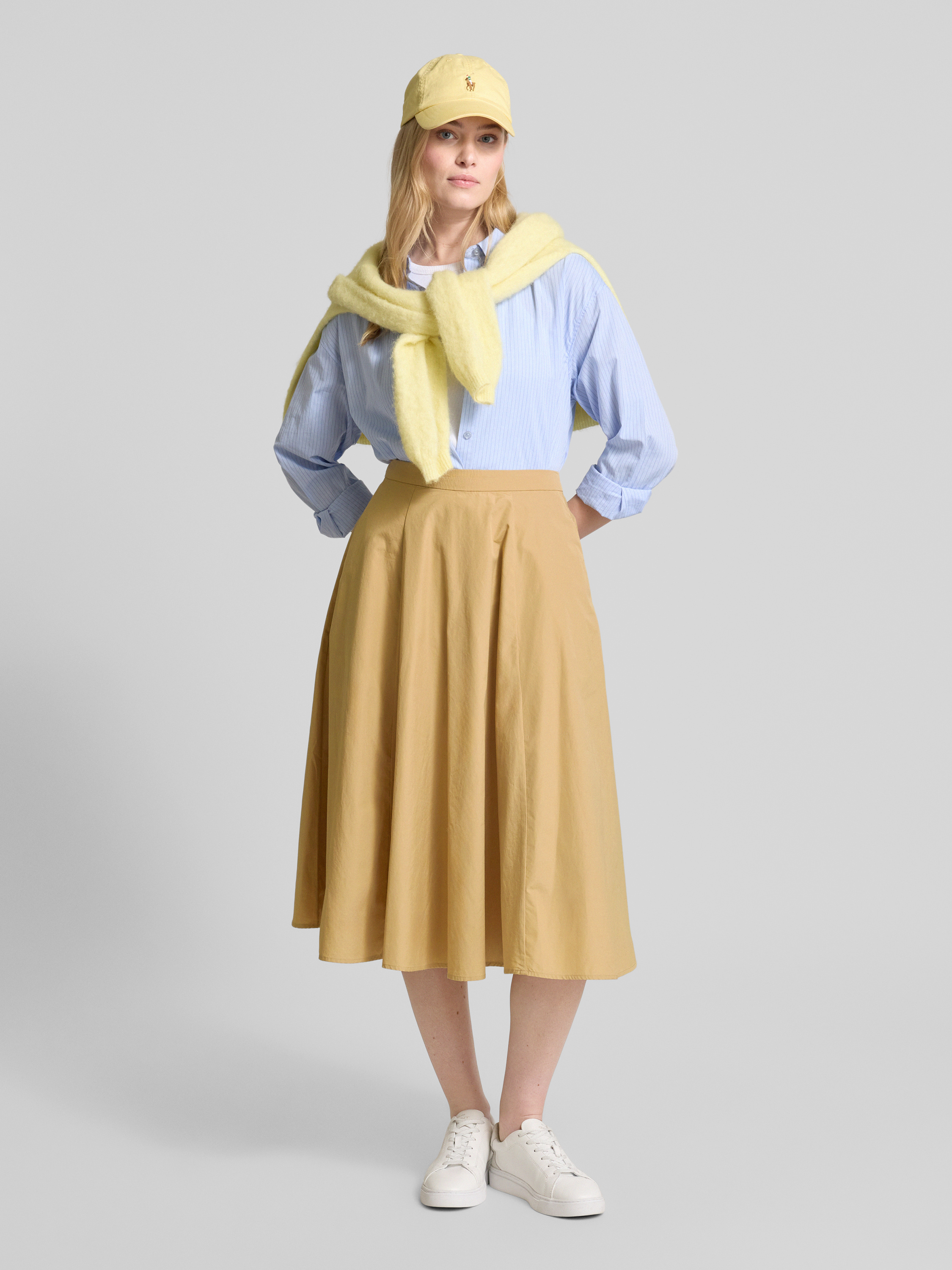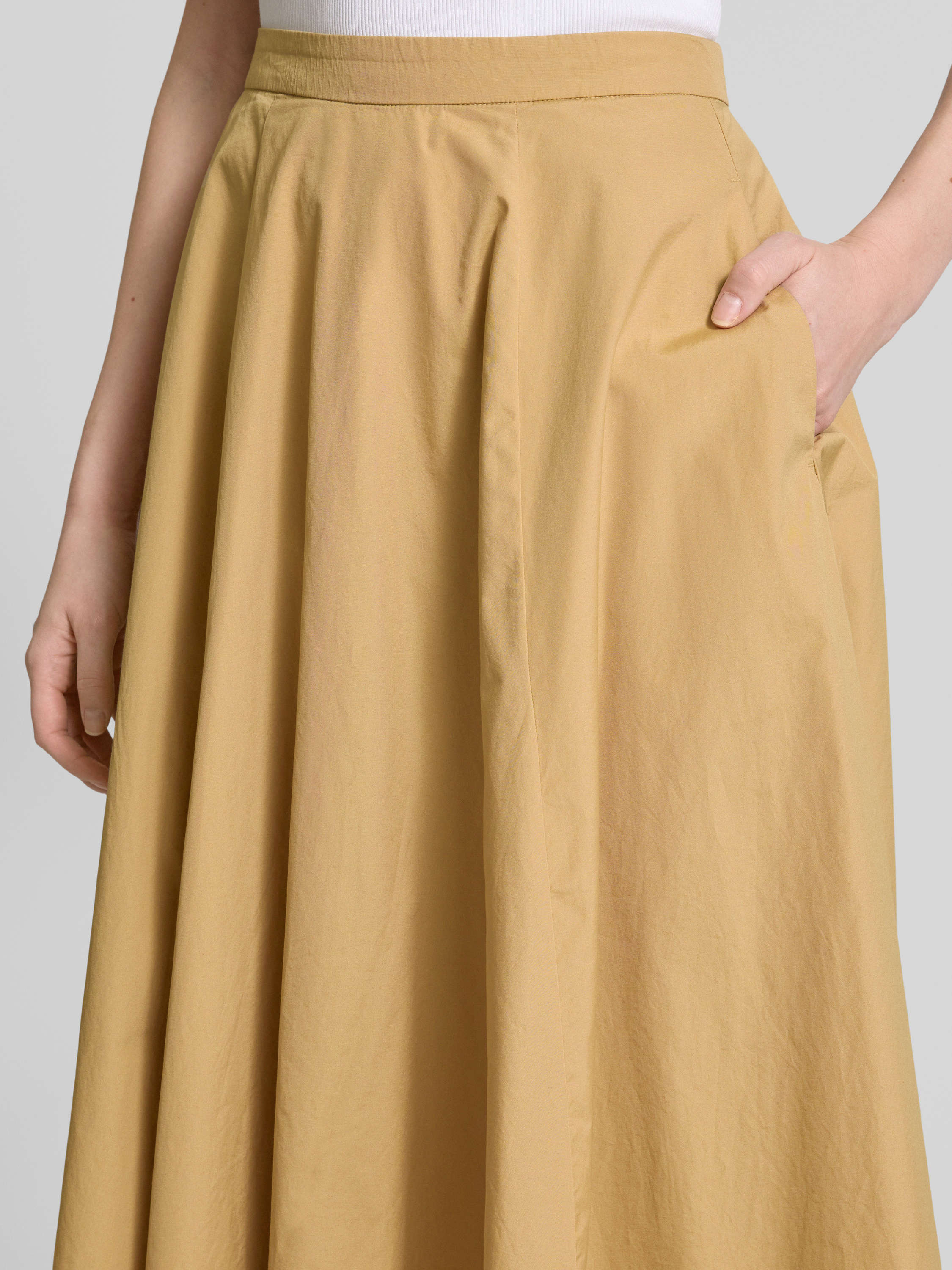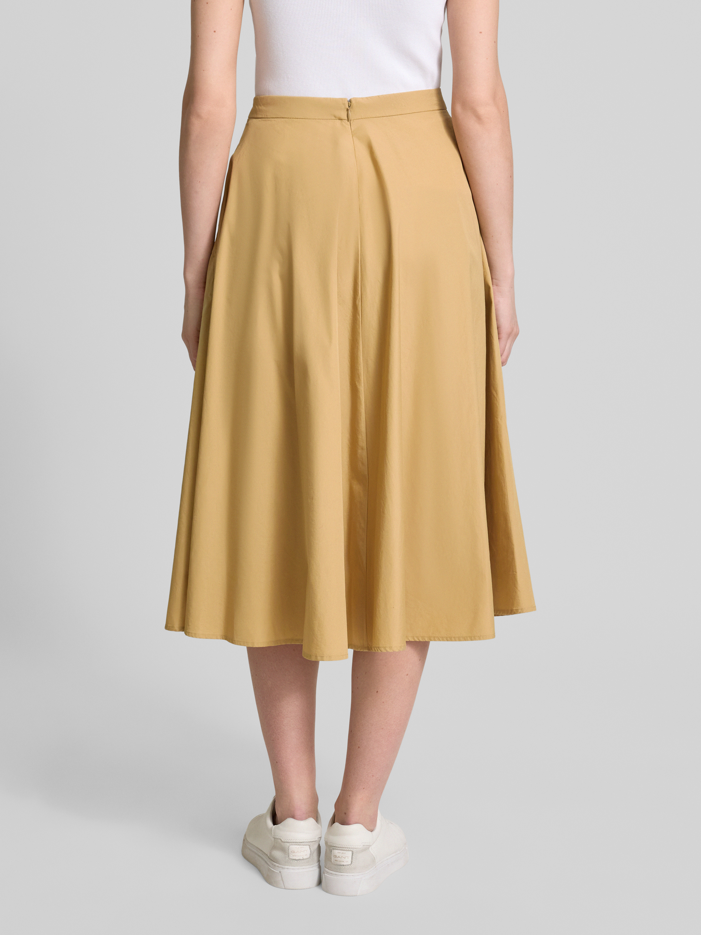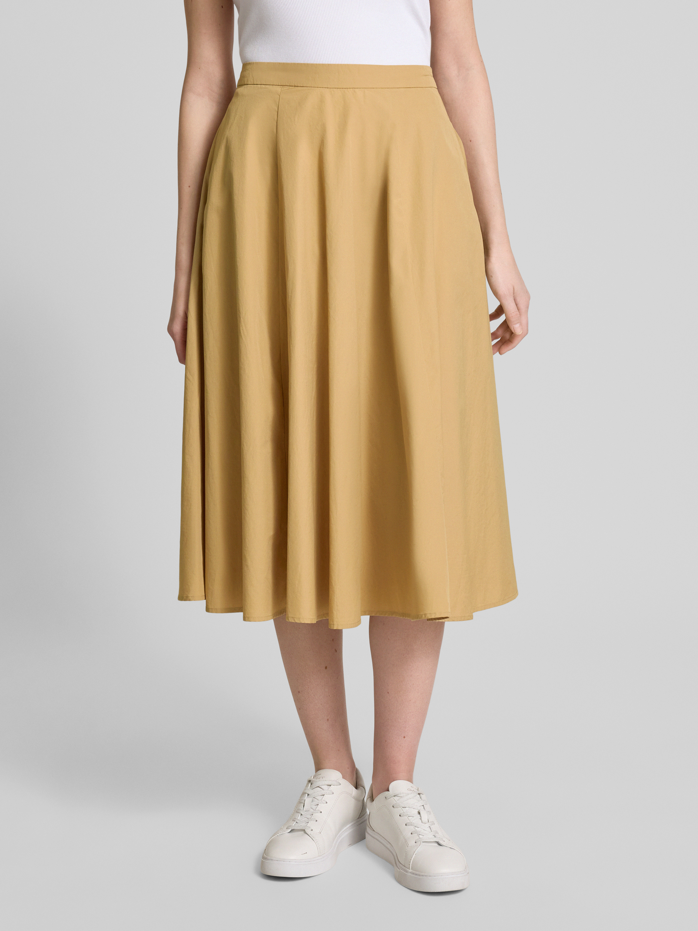 Der Midirock von GANT aus reiner Baumwolle präsentiert sich in einer schmeichelhaften A-Linie und bietet durch seine Eingrifftaschen praktische Funktionalität. Der fließende Schnitt sorgt für eine angenehme Bewegungsfreiheit und eignet sich ideal für vielseitige Kombinationen im Alltag.
