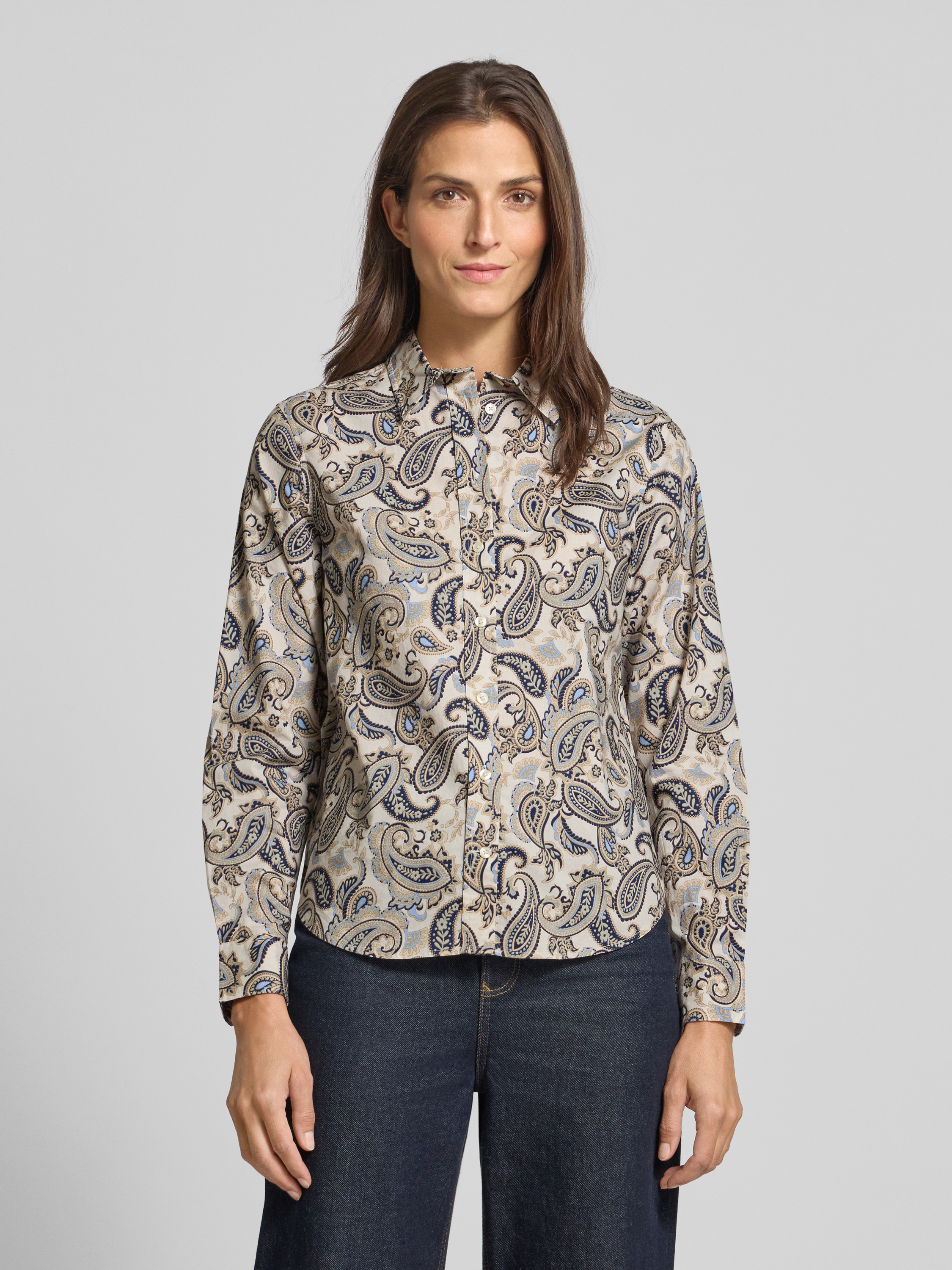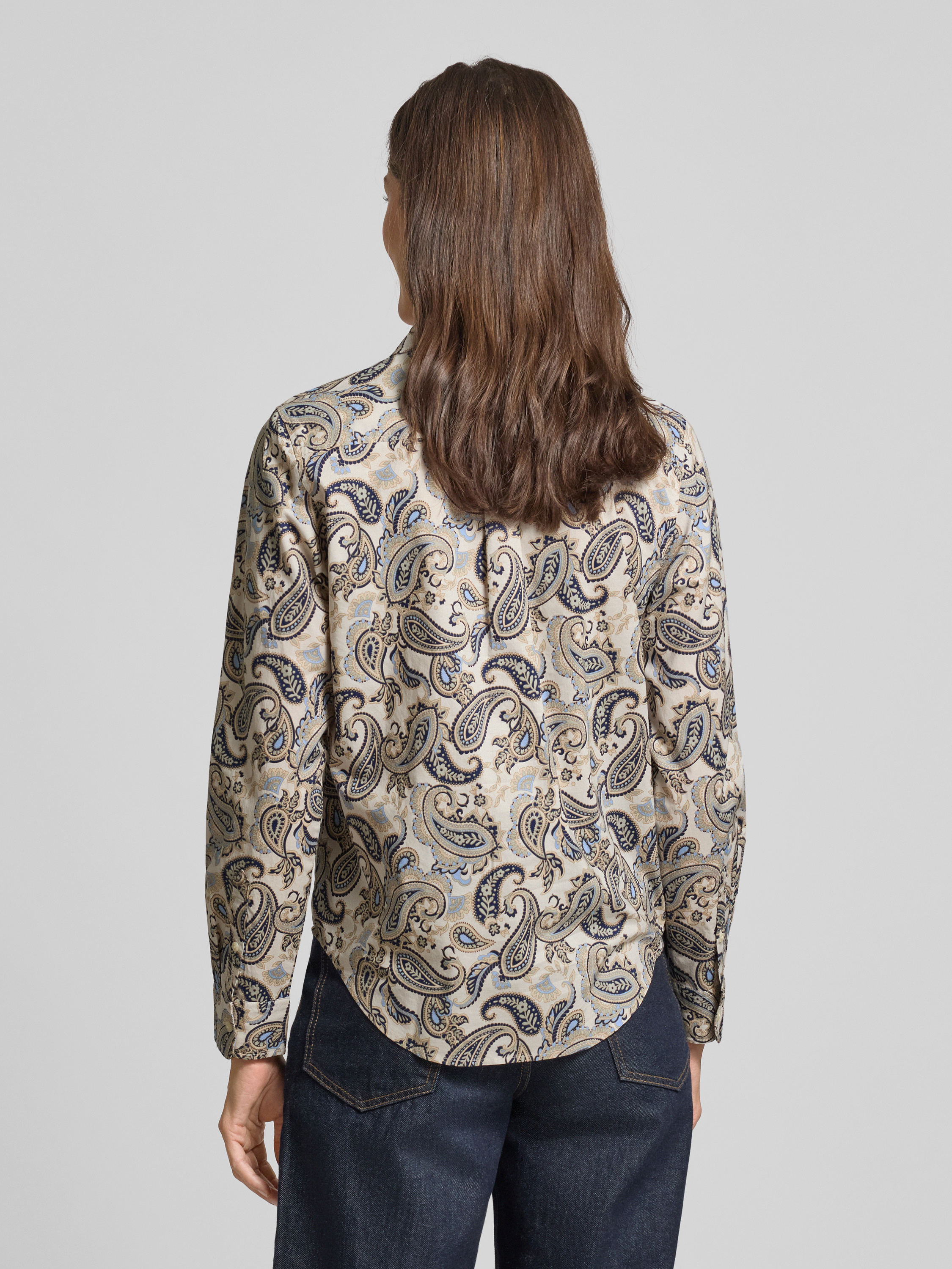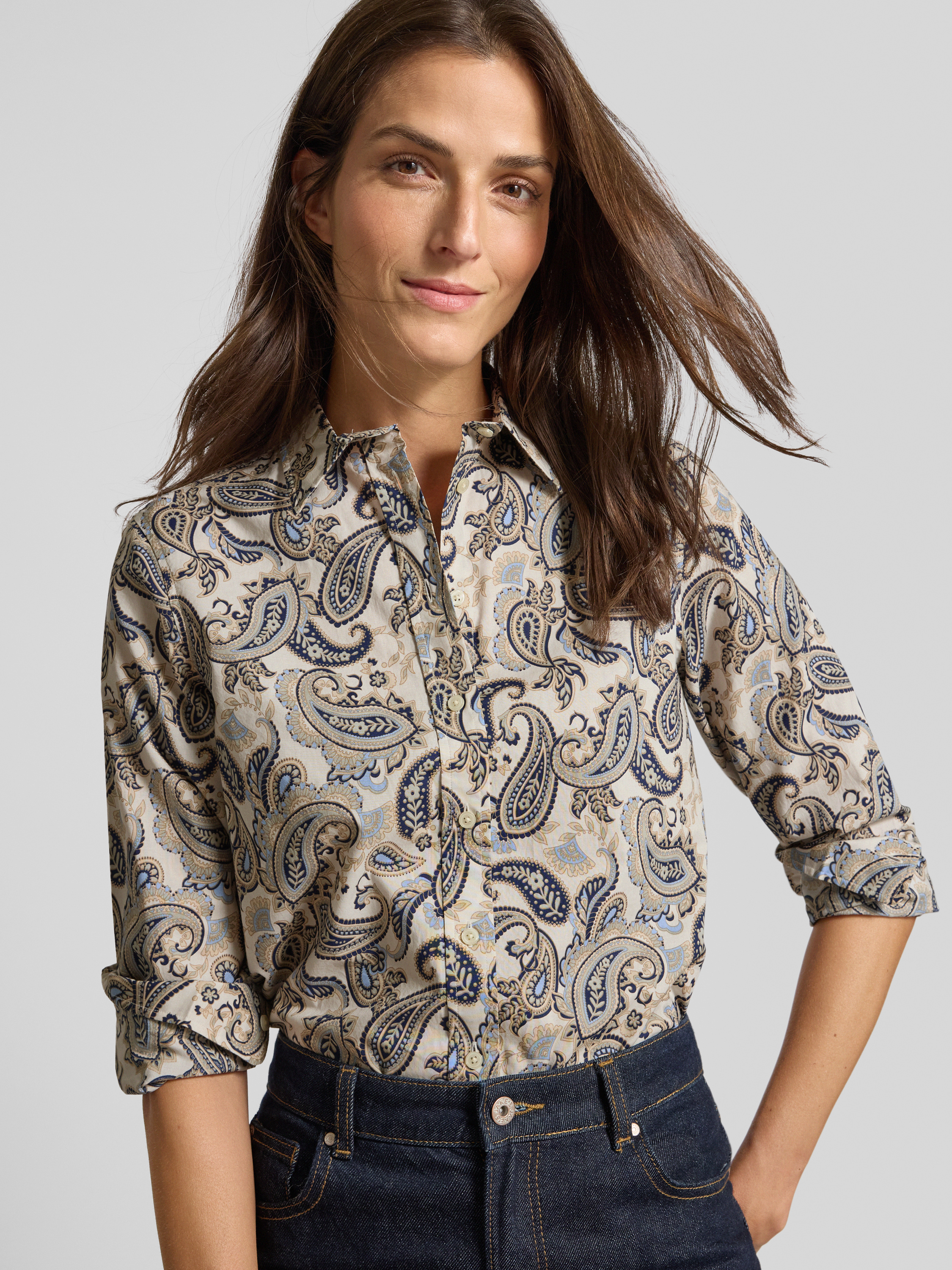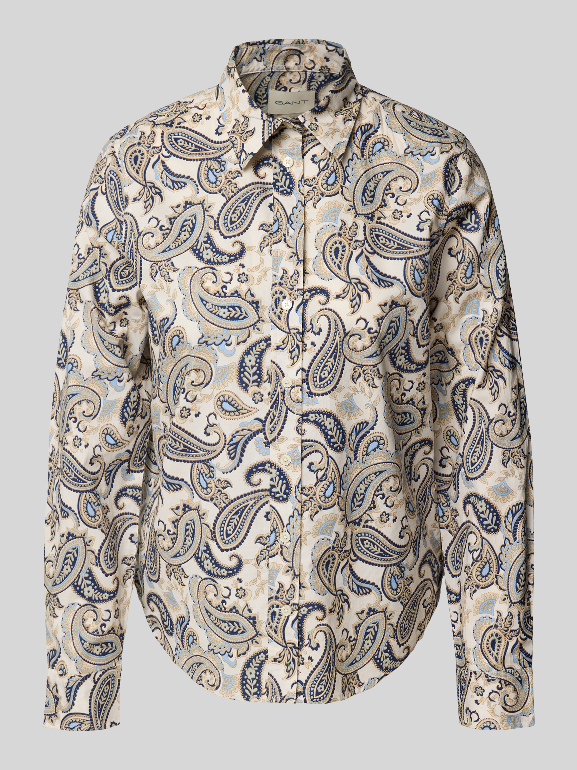 Die Regular Fit Hemdbluse Voile von Gant besteht aus reiner Baumwolle und liegt angenehm auf der Haut. Durch den Allover-Paisley-Print und den klassischen Hemdblusenkragen wirkt das Modell lebendig, ohne aufdringlich zu erscheinen. Ihr lockerer Schnitt eignet sich für verschiedene Anlässe.