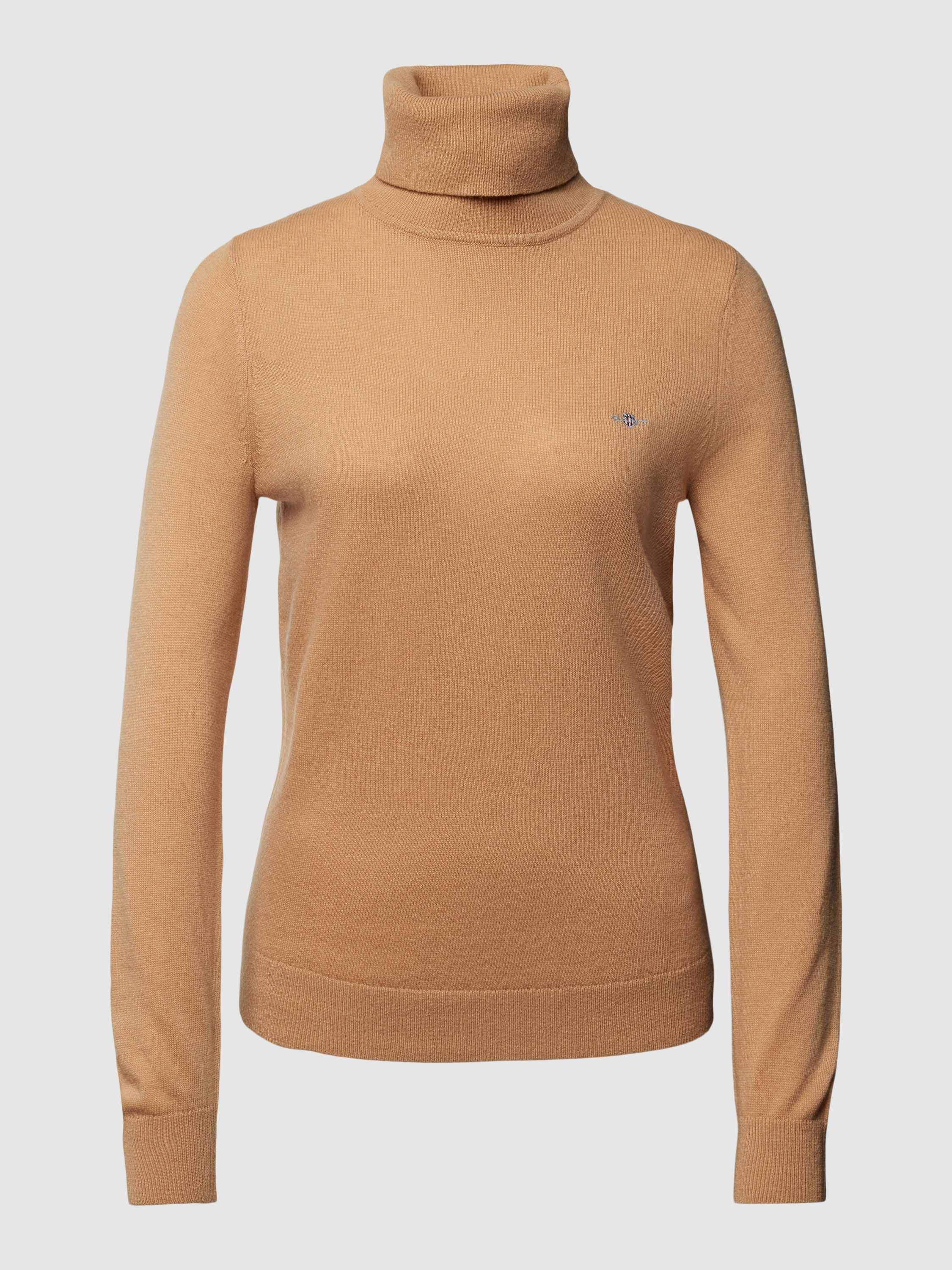 GantRollkragenpullover aus Leinen-Mix mit Logo-Stitching in camel