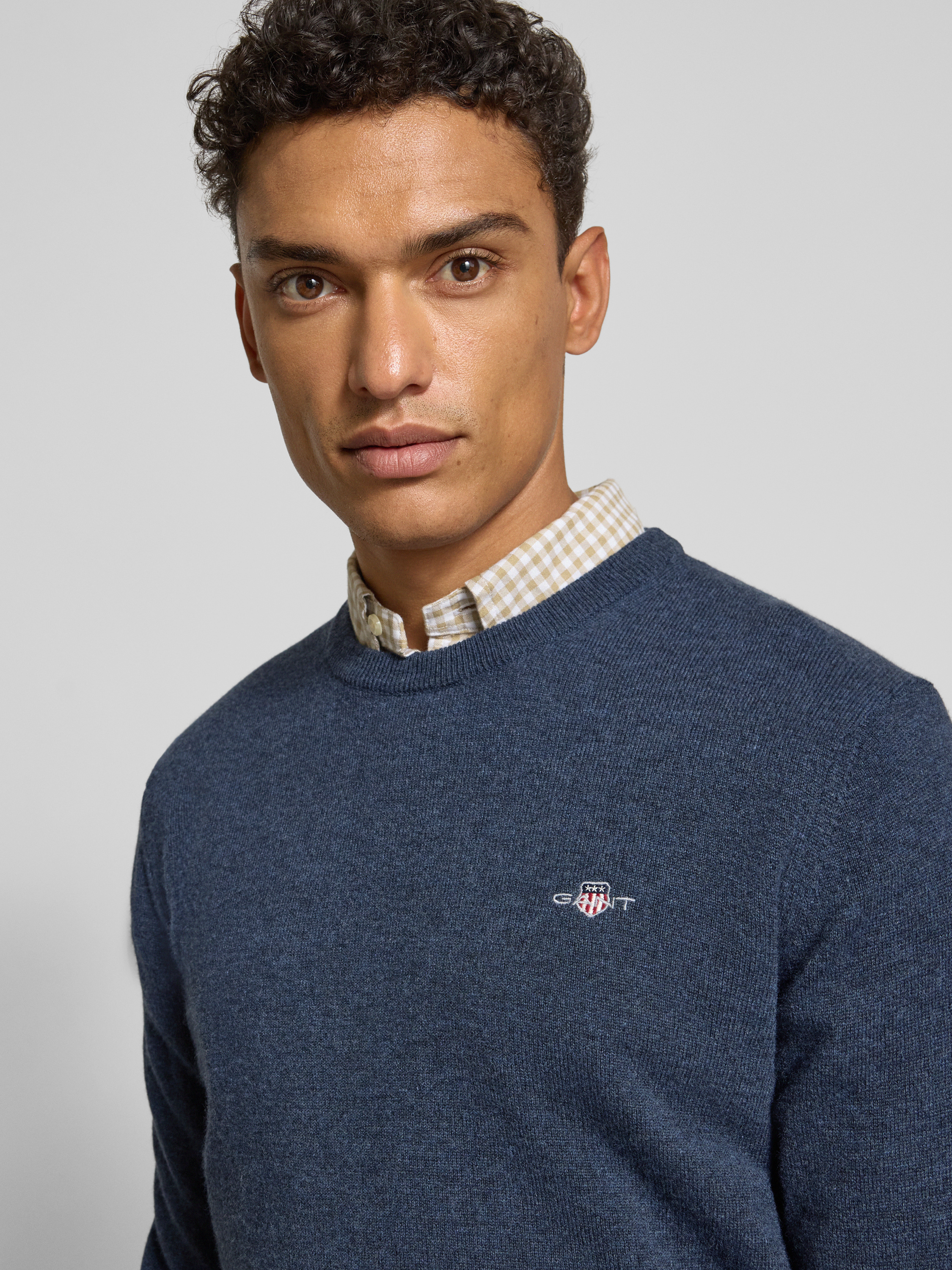 • Gant Strickpullover aus reiner Lammwolle mit gerippten Abschlüssen Marine Melange
