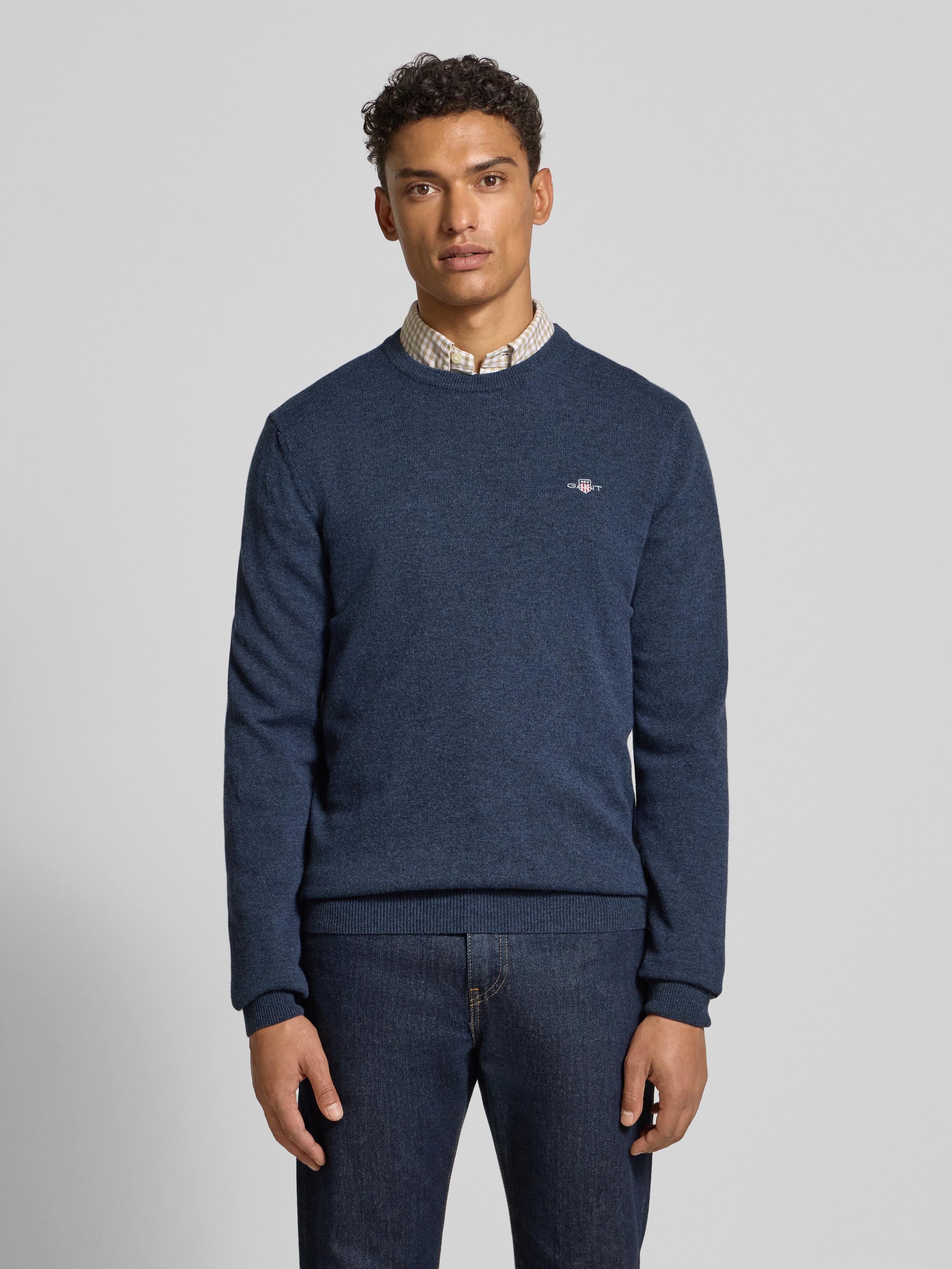GantStrickpullover aus reiner Lammwolle mit gerippten Abschlüssen in marine melange