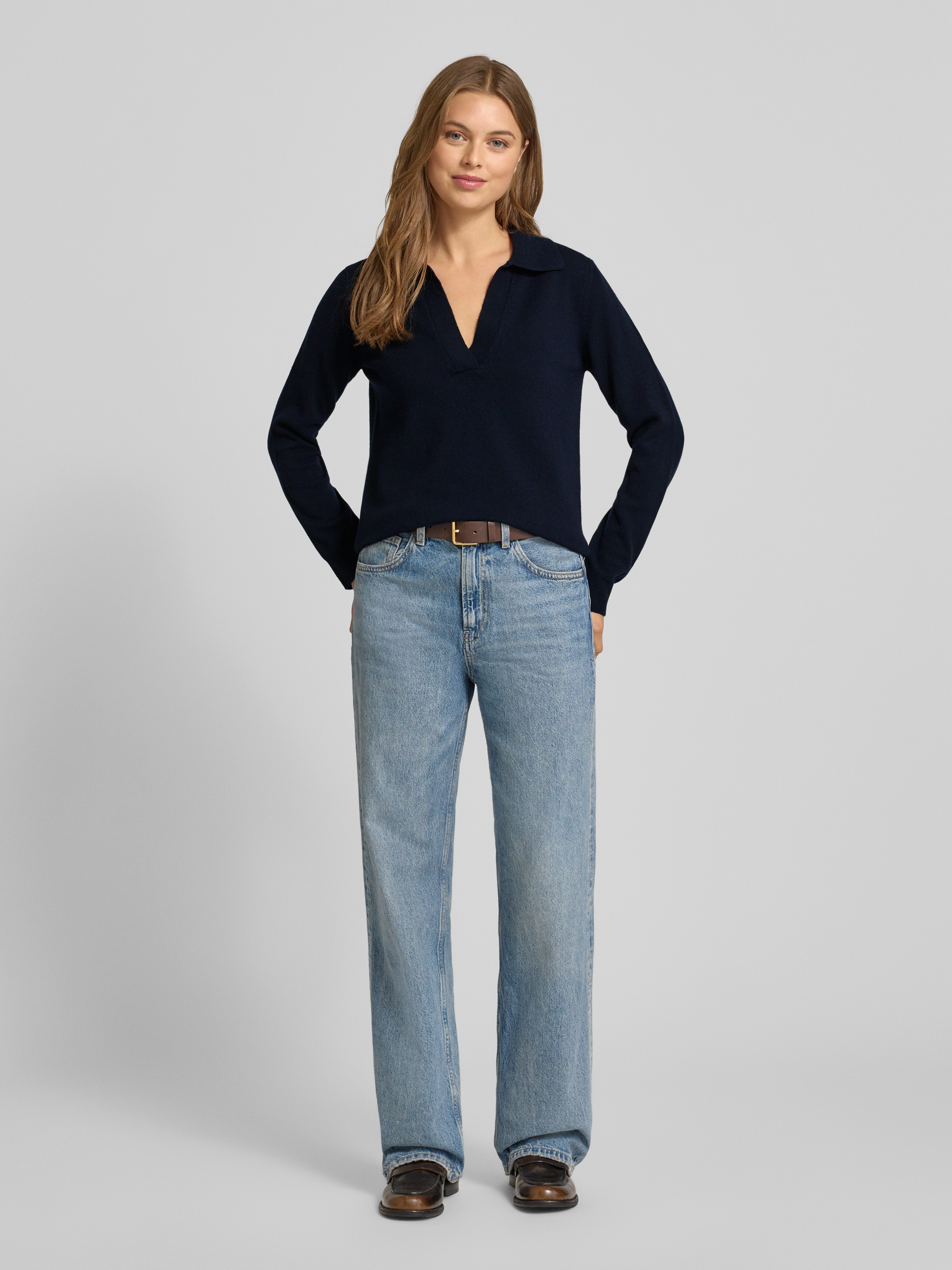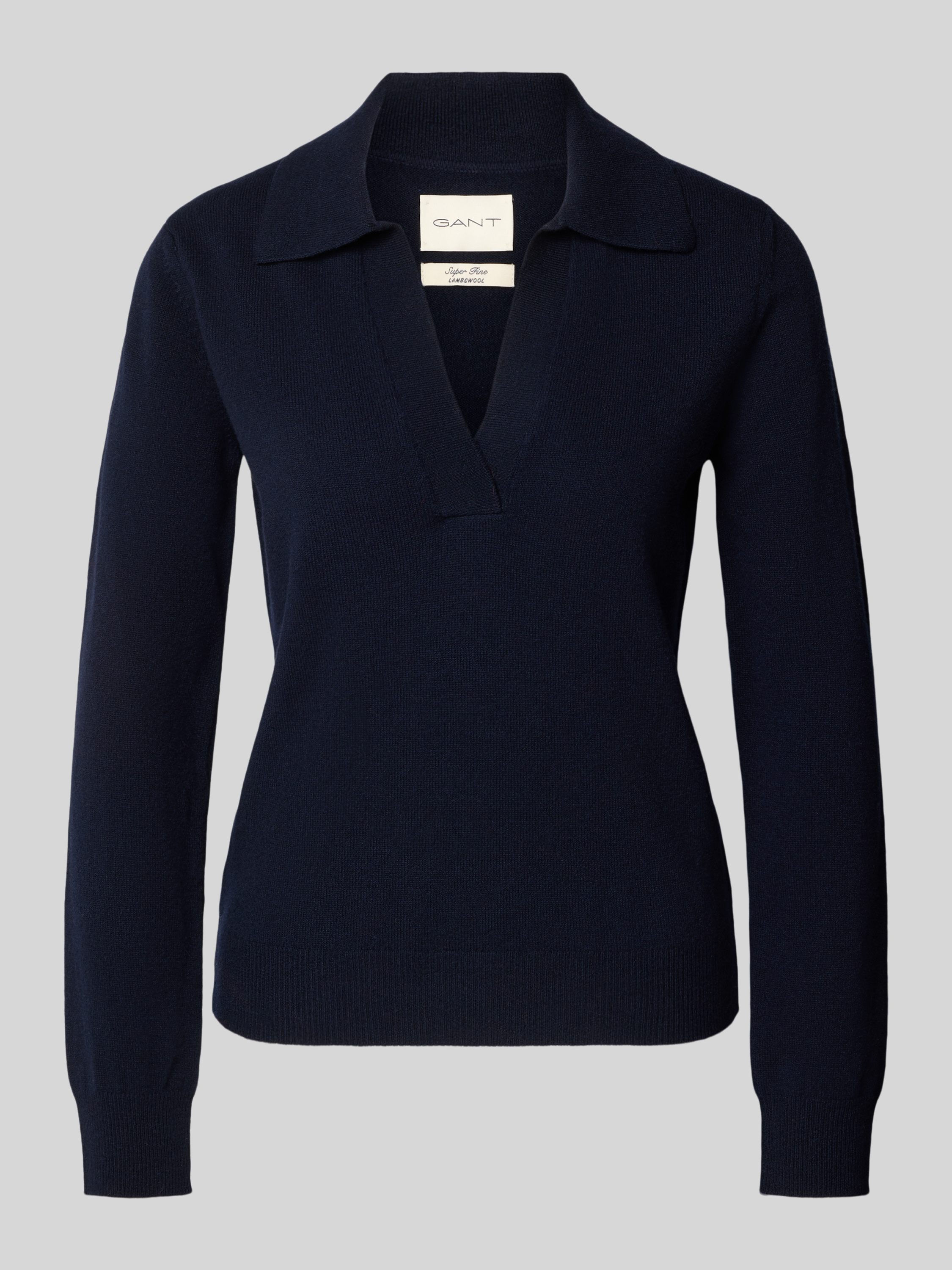 GantStrickpullover aus Wolle mit Umlegekragen und V-Ausschnitt in marine