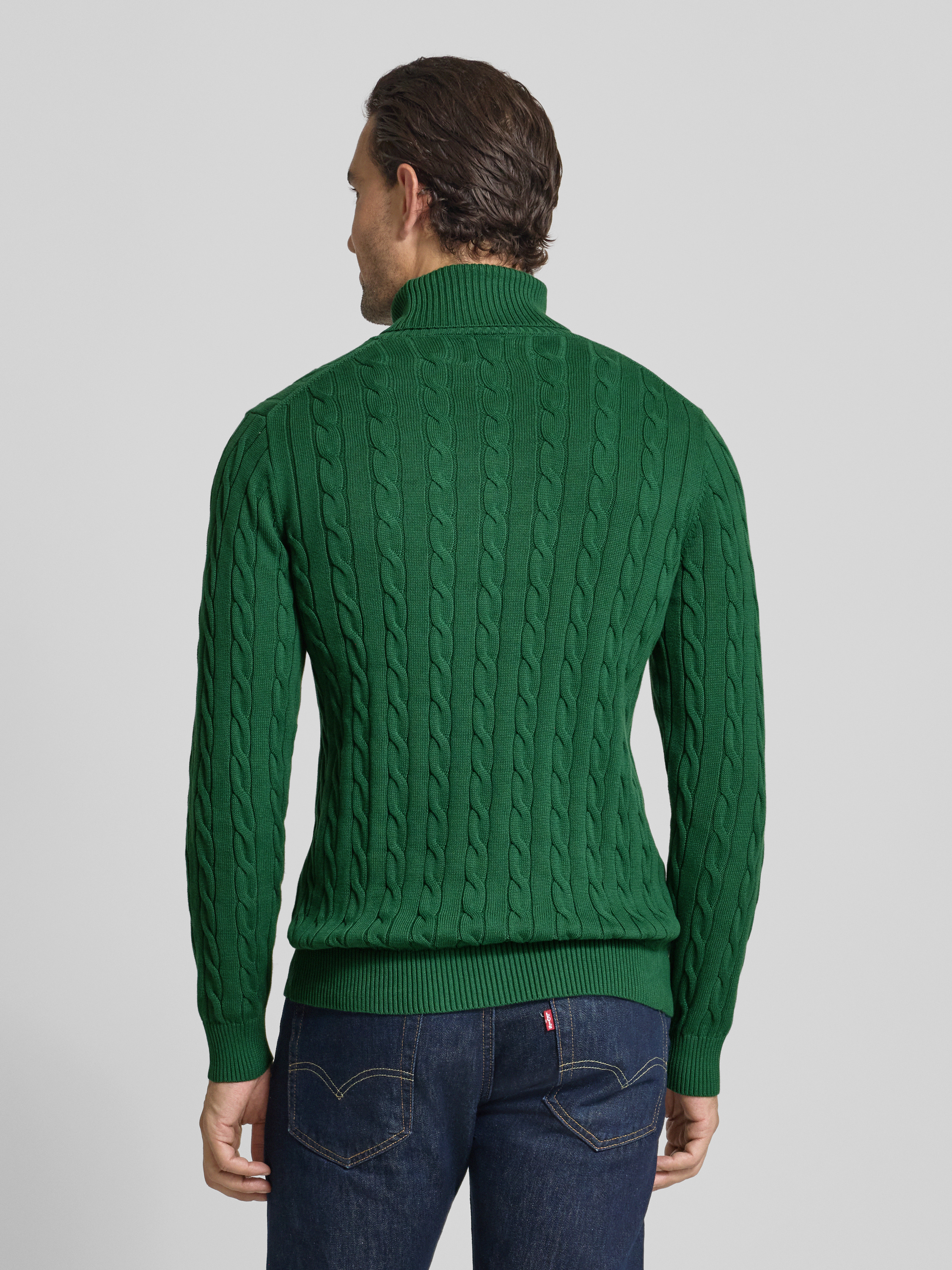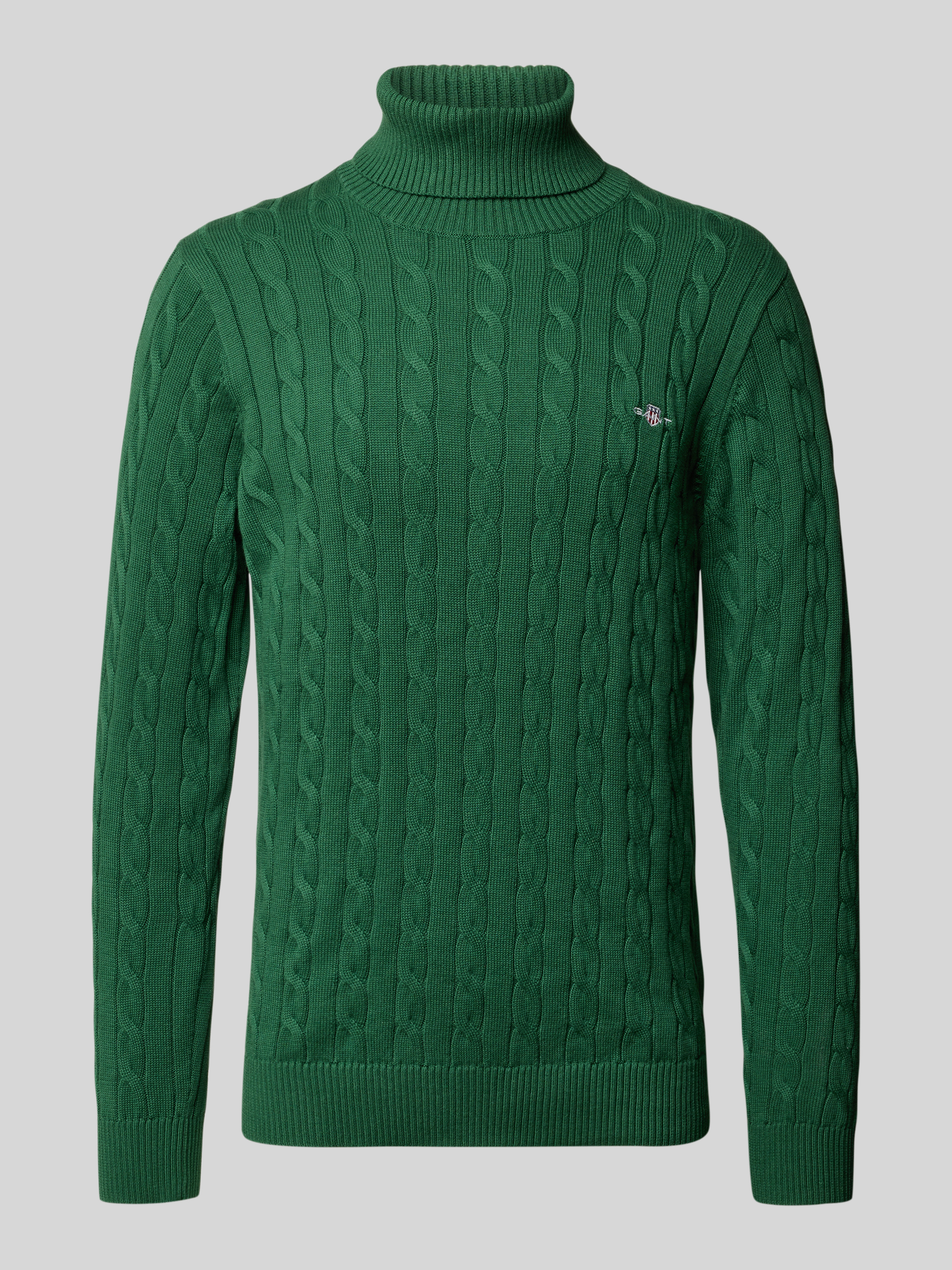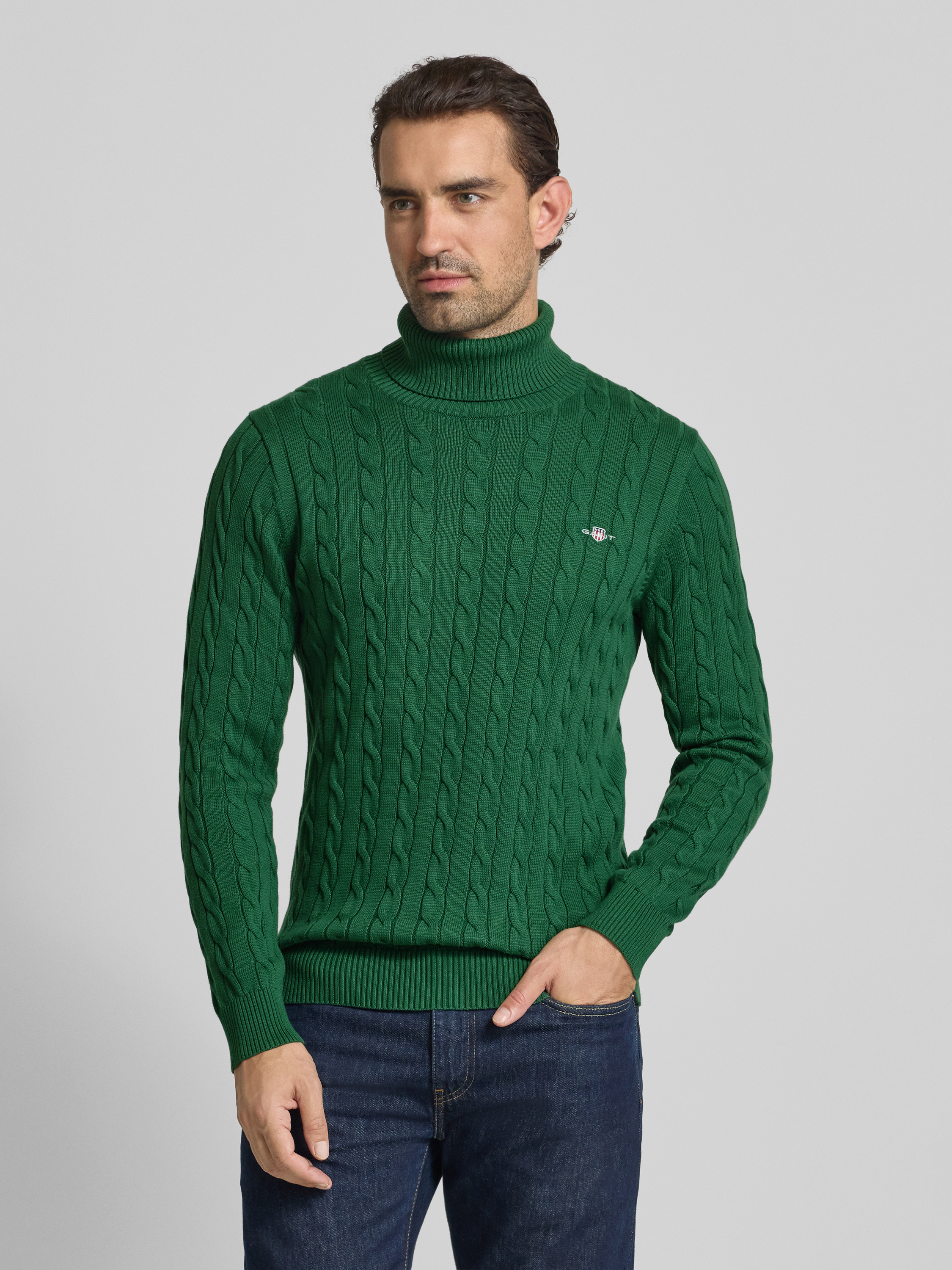 Der Herrenpullover von Gant aus reiner Baumwolle sitzt in regulärer Passform angenehm locker und sorgt durch den Rollkragen für zusätzliche Wärme. Dezente Details wie das Label-Stitching unterstreichen den entspannten Stil. Durch die gerippten Abschlüsse bleibt der Sitz stets formstabil.