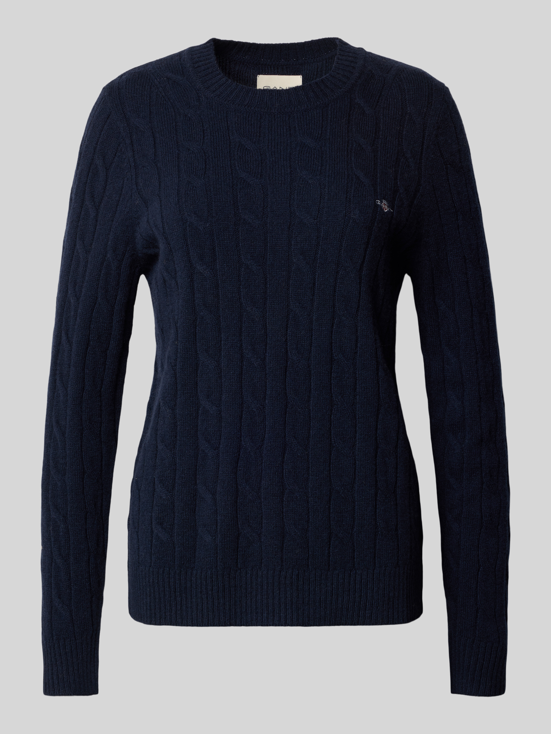 GantStrickpullover mit Zopfmuster und Label-Stitching in dunkelblau