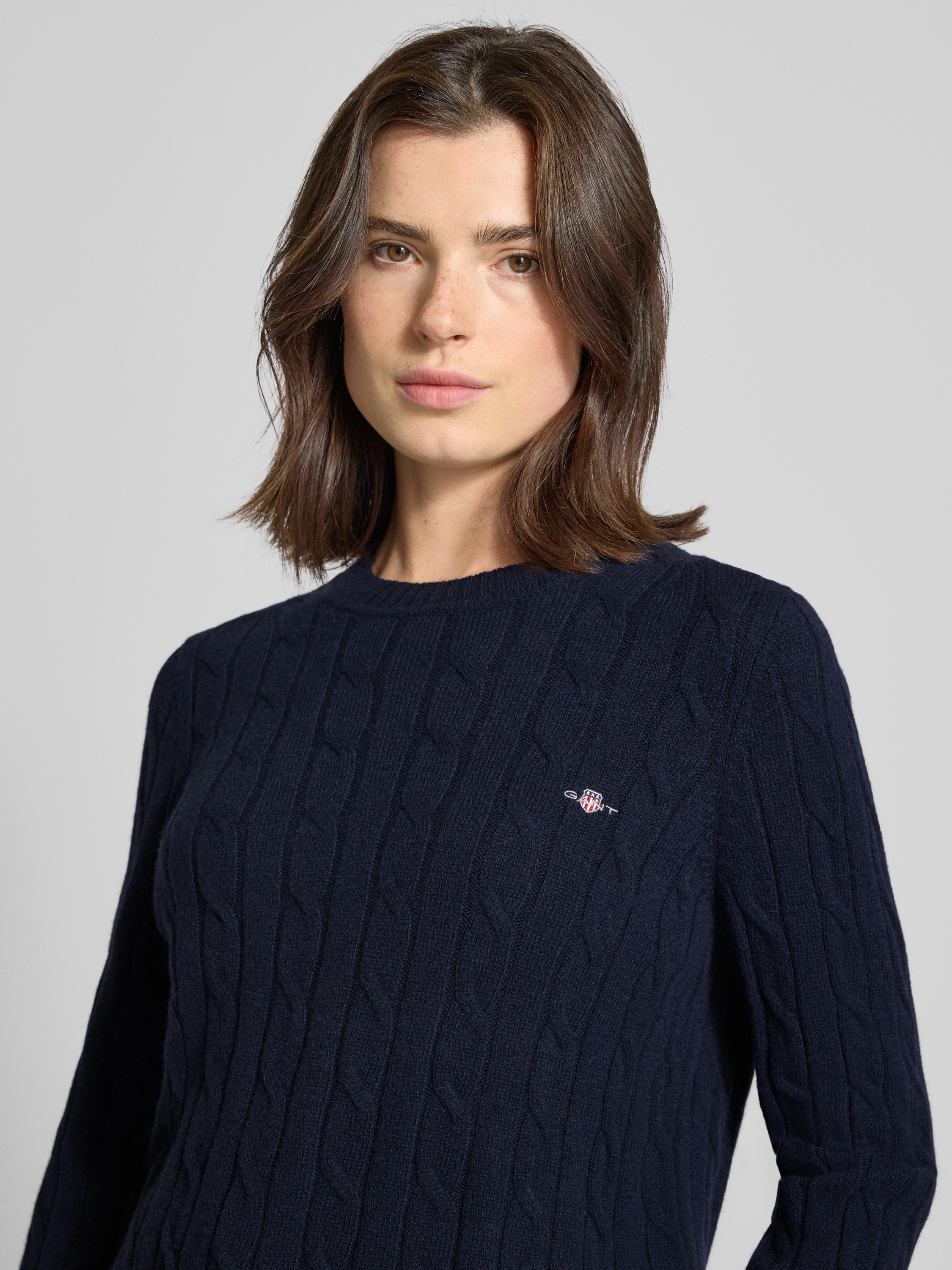 • Gant Strickpullover mit Zopfmuster und Label-Stitching Dunkelblau