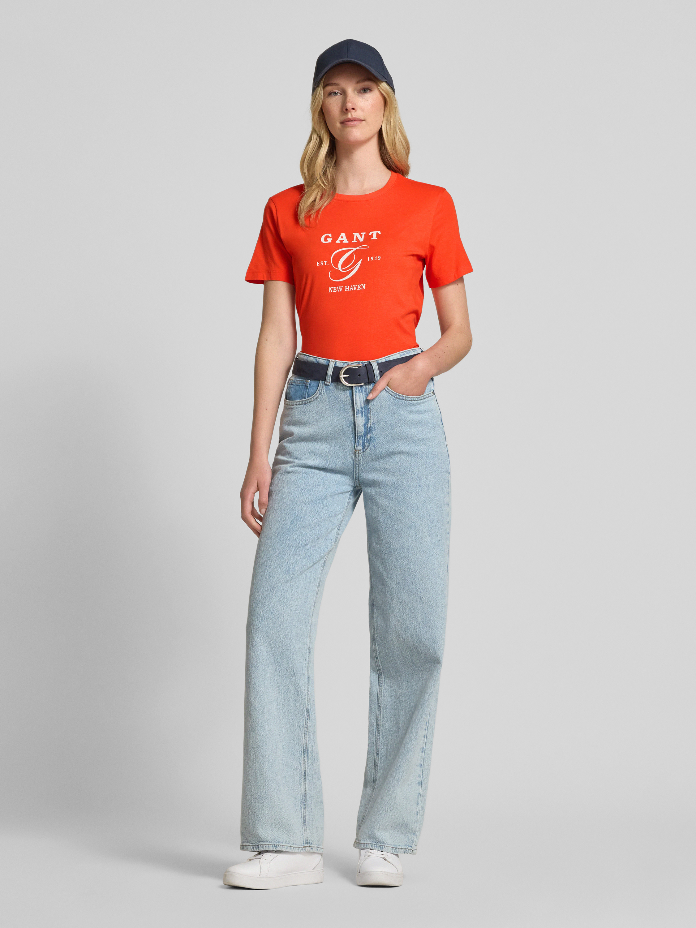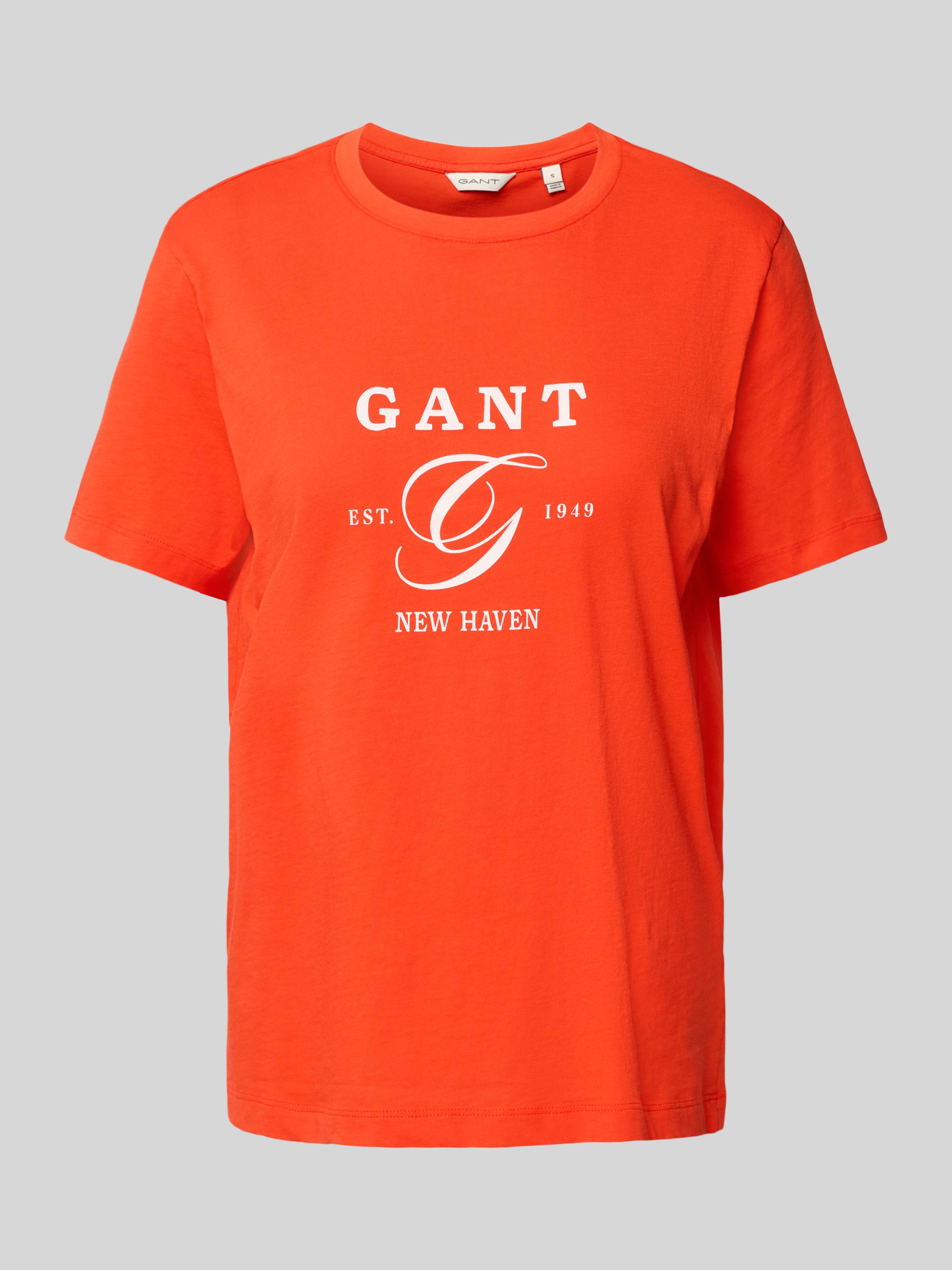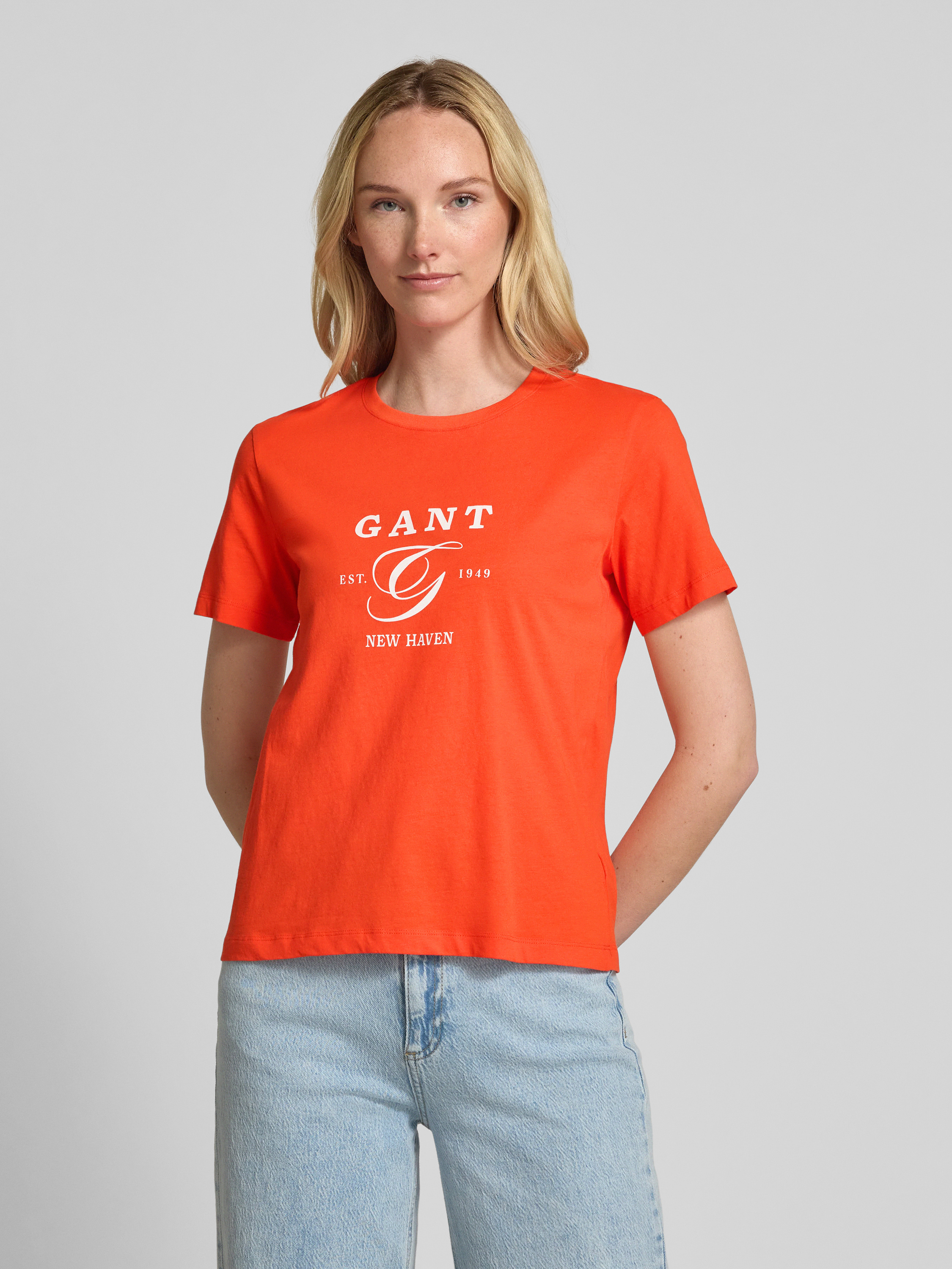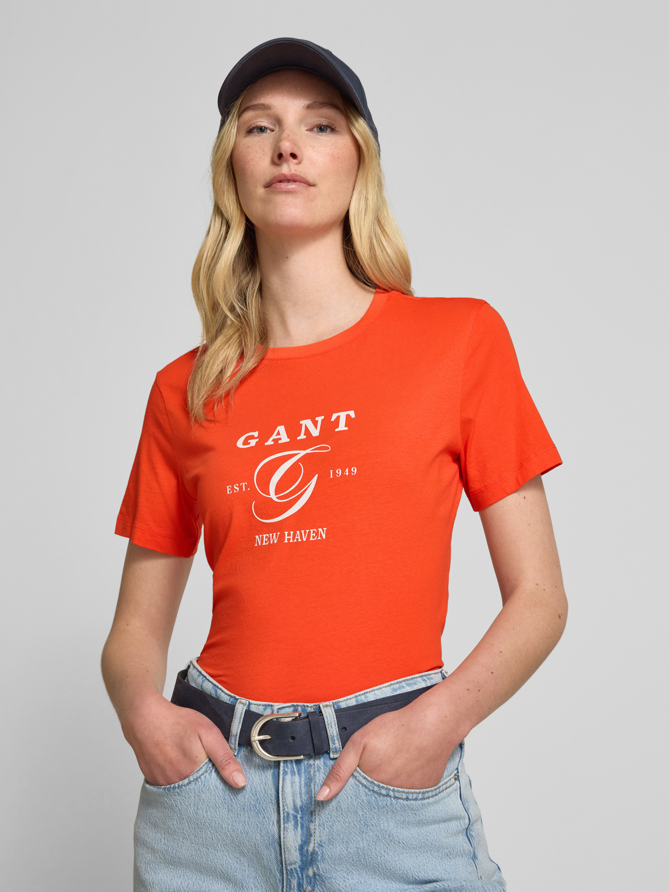 Das Damen T-Shirt von GANT kombiniert lässigen Stil mit Komfort. Hergestellt aus reiner Baumwolle, bietet es ein angenehmes Tragegefühl und eine lockere Passform. Der gerippte Rundhalsausschnitt und der markante Label-Print verleihen dem Outfit eine individuelle Note.
