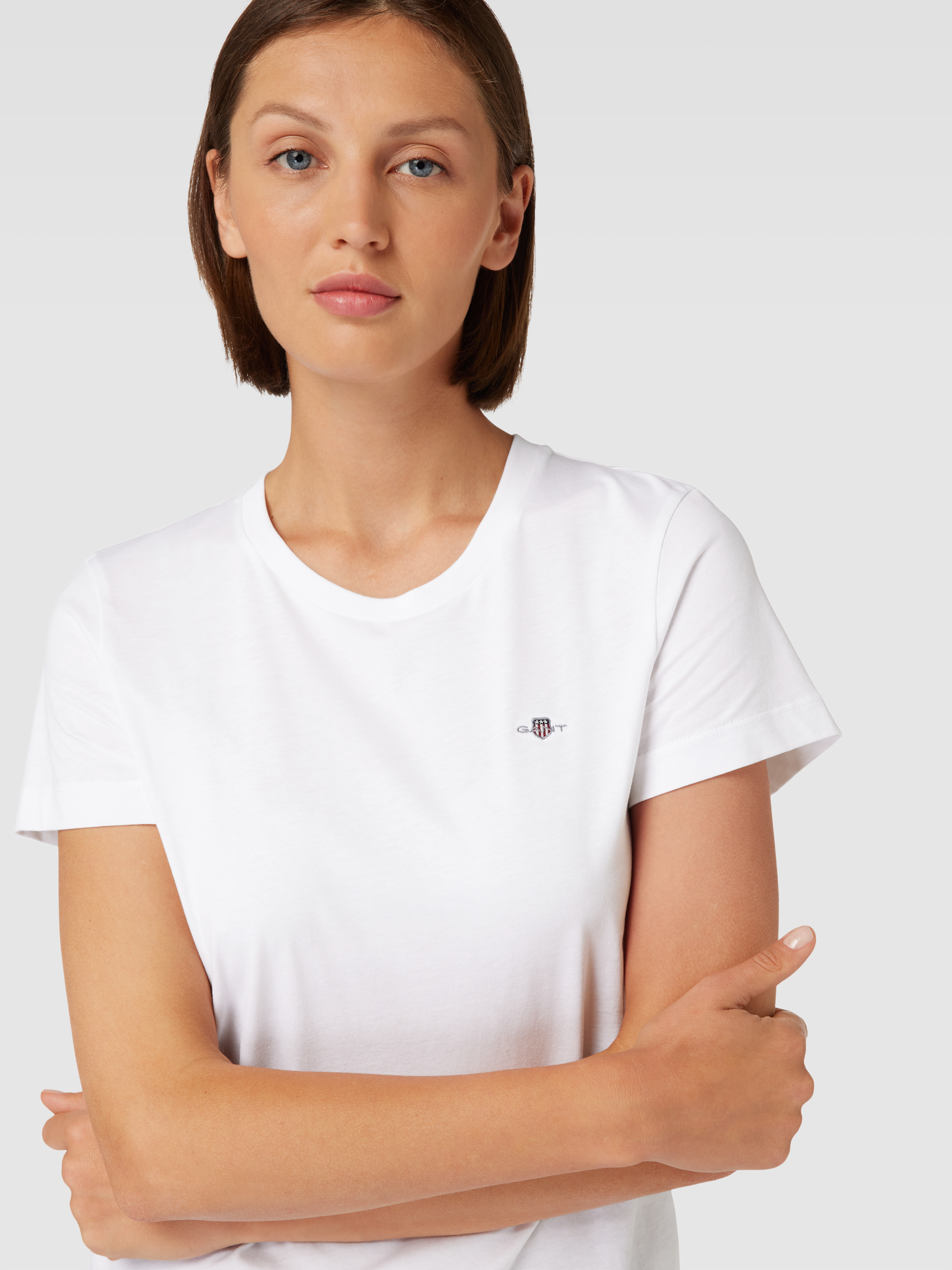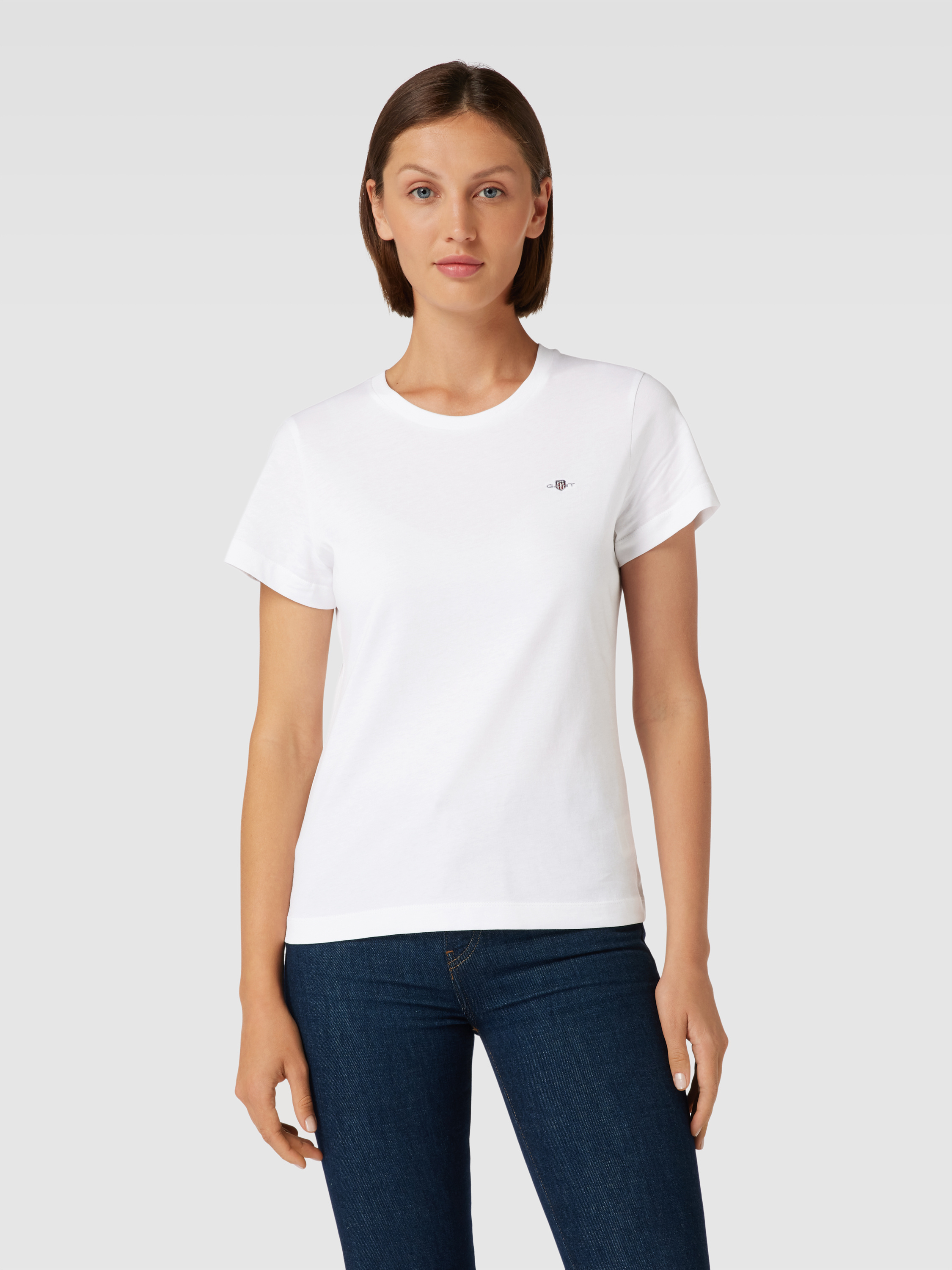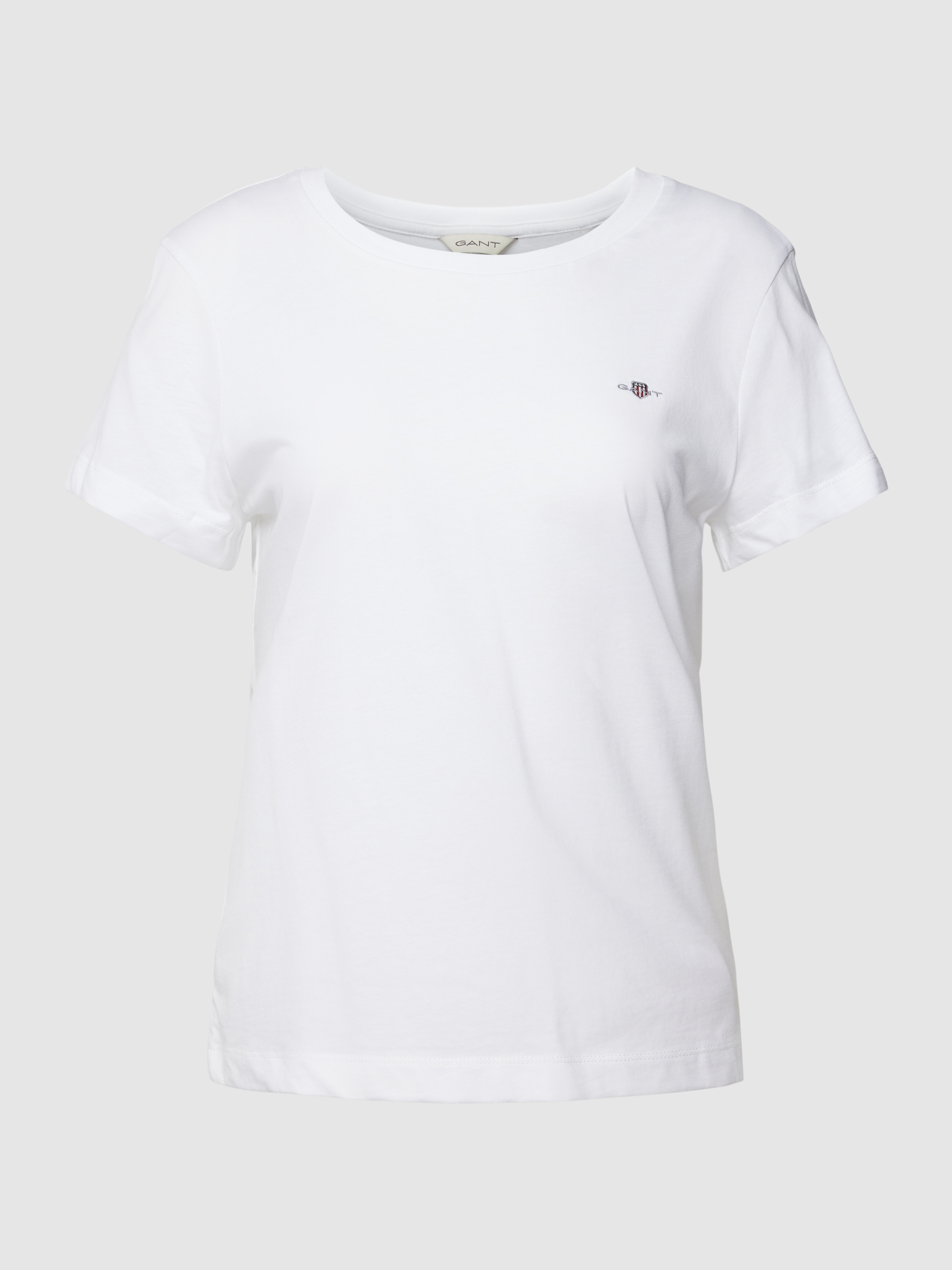 T-Shirt mit Label-Stitching Modell 'SHIELD' in weiss