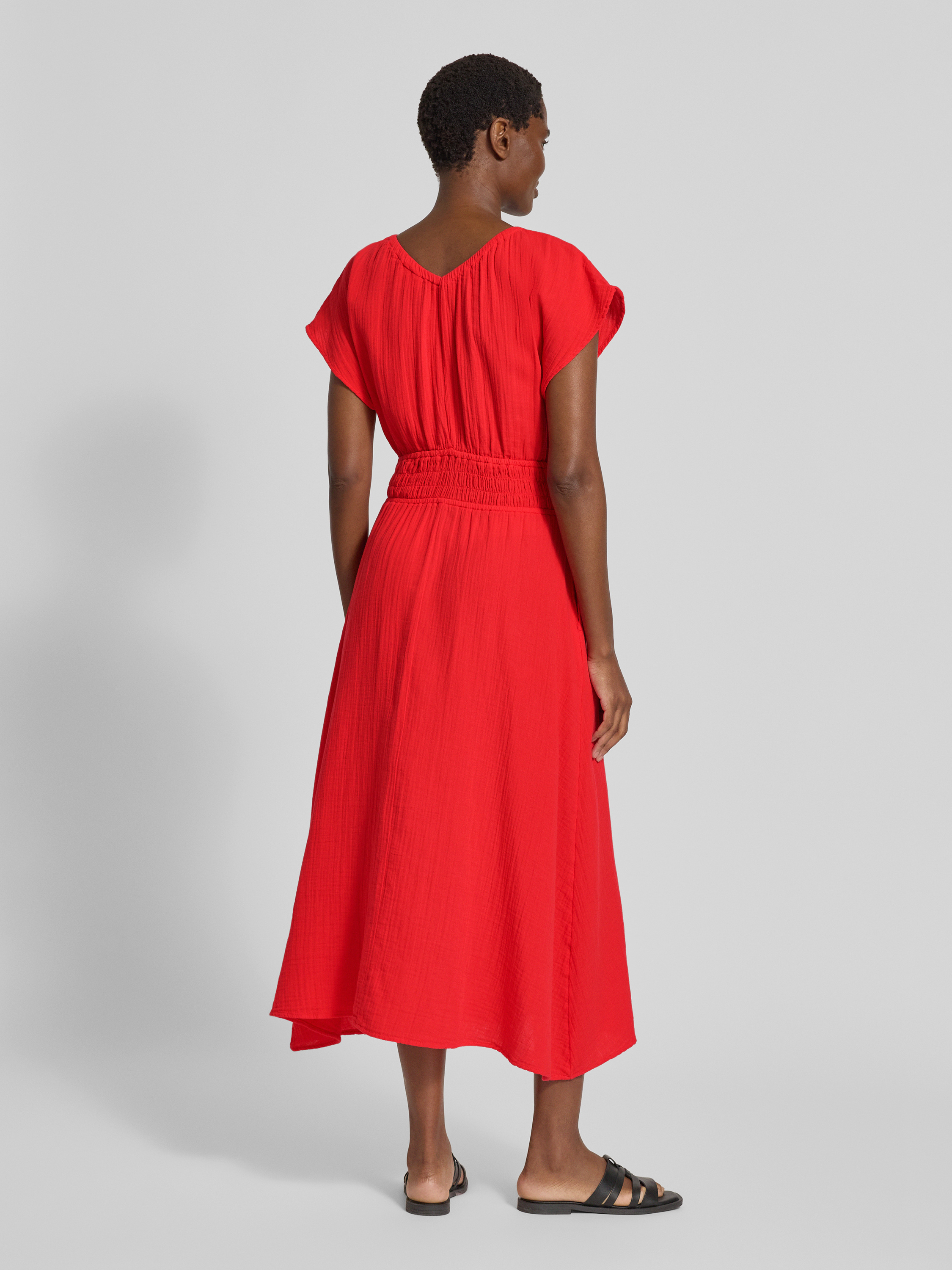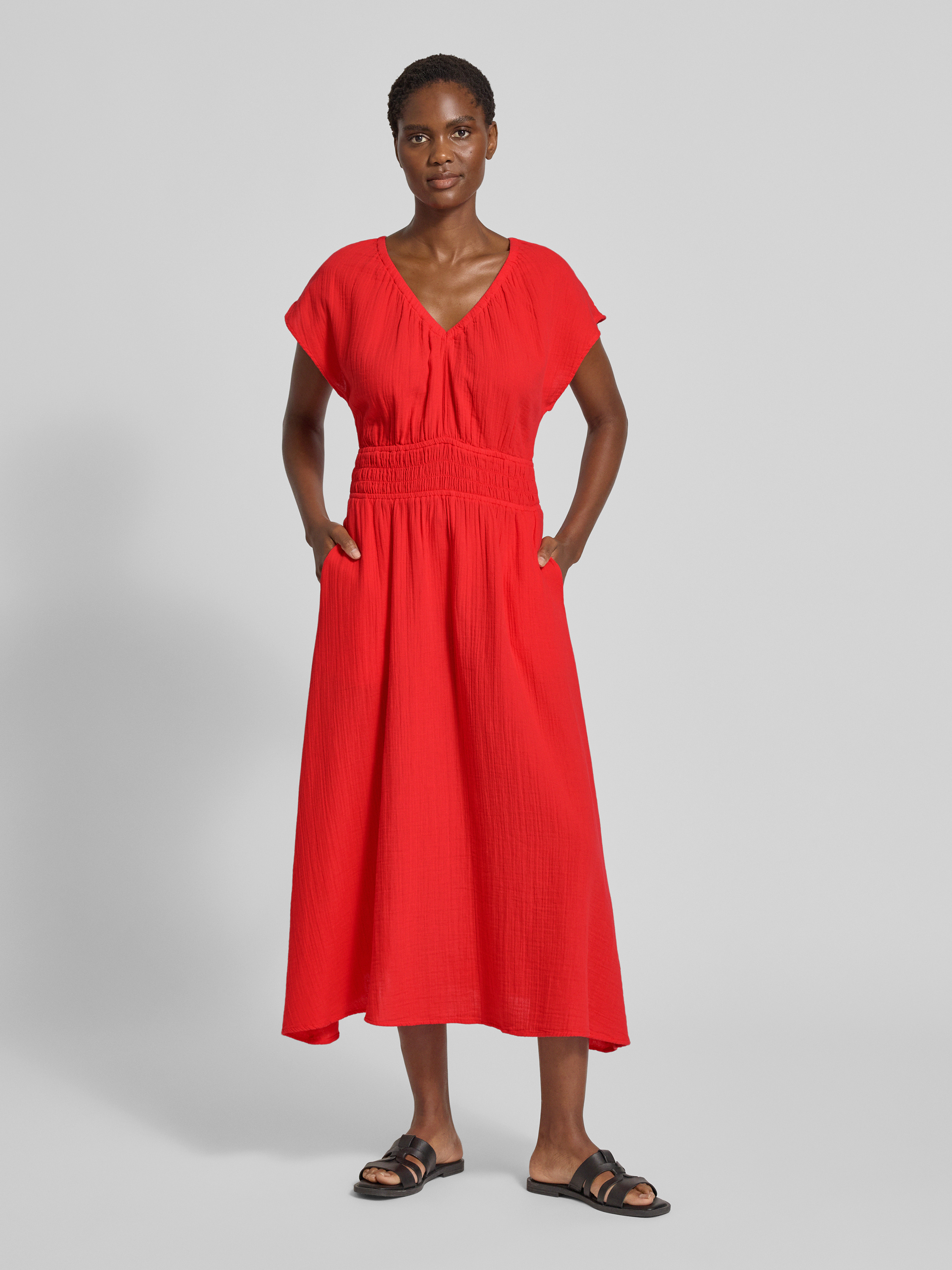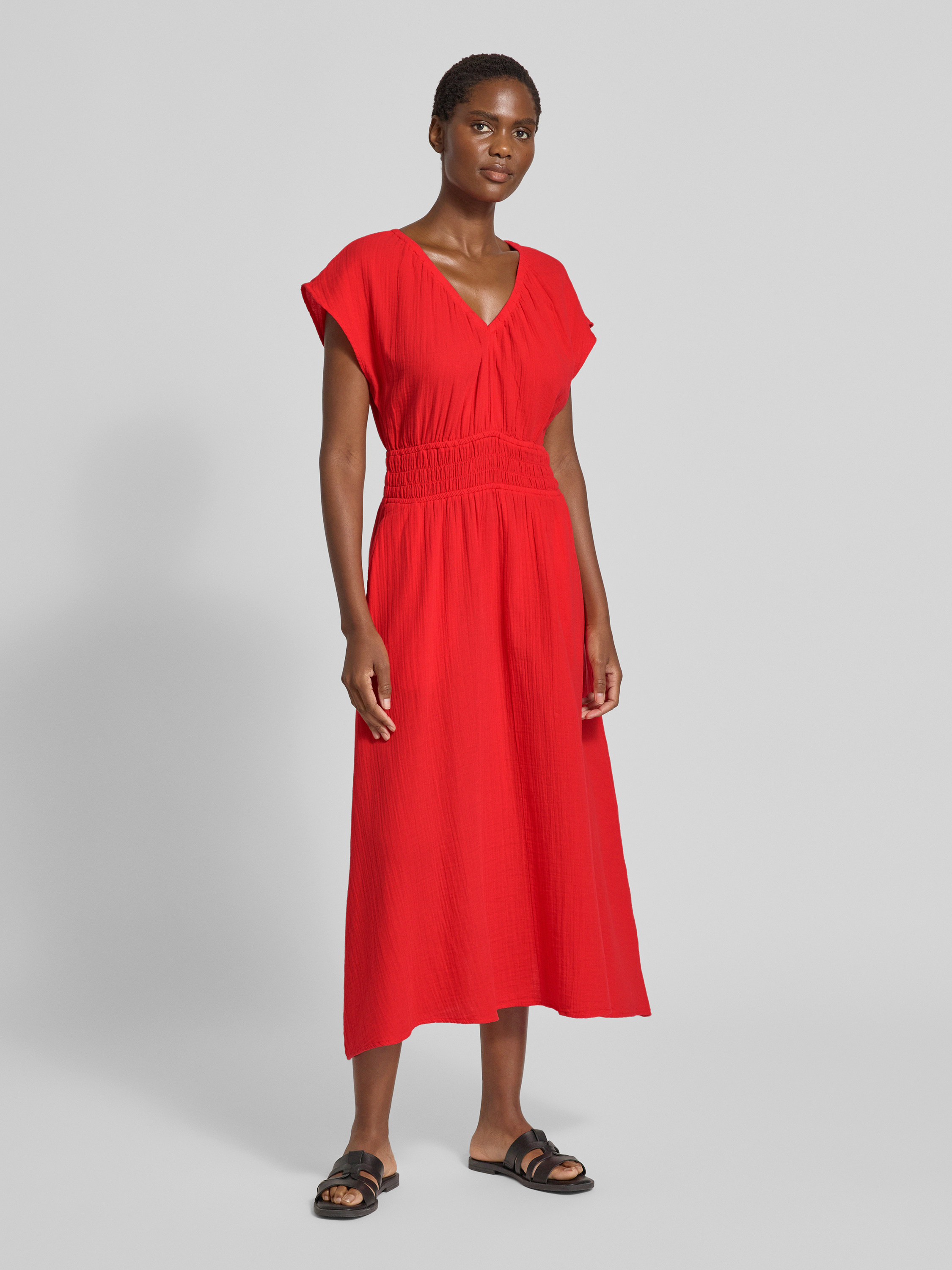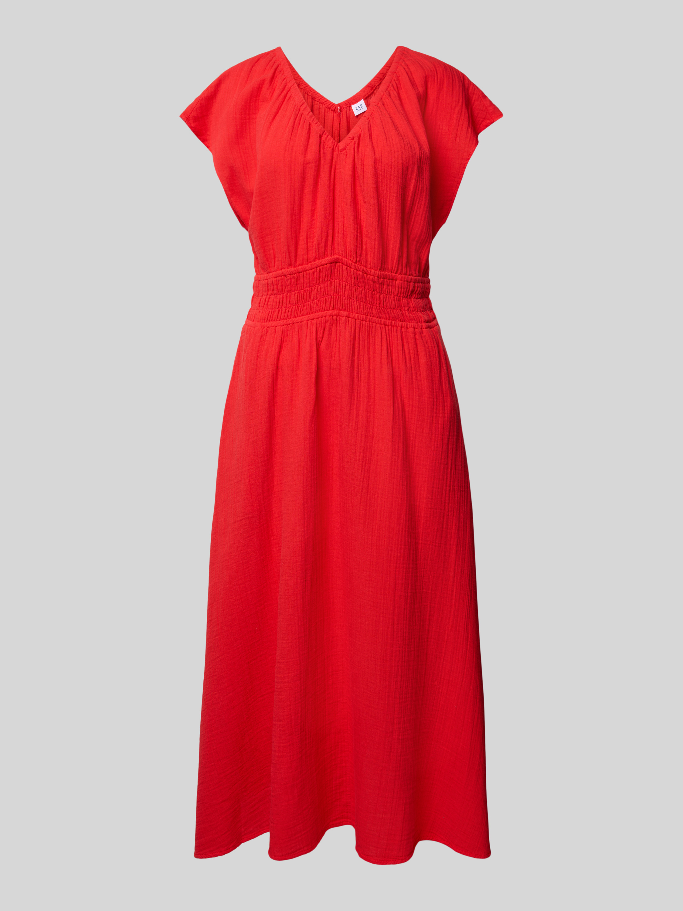 GAPMidiikleid mit V-Ausschnitt und Volantärmeln in rot