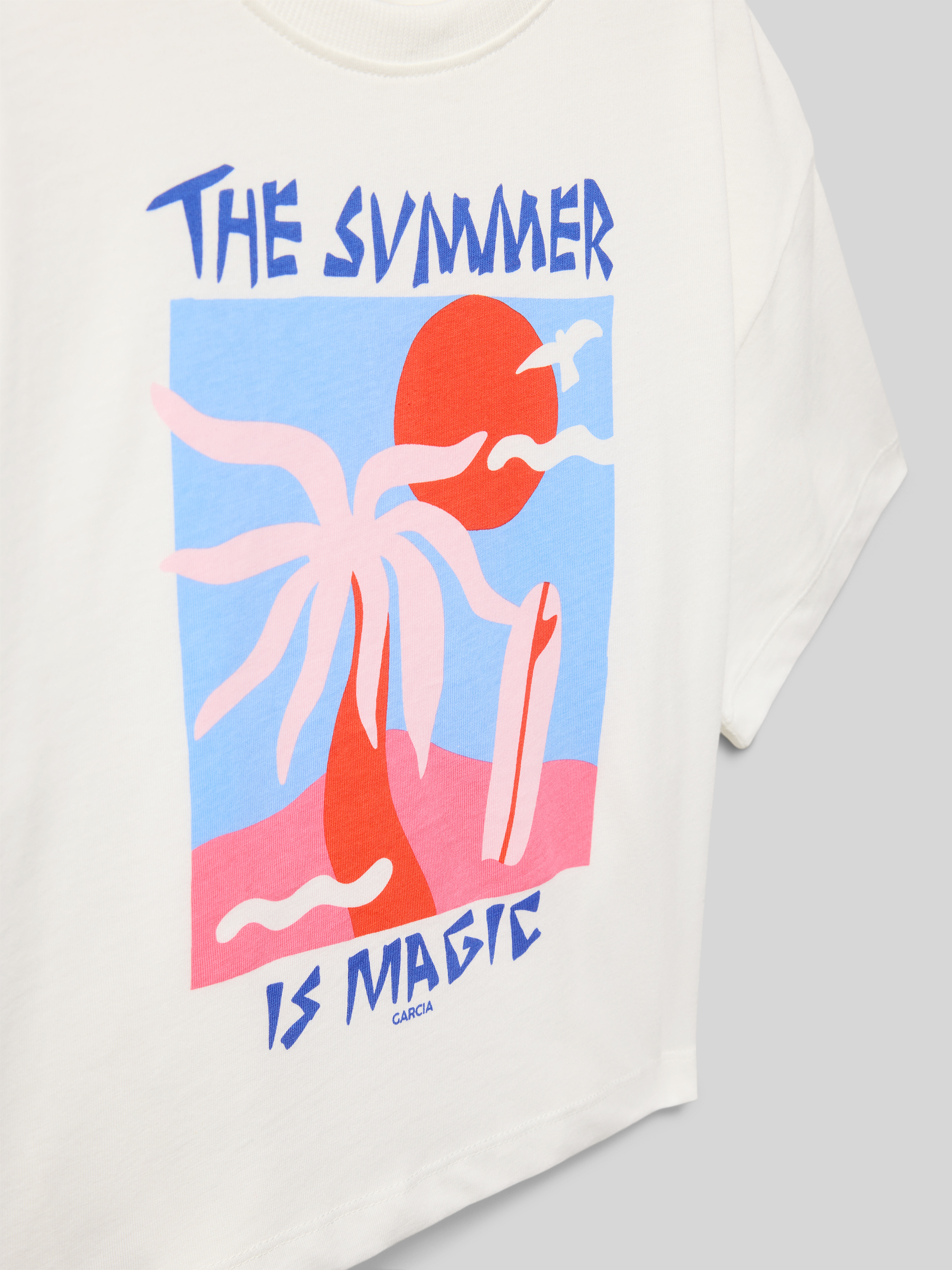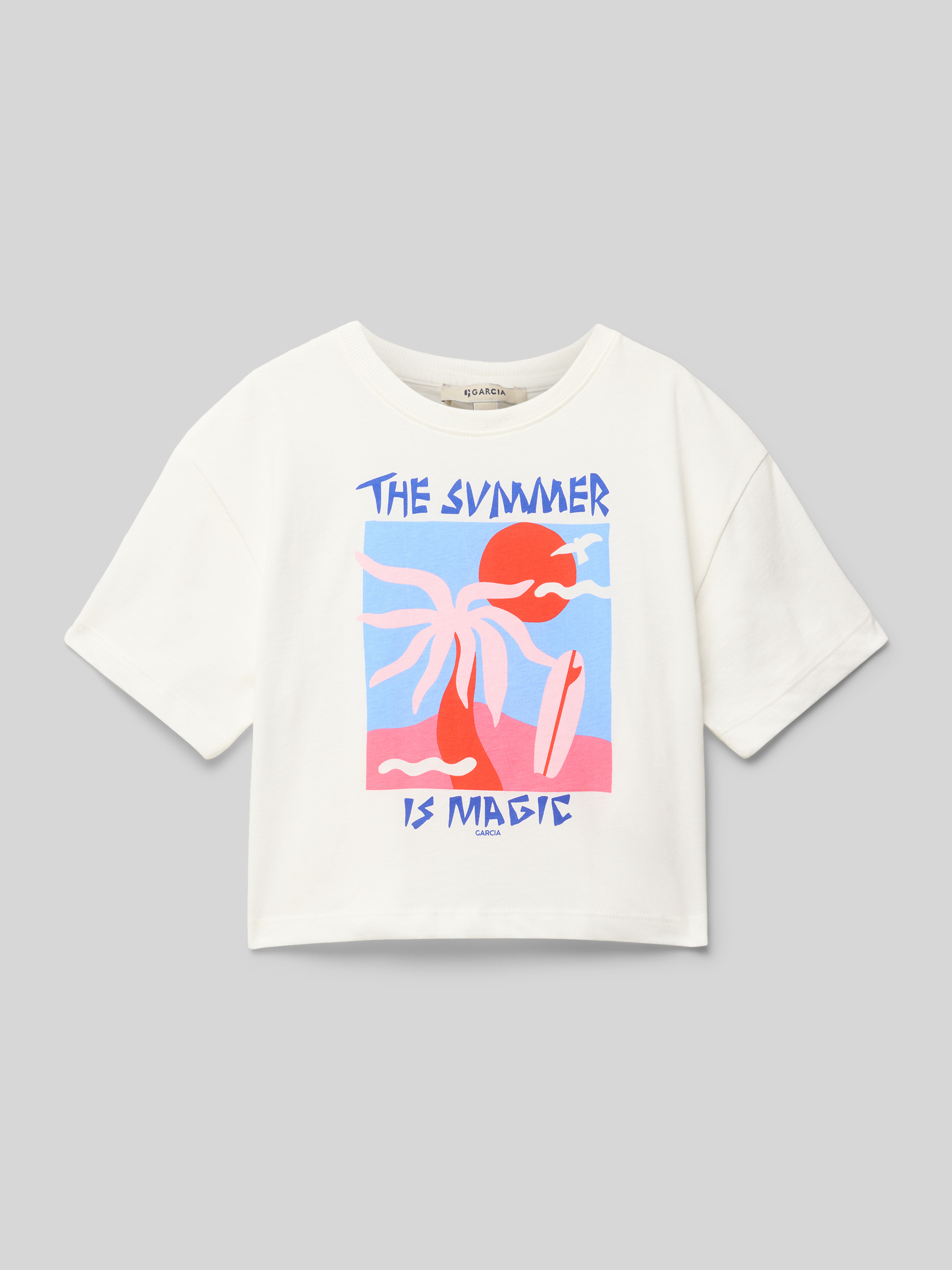 Das Kinder T-Shirt von Garcia, gefertigt aus reiner Baumwolle, bietet durch seine gerade Passform und den bequemen Rundhalsausschnitt ein angenehmes Tragegefühl. Der fröhliche Motiv-Print sorgt für einen spielerischen Look, der sich mühelos in den Alltag integrieren lässt.