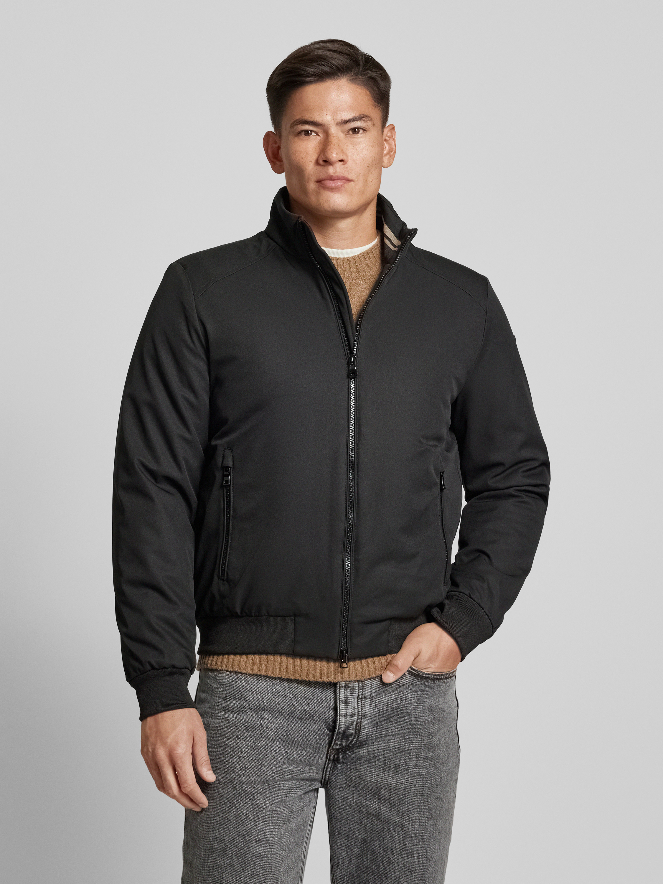 Die Herren Jacke von Geox kombiniert gekonnt Stil mit Funktionalität. Mit ihrem Regular Fit und dem markanten Stehkragen eignet sie sich ideal für den Alltag. Die praktischen Reißverschlusstaschen bieten Stauraum, während die gerippten Abschlüsse für einen angenehmen Sitz sorgen.