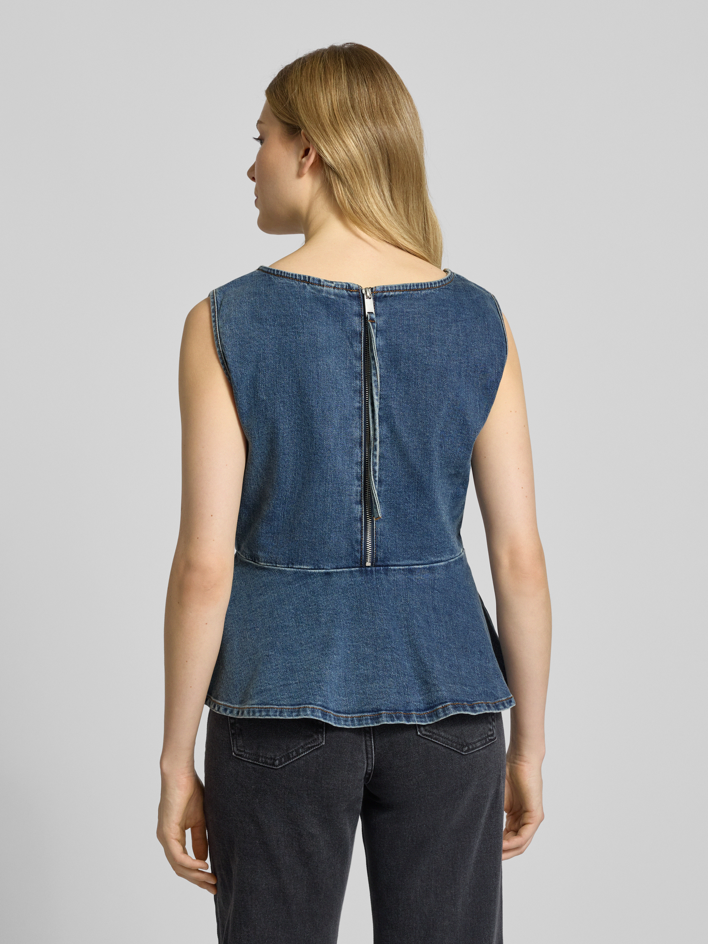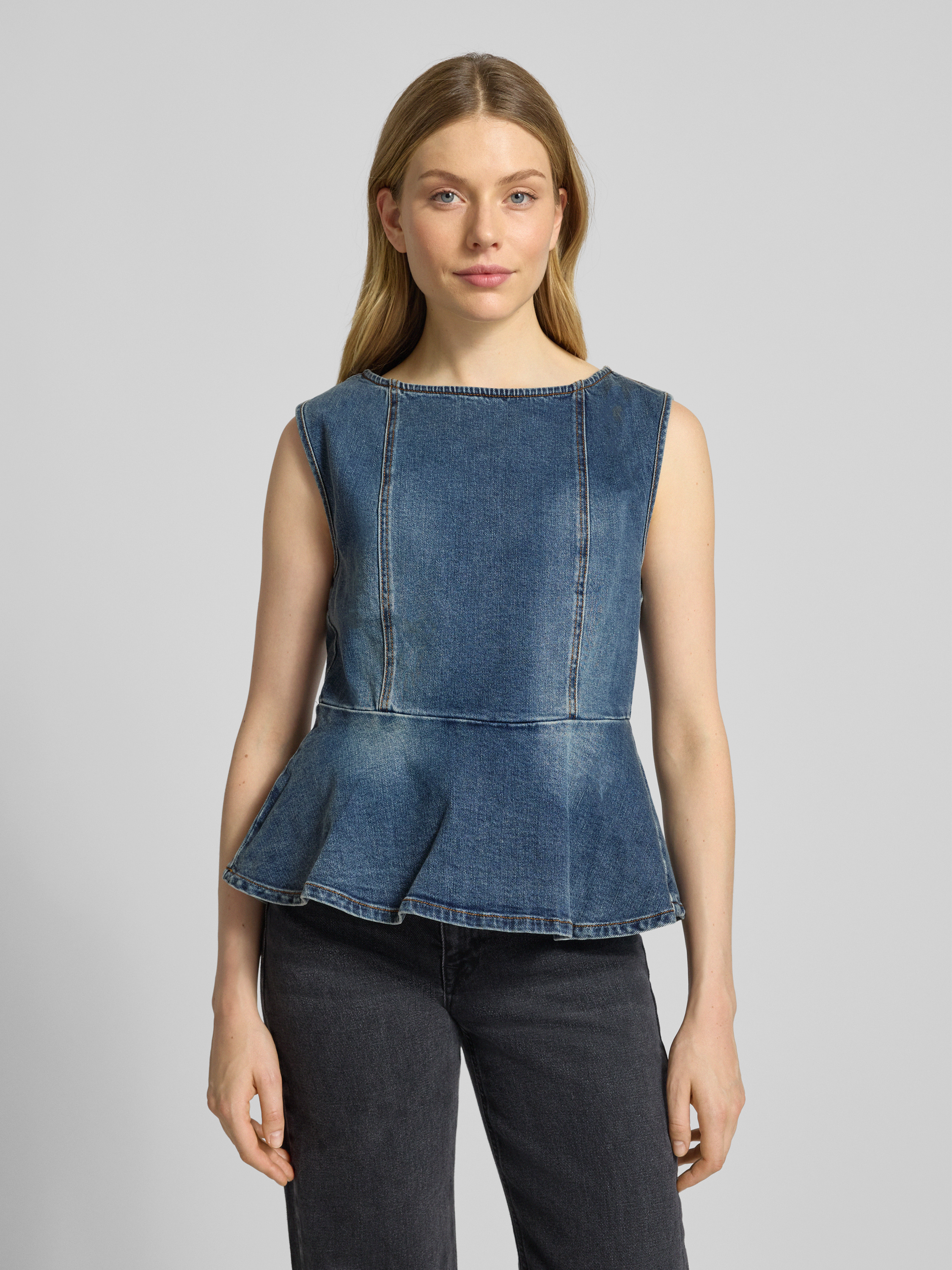 Die Damen Jeansbluse von Gestuz, Modell 'viva', verbindet einen angenehm weichen Baumwoll-Mix mit dezentem Stretch-Anteil. Durch ihren regulären Schnitt sitzt sie bequem und ermöglicht vielseitige Kombinationen. Ziernähte und Volantsaum sorgen für einen dezenten, modernen Akzent im Alltag.