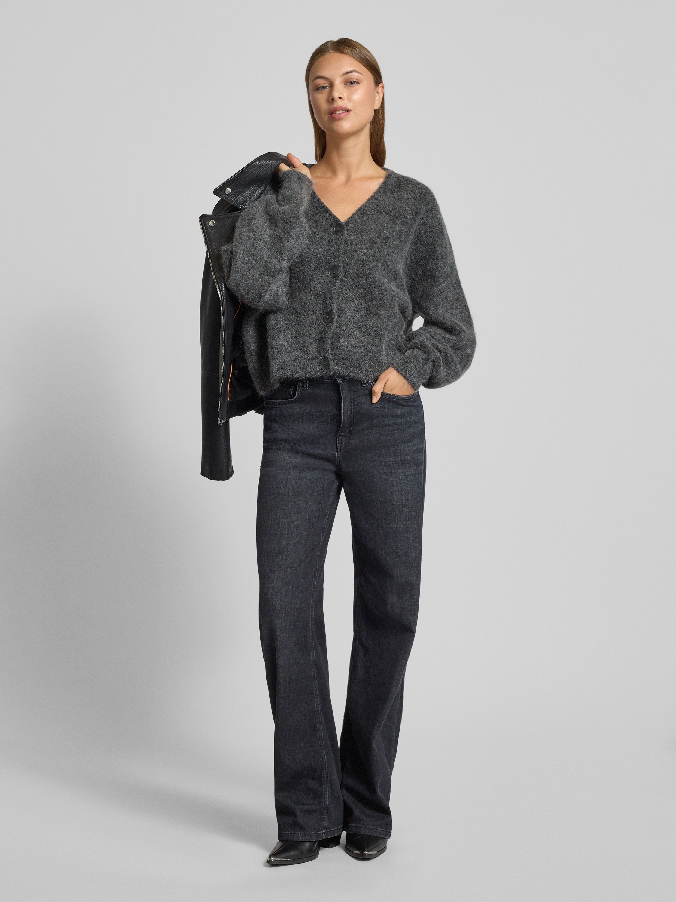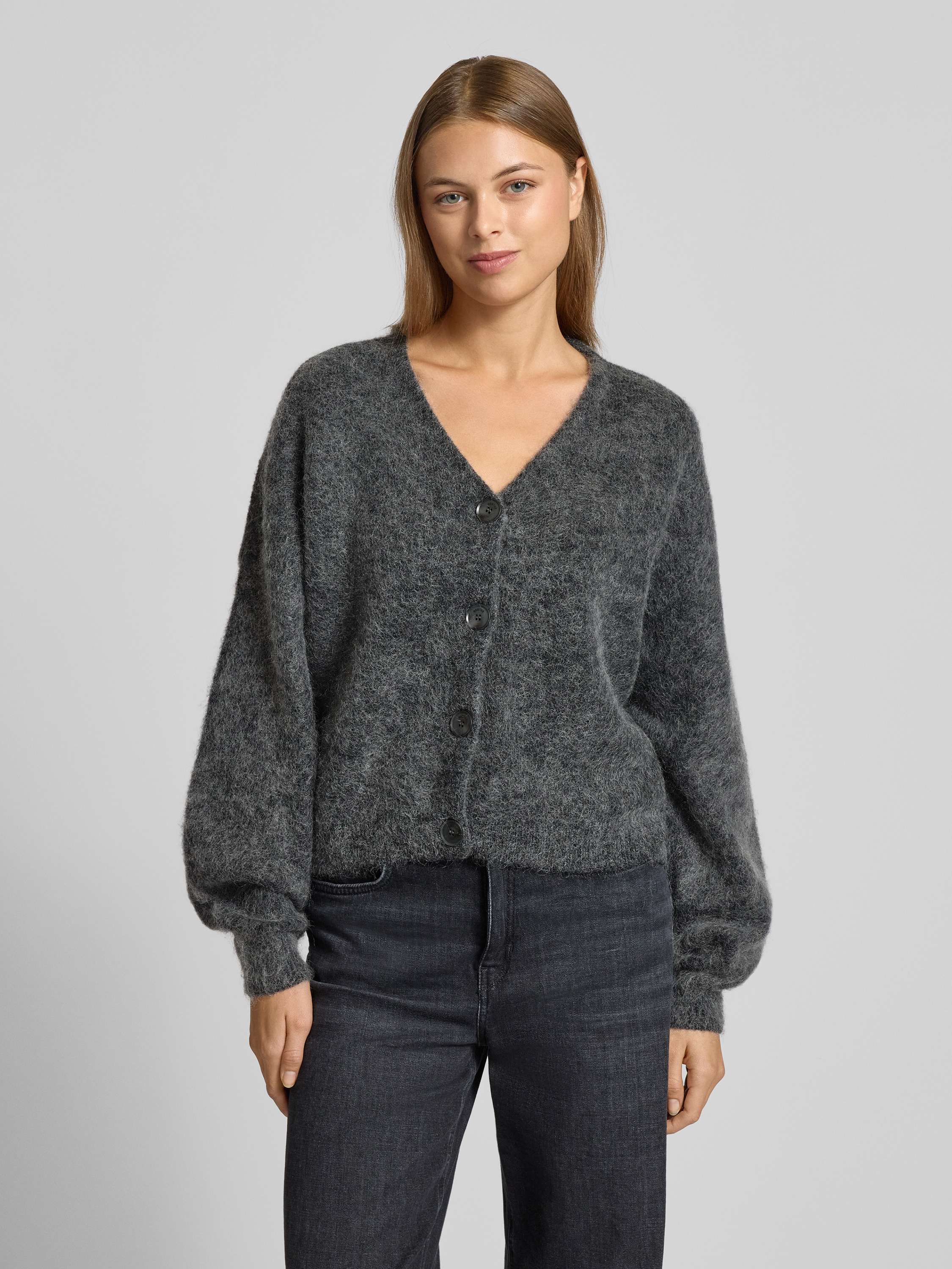 GestuzStrickjacke mit Knopfleiste Modell 'debbie' in anthrazit