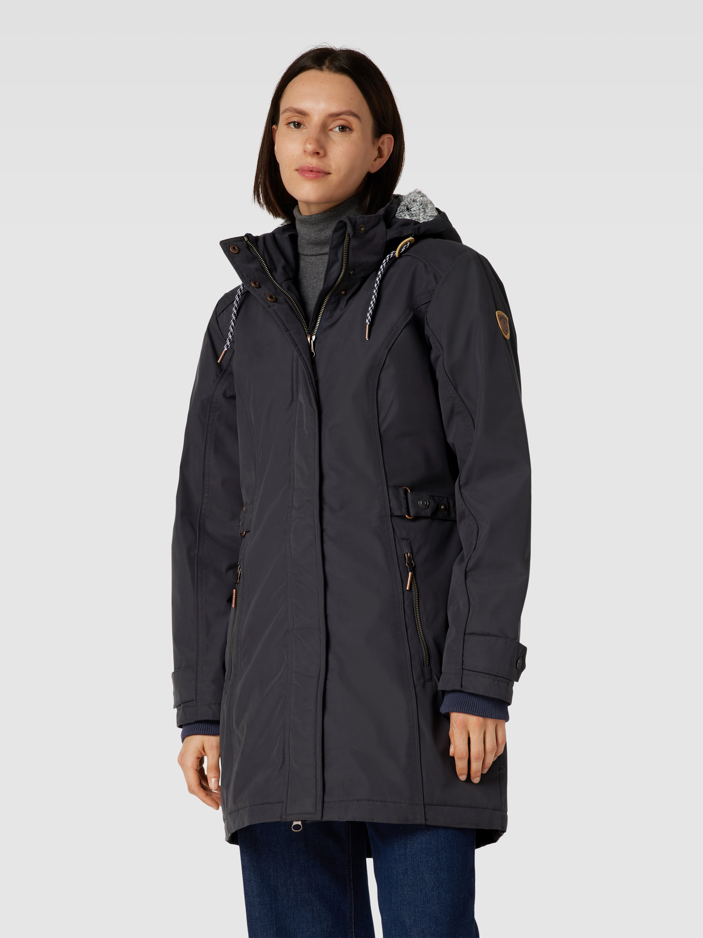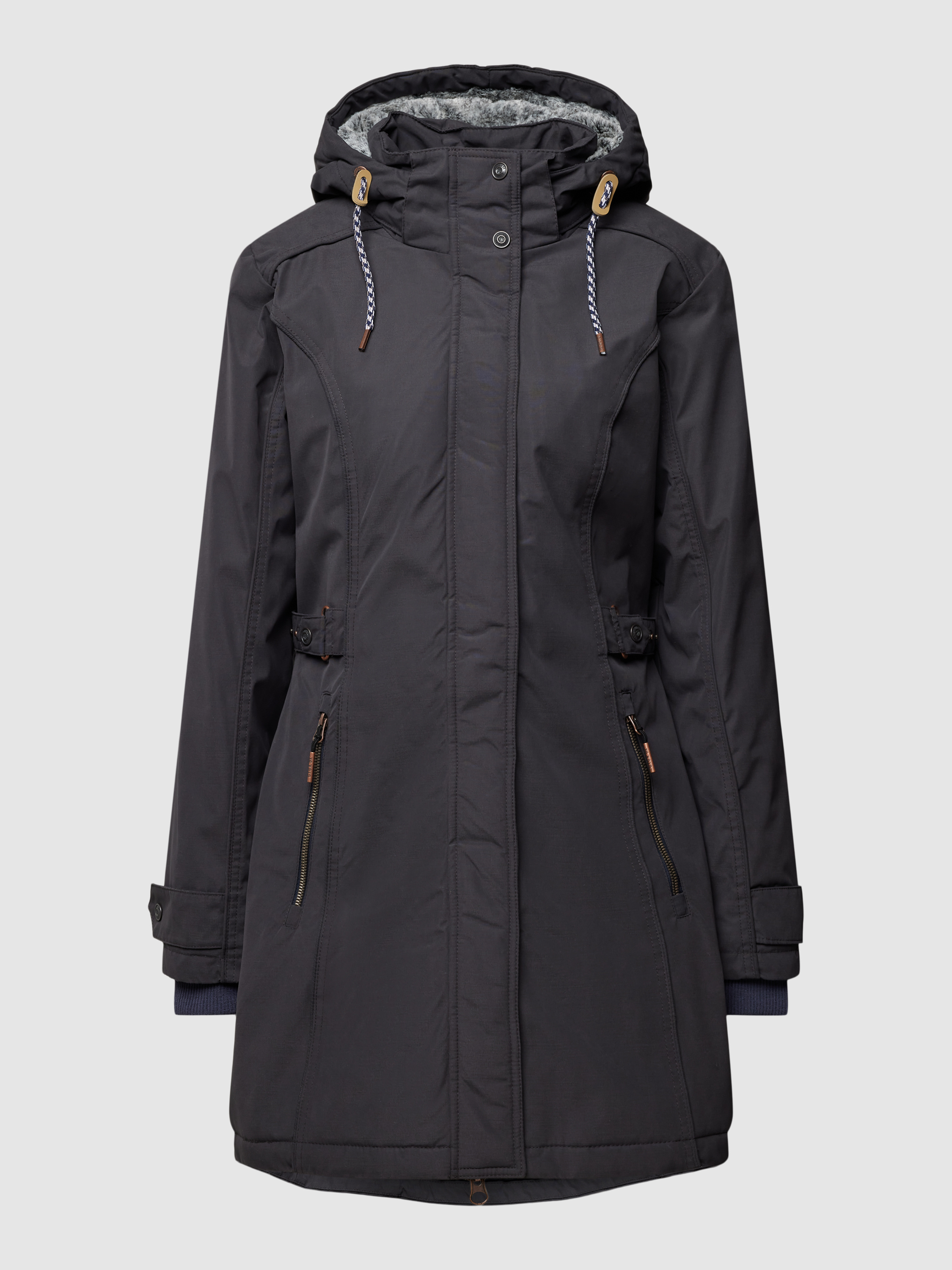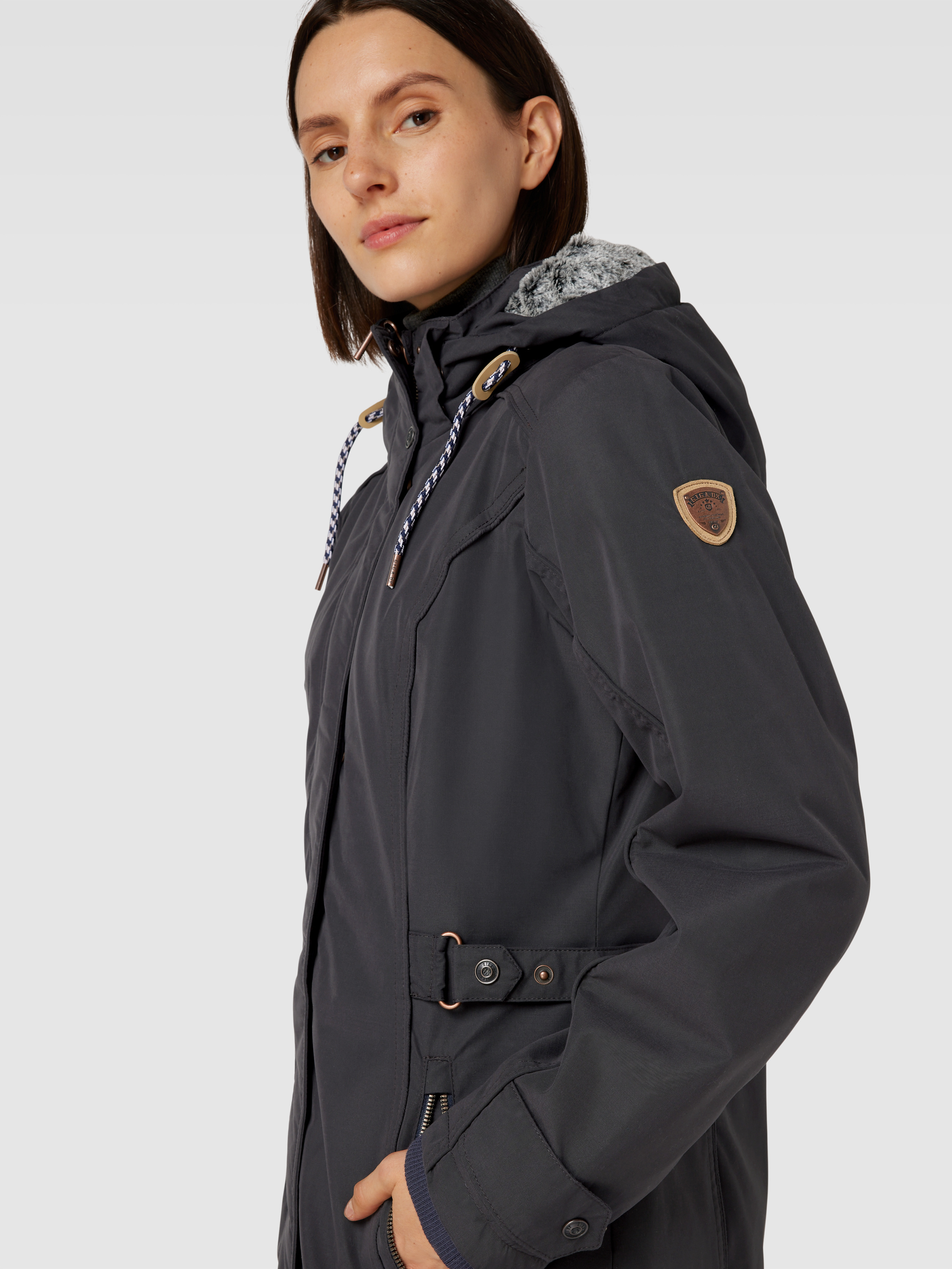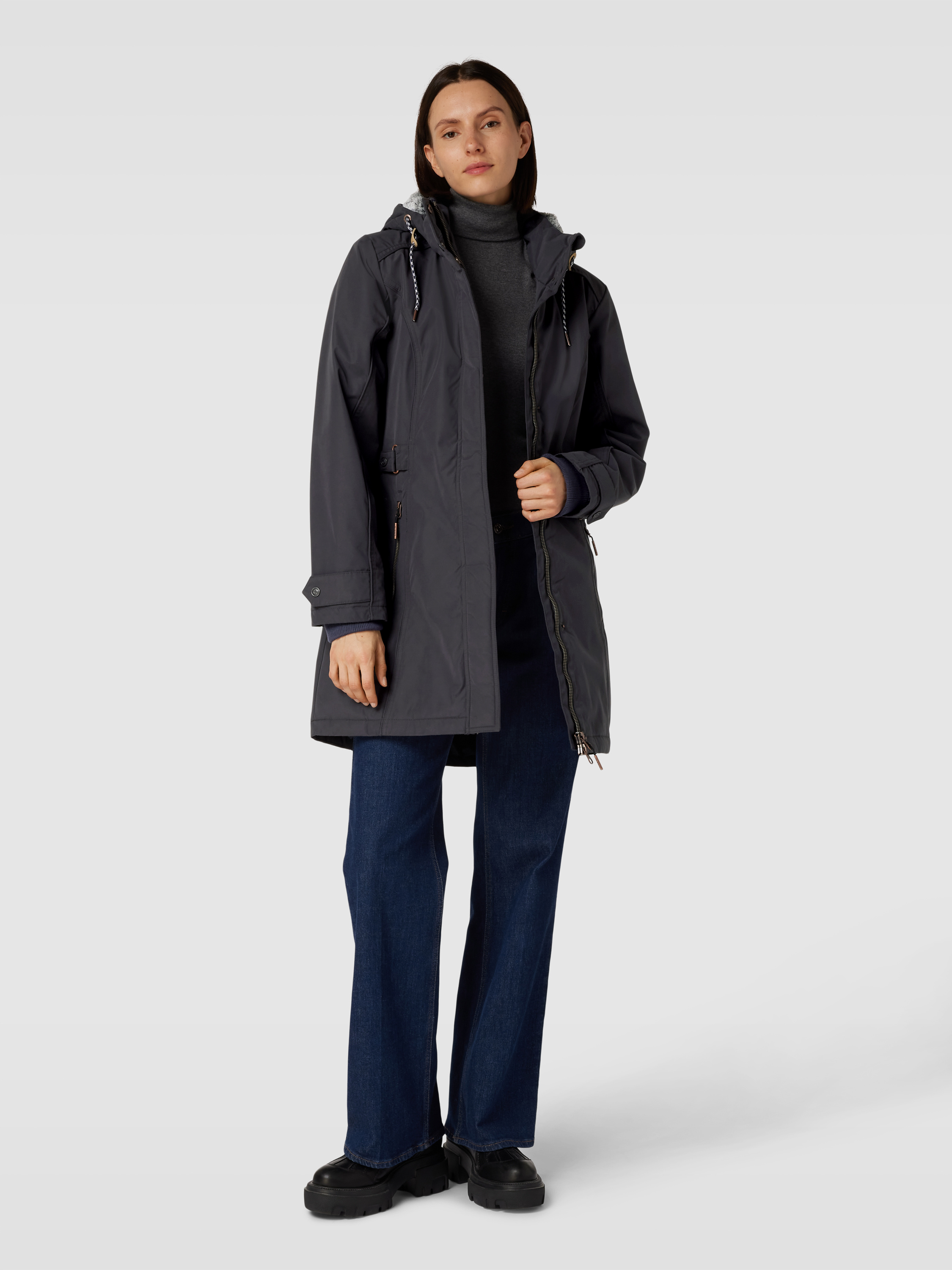 Die Jacke von G.I.G.A. DX kombiniert einen Material-Mix mit Baumwollanteil und bietet durch den taillierten Schnitt eine schmeichelhafte Passform. Das unifarbene Design wird durch eine dezente Label-Applikation ergänzt. Die Kapuze mit Tunnelzug sorgt für zusätzlichen Schutz bei unbeständigem Wetter.