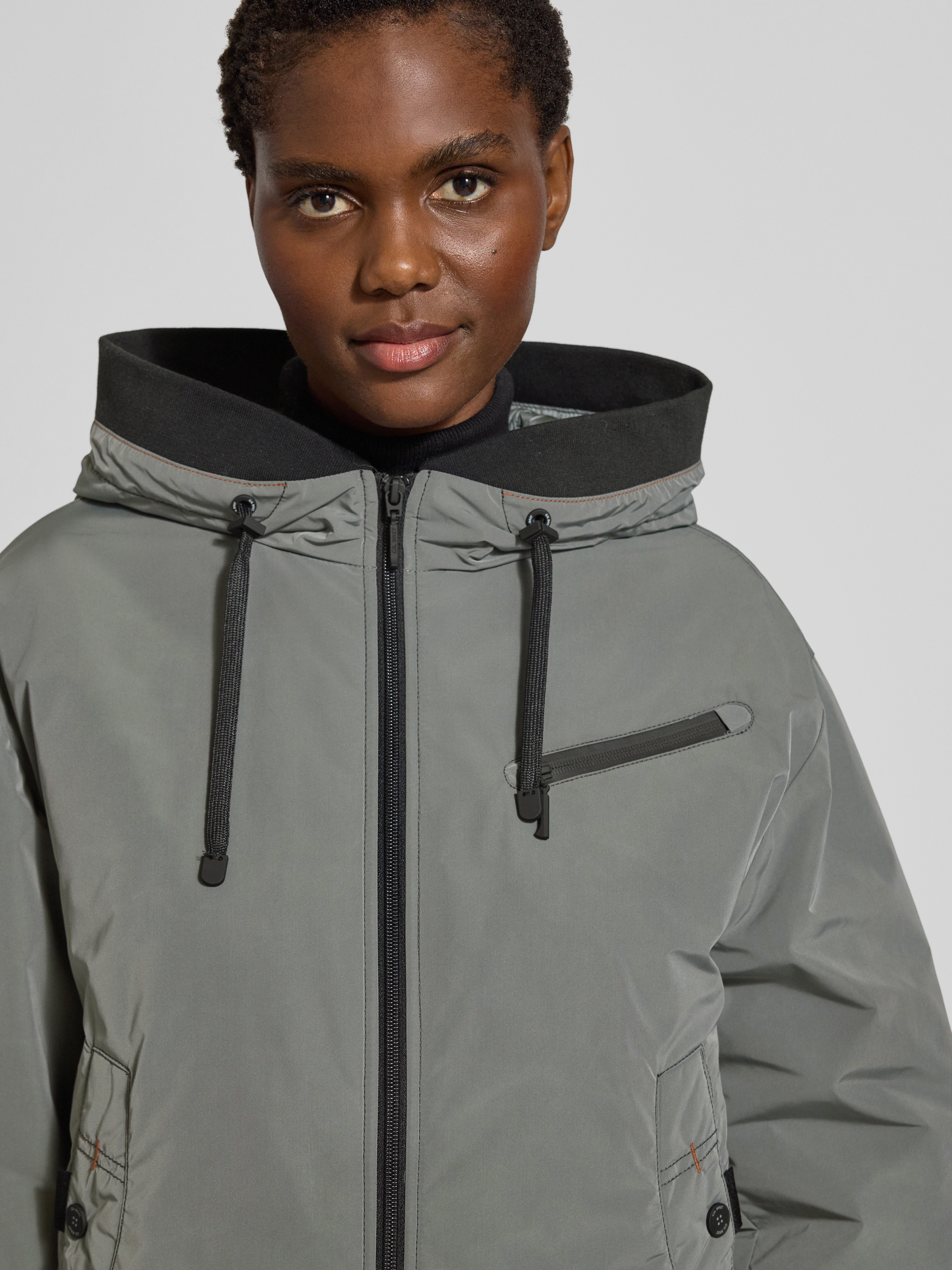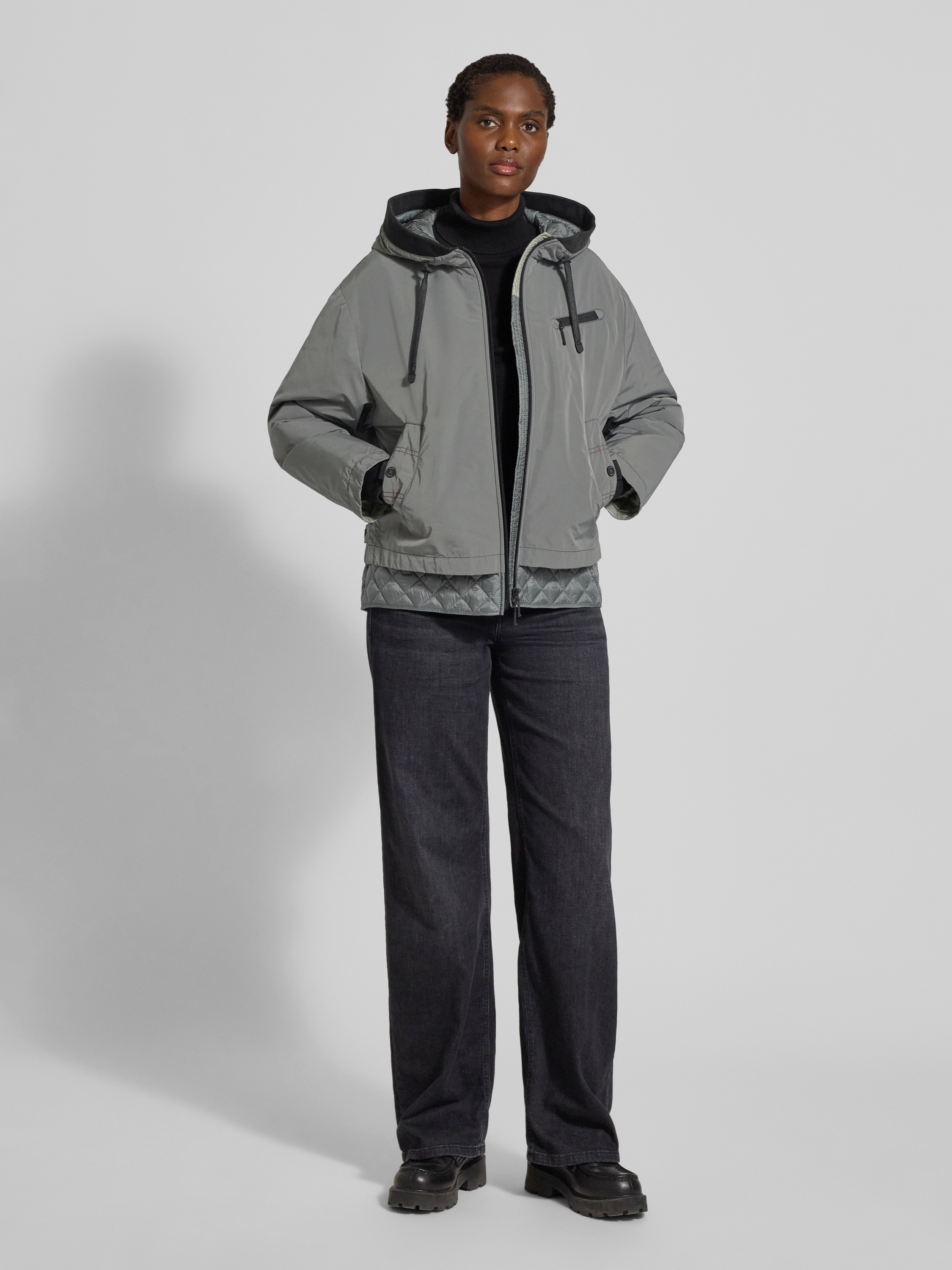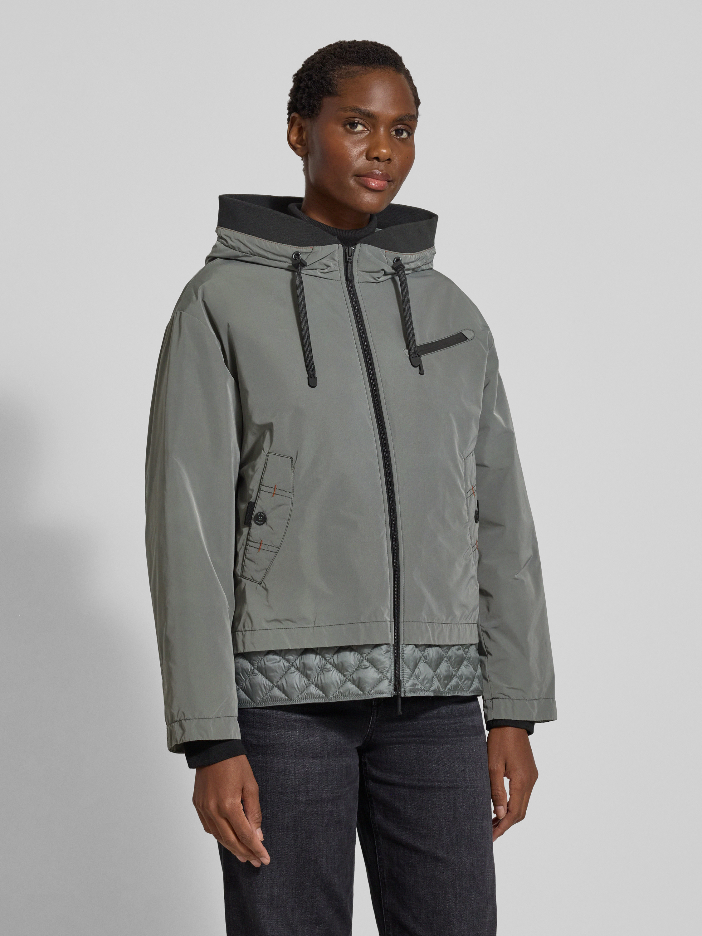 Die Damen Jacke von Gil Bret zeigt sich in geradem Schnitt und lässt sich durch die Kapuze mit Tunnelzug vielseitig einsetzen. Dank seitlicher Eingrifftaschen und praktischer Brusttasche bleibt unterwegs alles griffbereit. Ihr unkompliziertes Design sorgt für angenehmen Tragekomfort im Alltag.