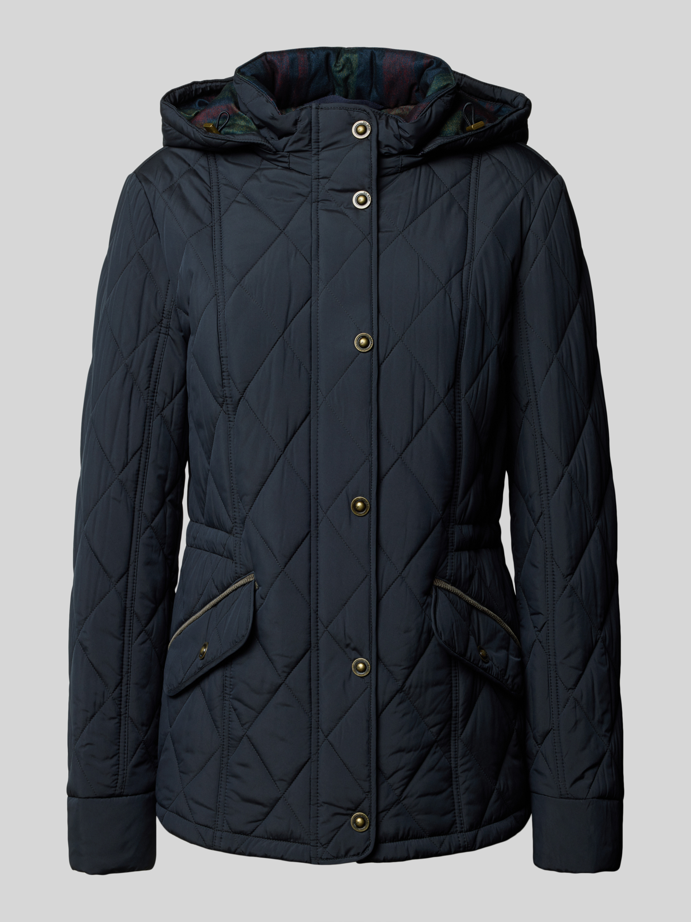 Steppjacke mit Kapuze und Pattentaschen in dunkelblau